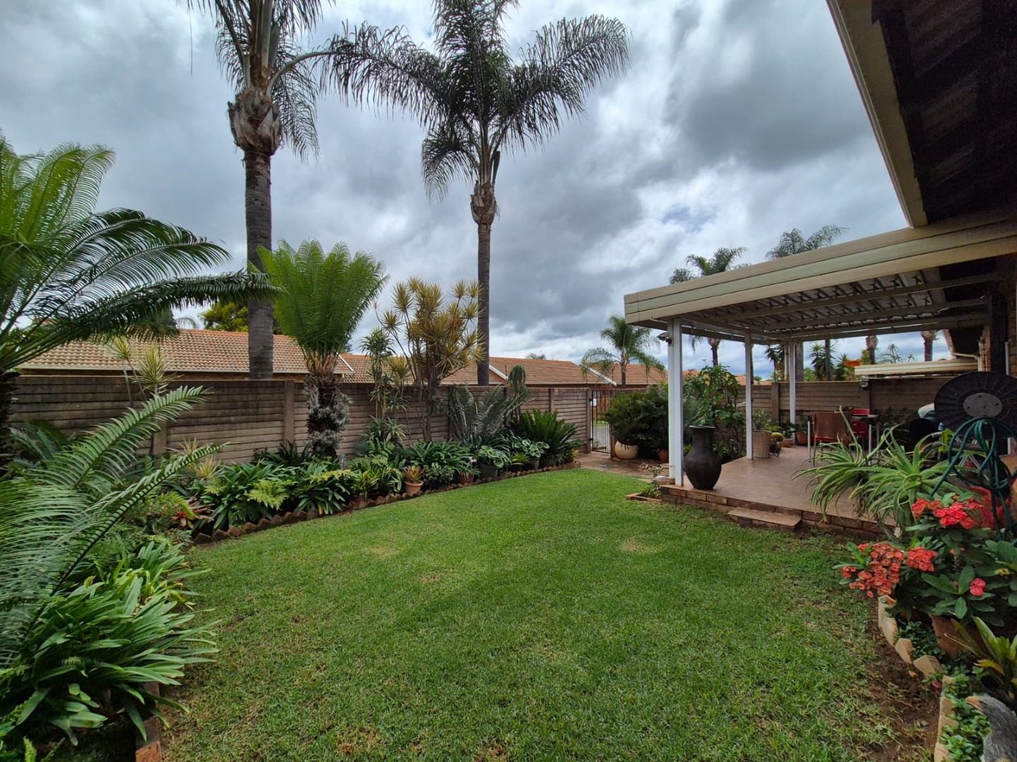 Discover this charming residential property nestled within a secure complex in the metropolitan and suburban area of Ninapark, Akasia. The property boasts a classic brick exterior, contributing to its appealing kerb appeal, set within a well-maintained environment featuring paved roads and mature palm trees, indicative of a neat and secure community.