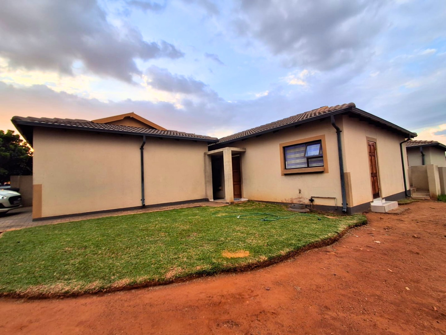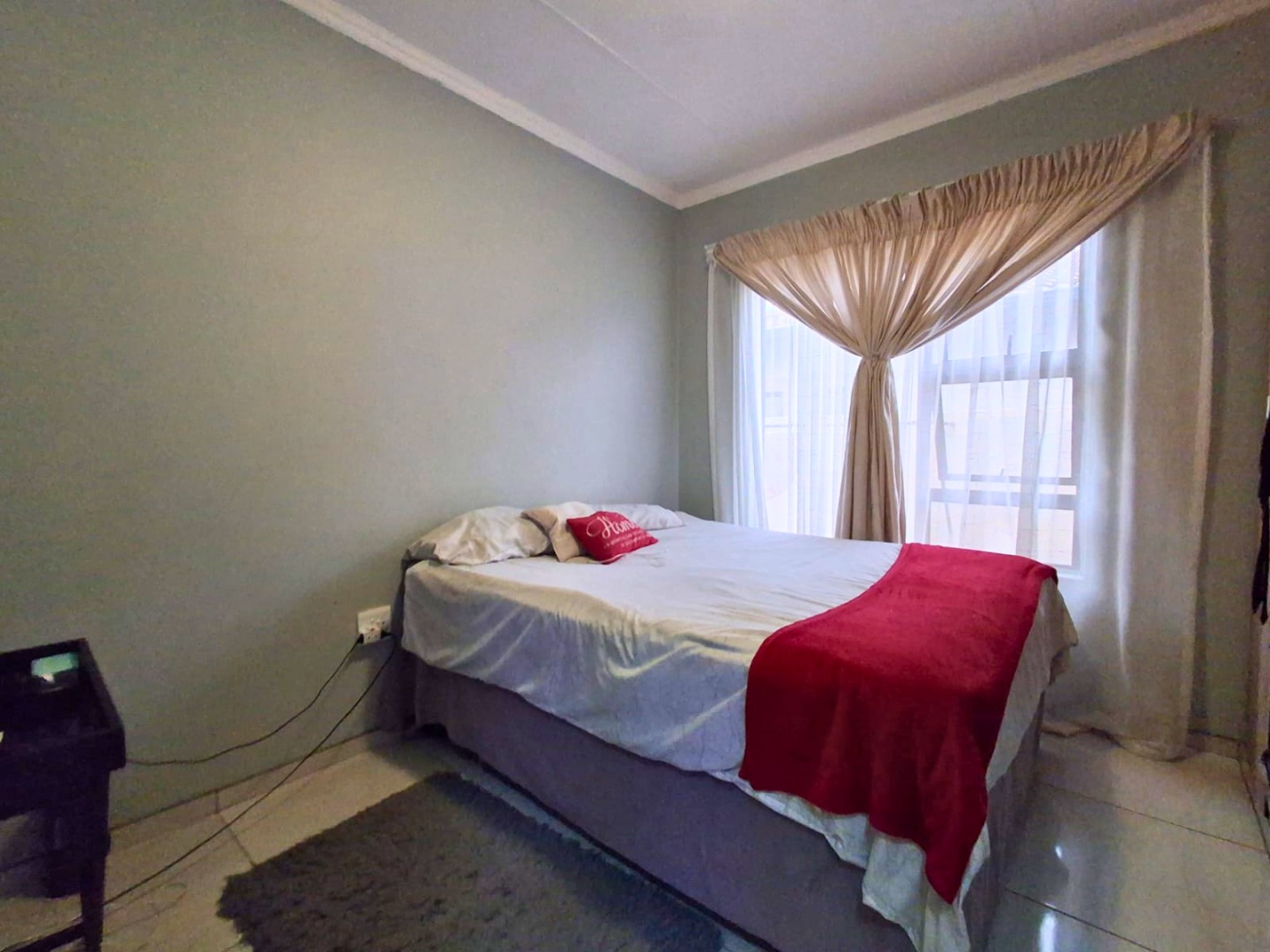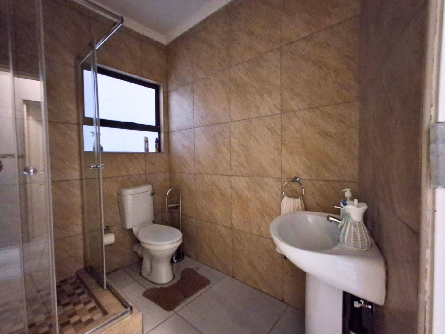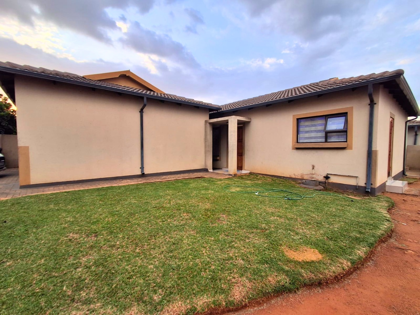 The home is fully tiled and includes a neat shared bathroom. Outside, you’ll find a double garage, paved yard, and a generously sized, secure stand with potential for future extensions.