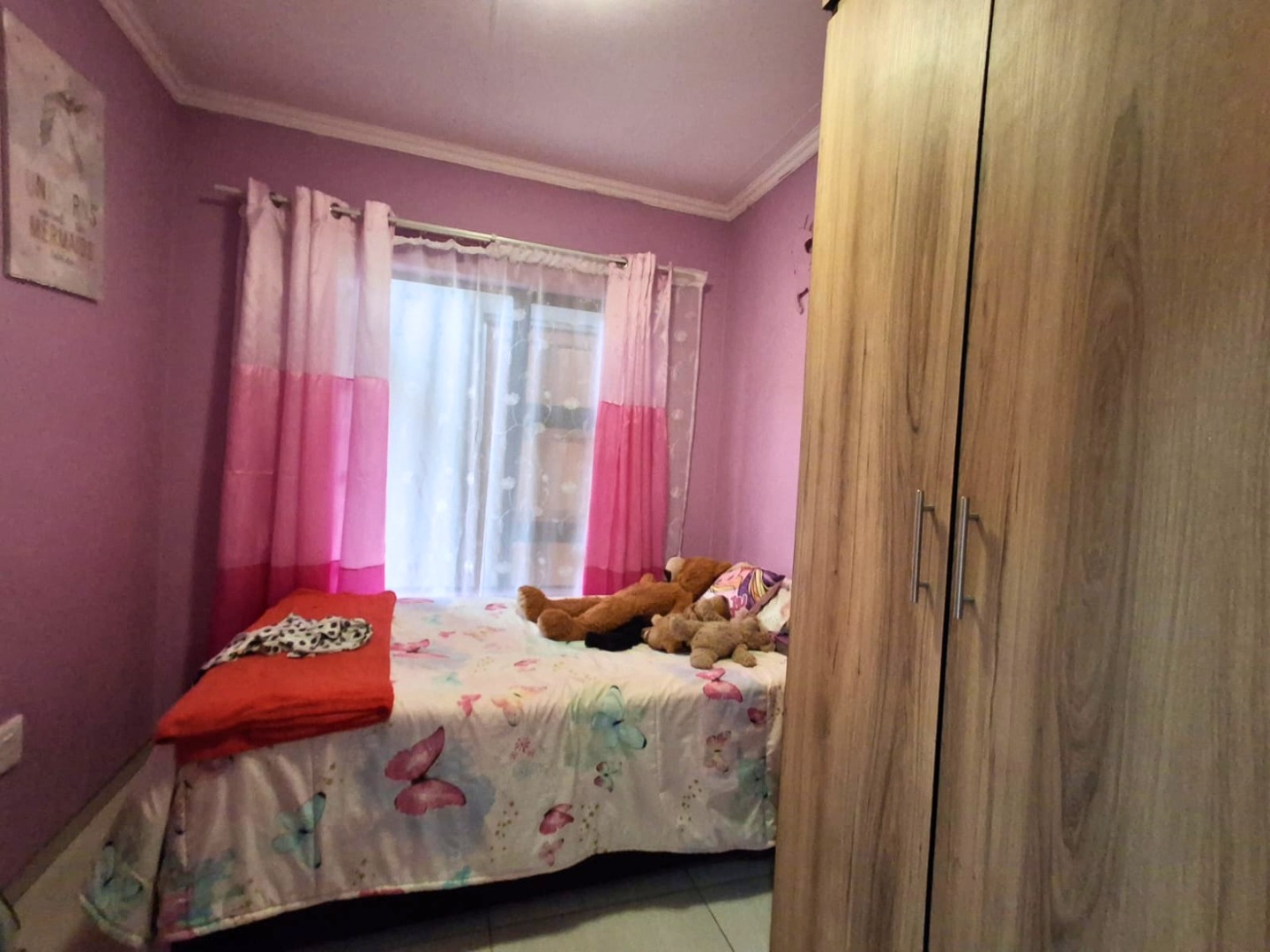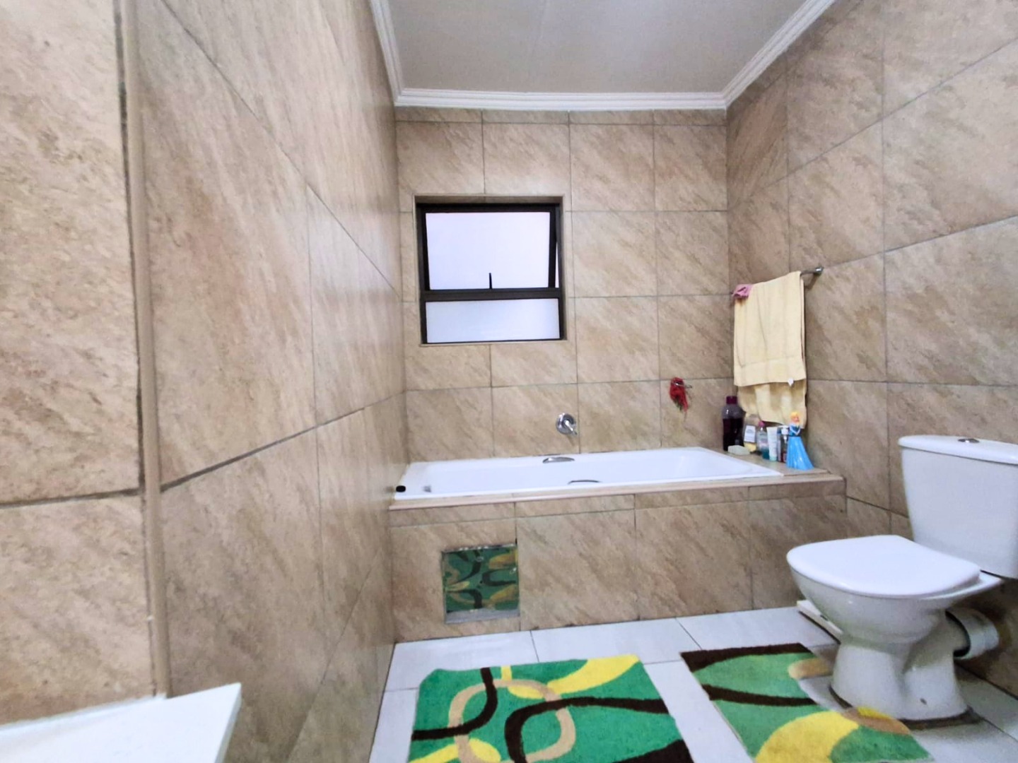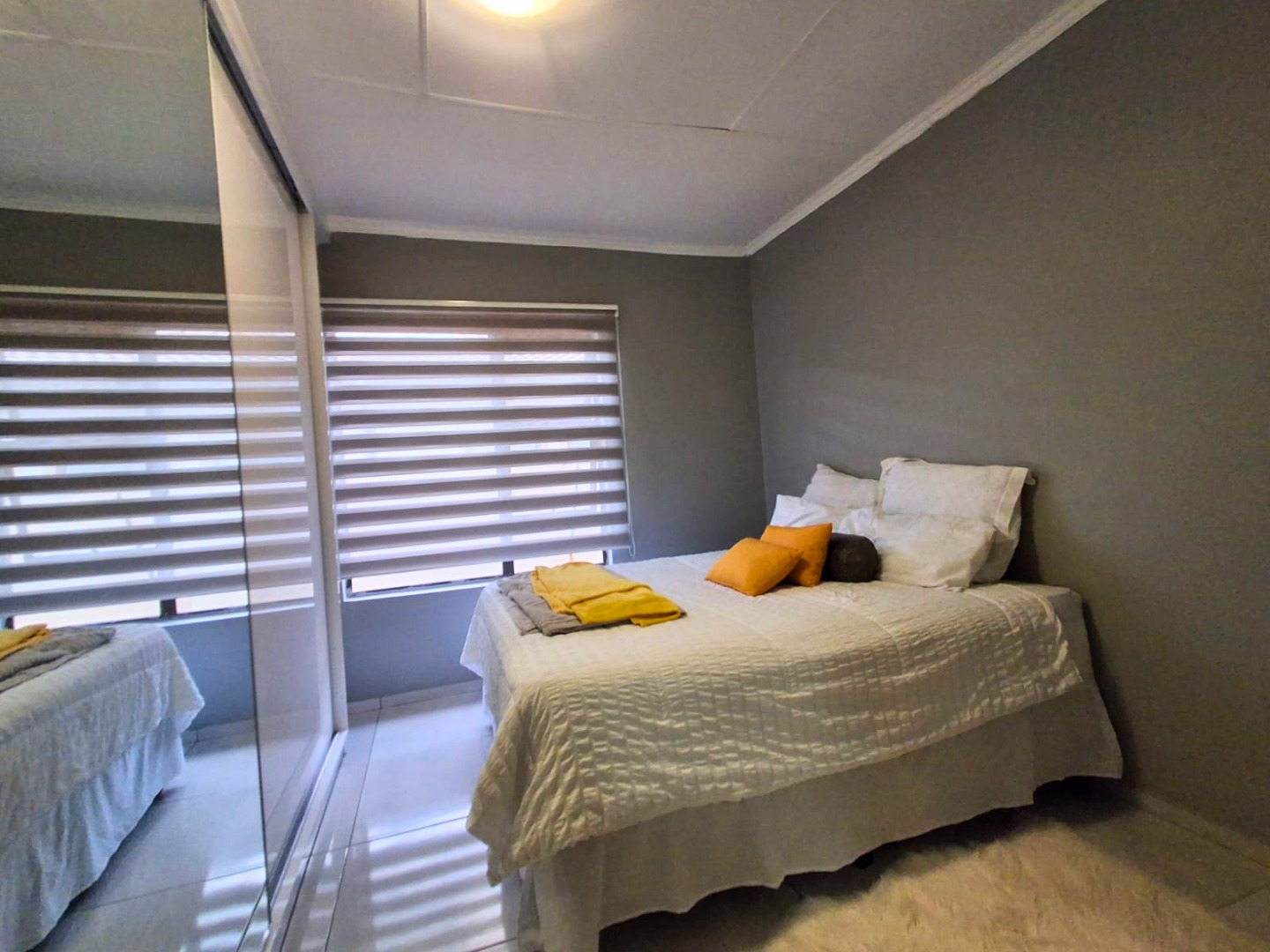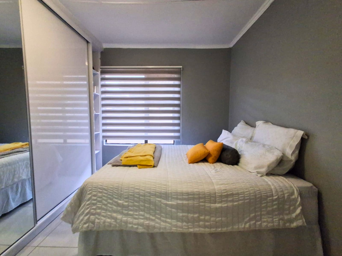 The home is fully tiled and includes a neat shared bathroom. Outside, you’ll find a double garage, paved yard, and a generously sized, secure stand with potential for future extensions.
