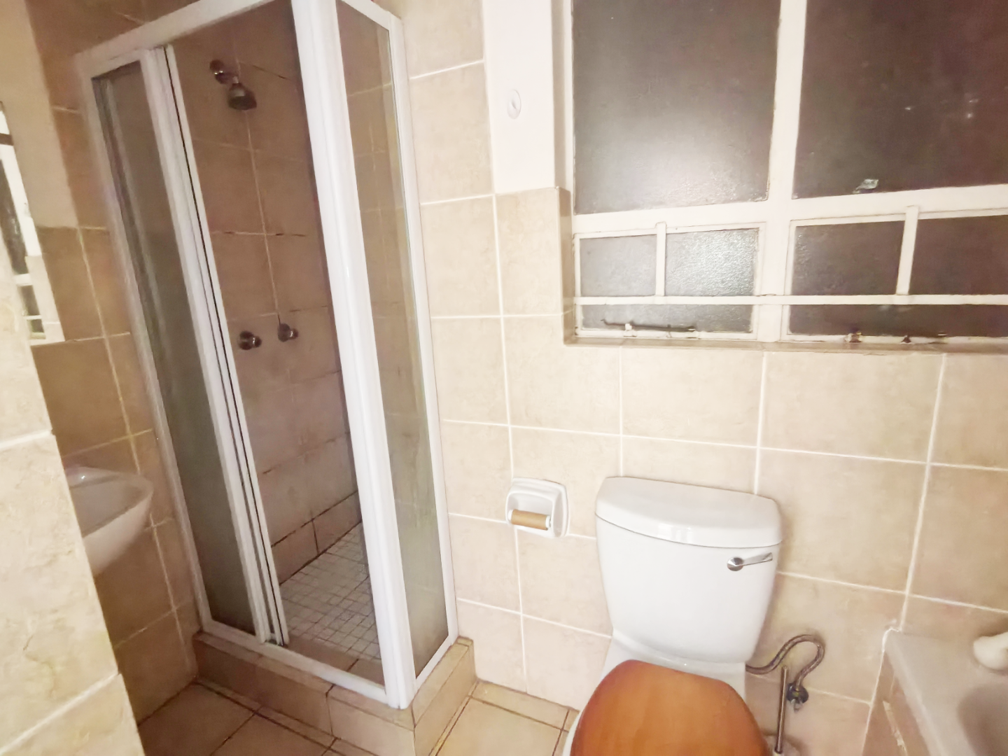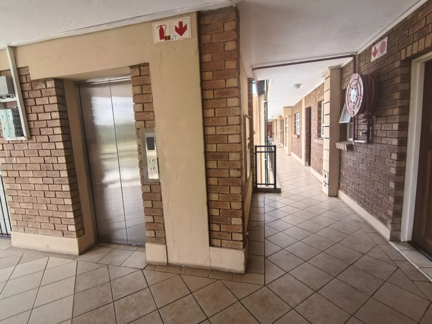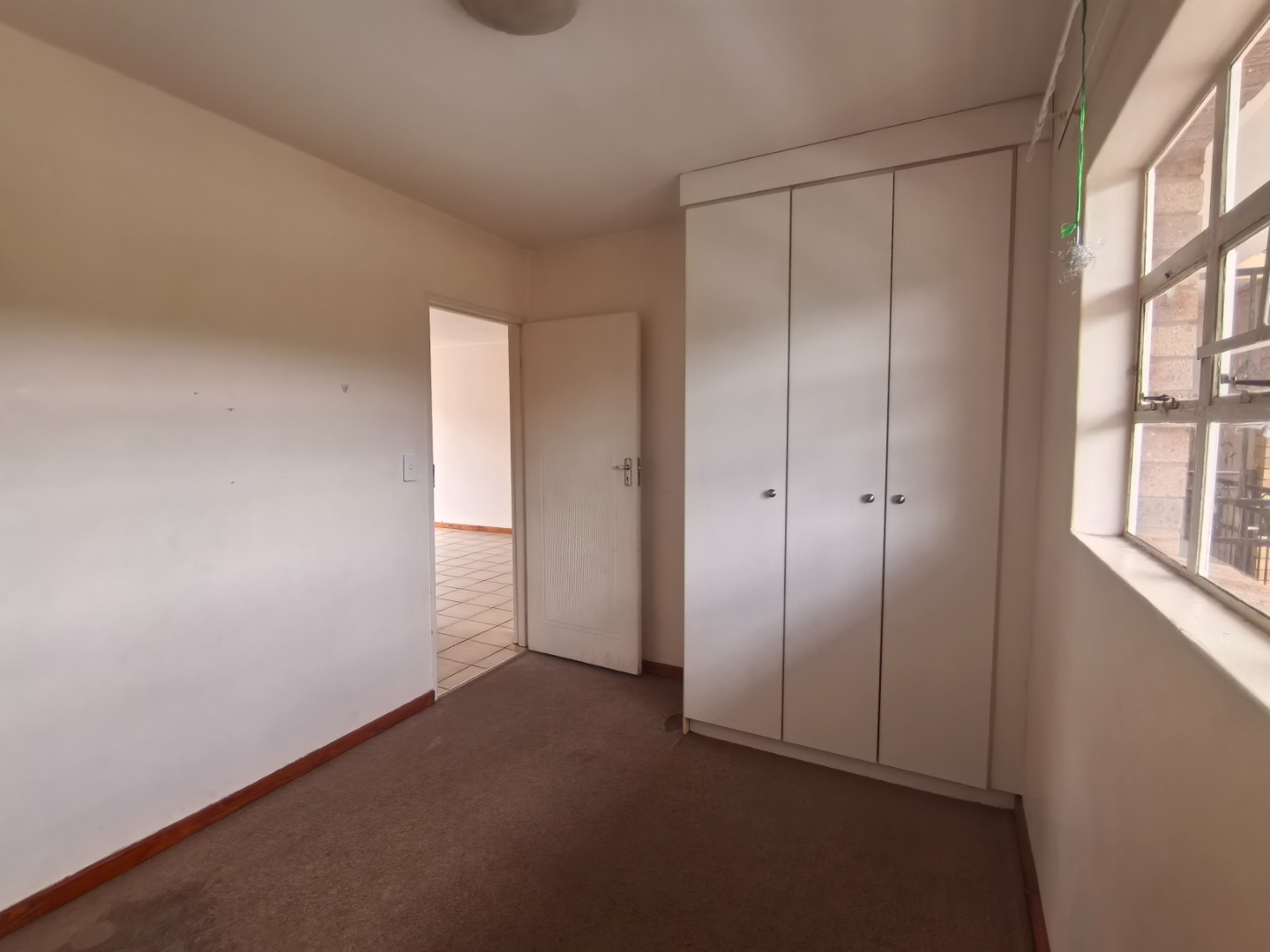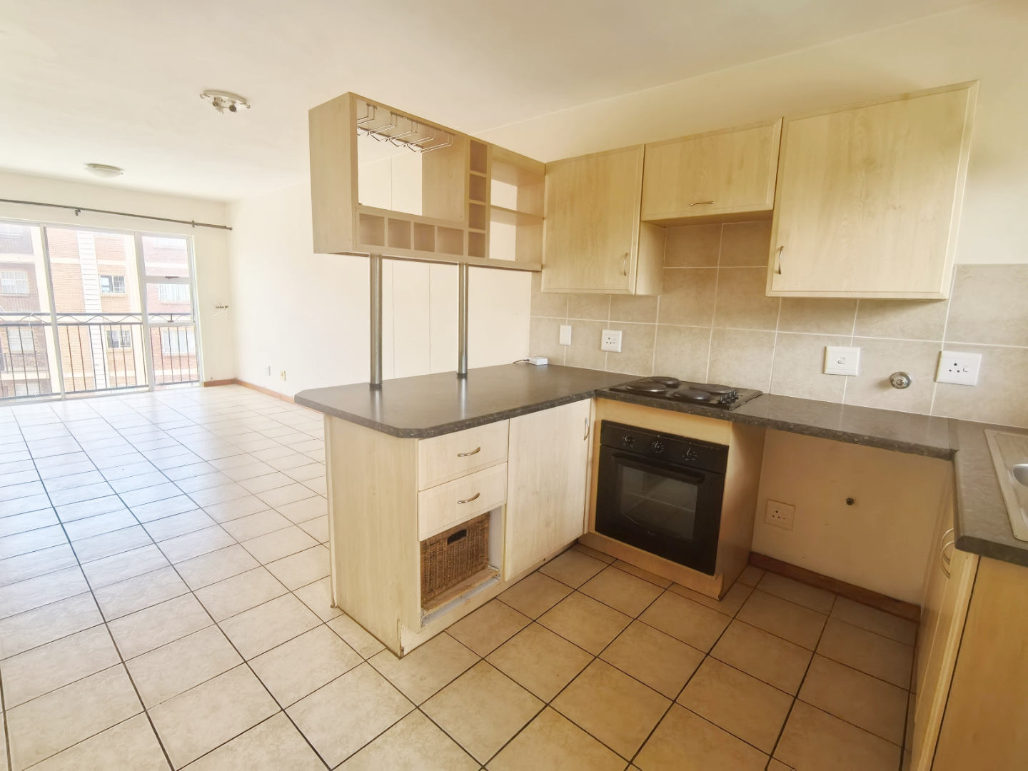 Offering a blend of comfort and security. This apartment offers a practical and comfortable living space. The open-plan layout seamlessly connects the functional kitchen and living area, creating an inviting atmosphere. The kitchen is equipped with light wood cabinetry, dark laminate countertops, a built-in oven and hob, and a double sink. Ample counter and storage space, complemented by a breakfast bar with a wine rack, make this kitchen both efficient and sociable. Natural light streams in through a large window, brightening the space. Two comfortable bedrooms and a single well-appointed bathroom with a shower. Tiled flooring extends throughout the living areas and kitchen, ensuring easy maintenance. Security bars on windows provide an additional layer of safety.