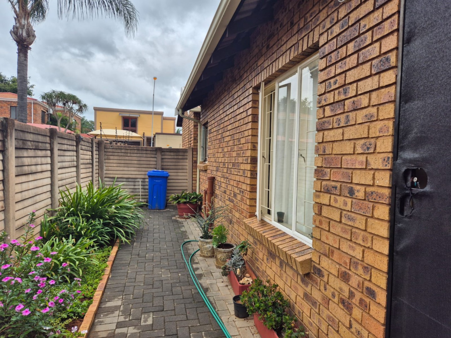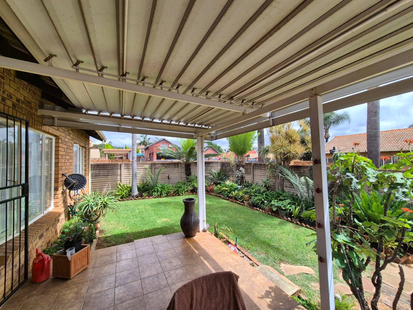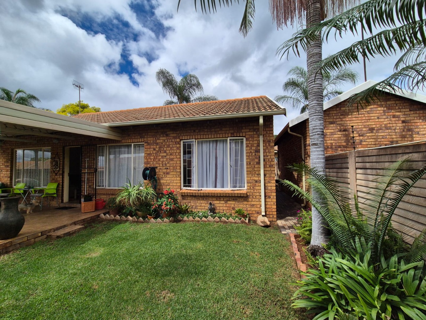Discover this charming residential property nestled within a secure complex in the metropolitan and suburban area of Ninapark, Akasia. The property boasts a classic brick exterior, contributing to its appealing kerb appeal, set within a well-maintained environment featuring paved roads and mature palm trees, indicative of a neat and secure community.