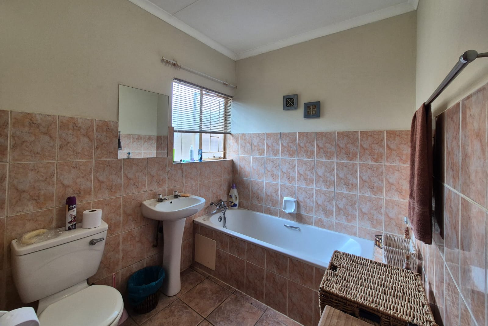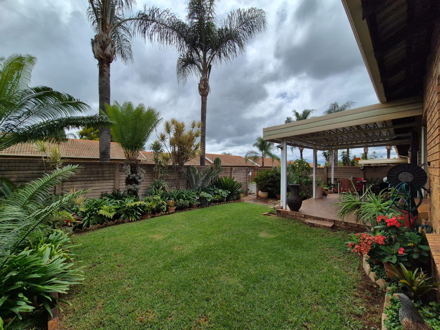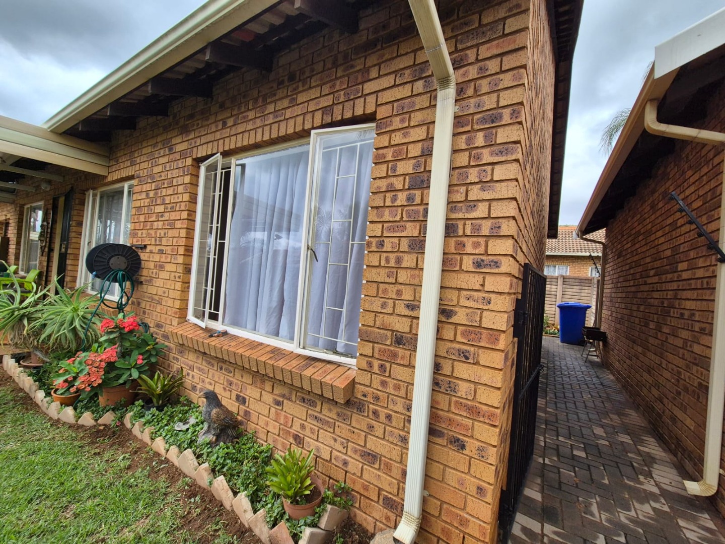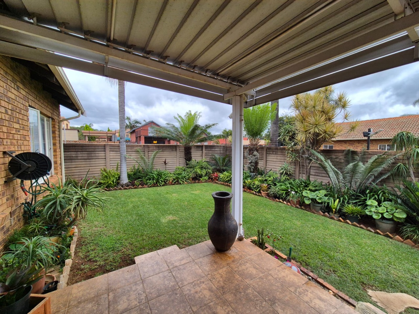 Discover this charming residential property nestled within a secure complex in the metropolitan and suburban area of Ninapark, Akasia. The property boasts a classic brick exterior, contributing to its appealing kerb appeal, set within a well-maintained environment featuring paved roads and mature palm trees, indicative of a neat and secure community.