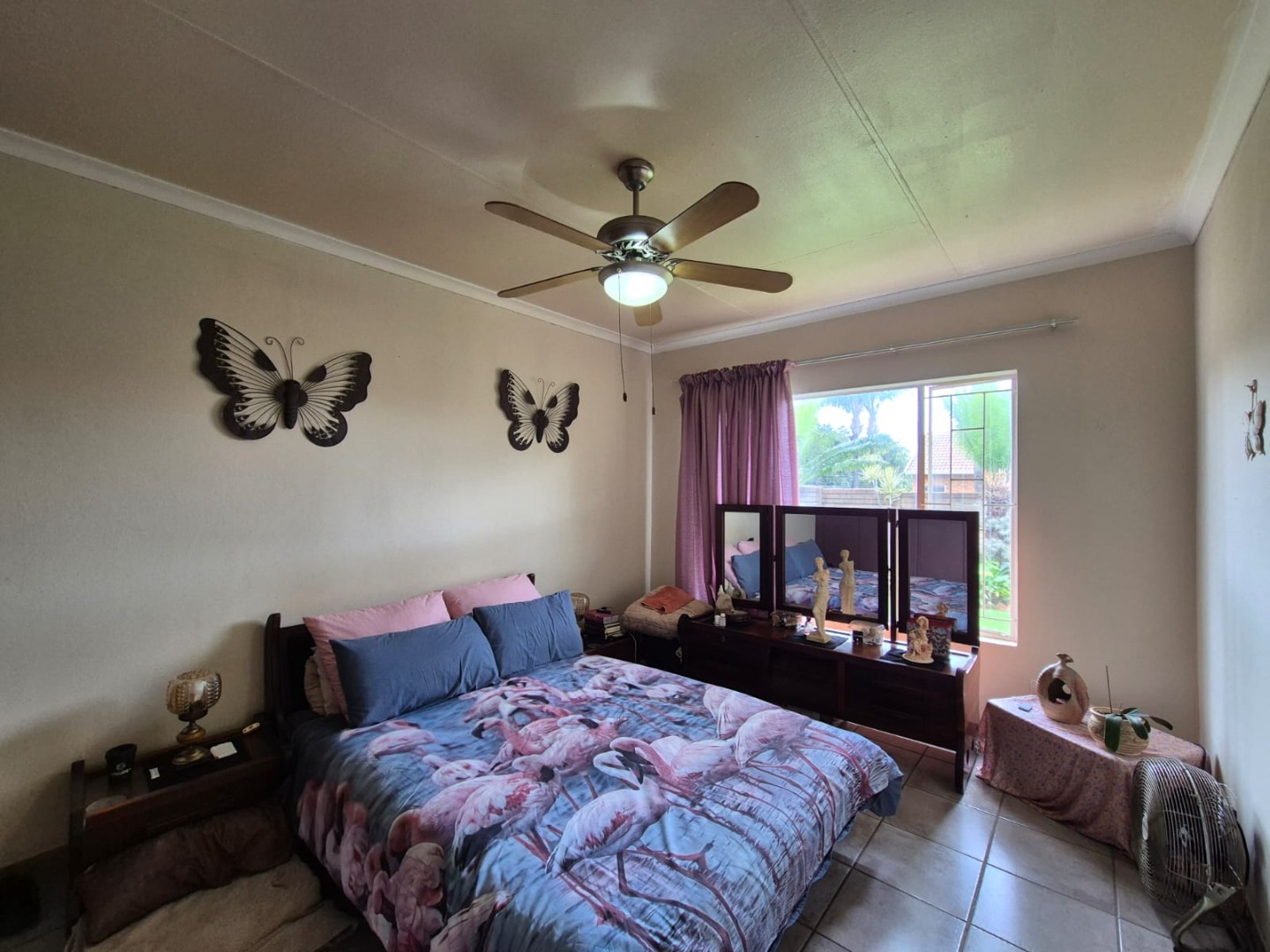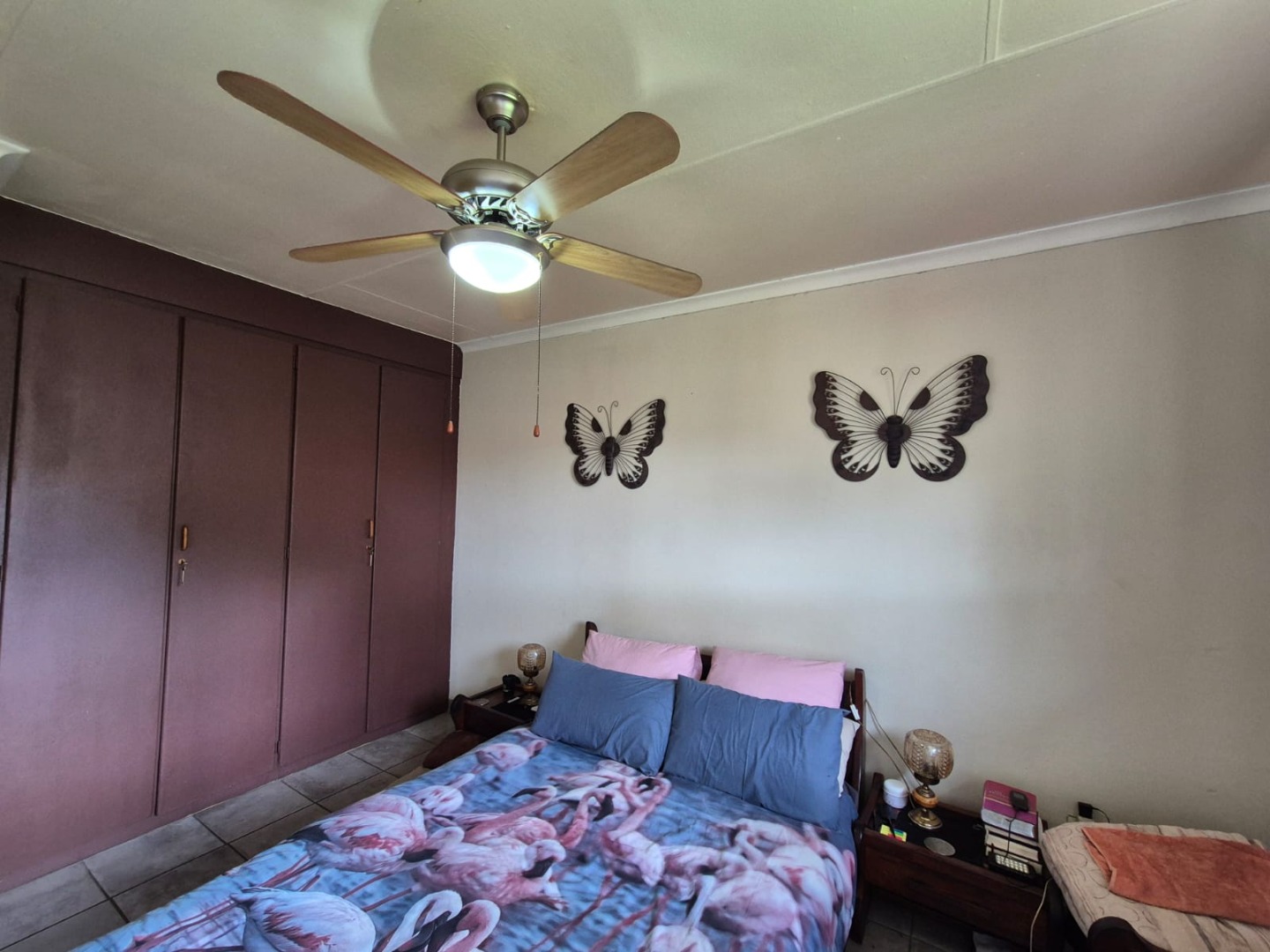 This home offers two well-proportioned bedrooms, each fitted with tiled flooring and ceiling fans for comfort. The single bathroom is tiled and includes both a separate shower stall and a bathtub, catering to all preferences.