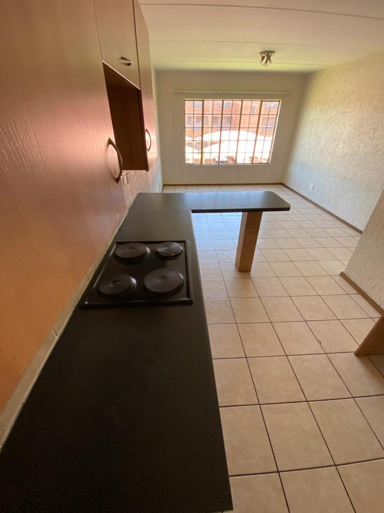 Looking for a cozy and secure spot in Boksburg West? This lovely 1-bedroom apartment is nestled within a well-maintained complex, offering a relaxed lifestyle. You'll appreciate the sturdy brick buildings and the expansive central grassy courtyard, perfect for a breath of fresh air. The complex boasts neat landscaping and ample shaded parking, making coming home super easy. Step inside to a practical and inviting space featuring a comfortable lounge, a functional kitchen, one bedroom, and one bathroom. The kitchen is designed for convenience with light wood-grain cabinetry, dark laminate countertops, and an integrated hob (some units include an oven!). A handy breakfast bar is great for quick meals. Tiled flooring throughout ensures easy cleaning, and the open-plan layout keeps things bright. The bedroom provides a peaceful retreat, and the bathroom is neat with half-height tiled walls, a tiled floor, and a modern vanity. Enjoy your own private balcony, ideal for unwinding. The complex offers communal garden areas and dedicated shaded parking. Your peace of mind is covered with 24-hour security and an access gate. Plus, it's fibre-ready! Boksburg West is a convenient area in Boksburg, South Africa, known for its community feel and easy access to amenities. Key Features: * 1 Bedroom, 1 Bathroom * Secure Complex with 24-hour Security * Fibre Ready * Private Balcony * Shaded Parking * Communal Garden & Courtyard * Integrated Kitchen Hob