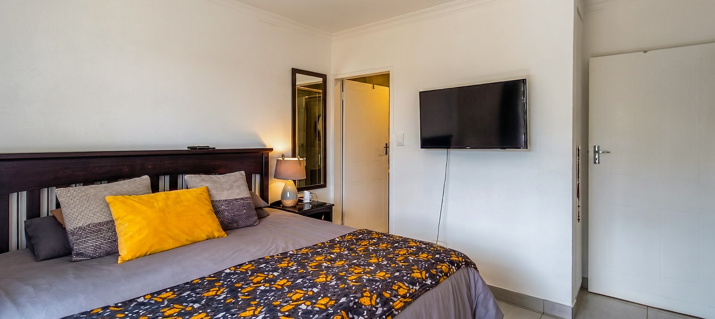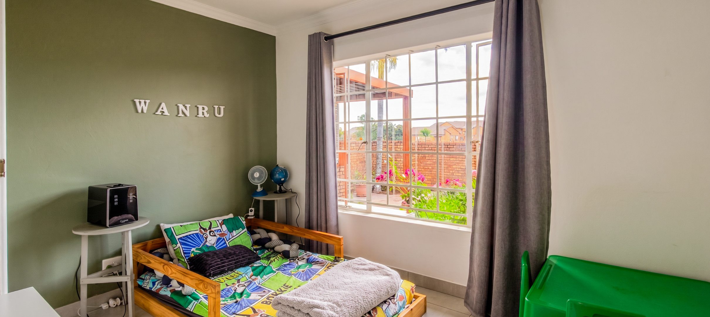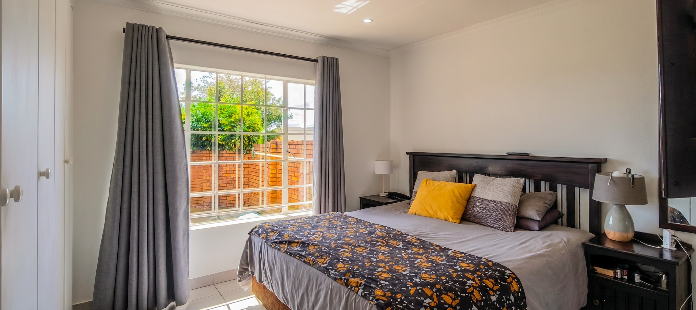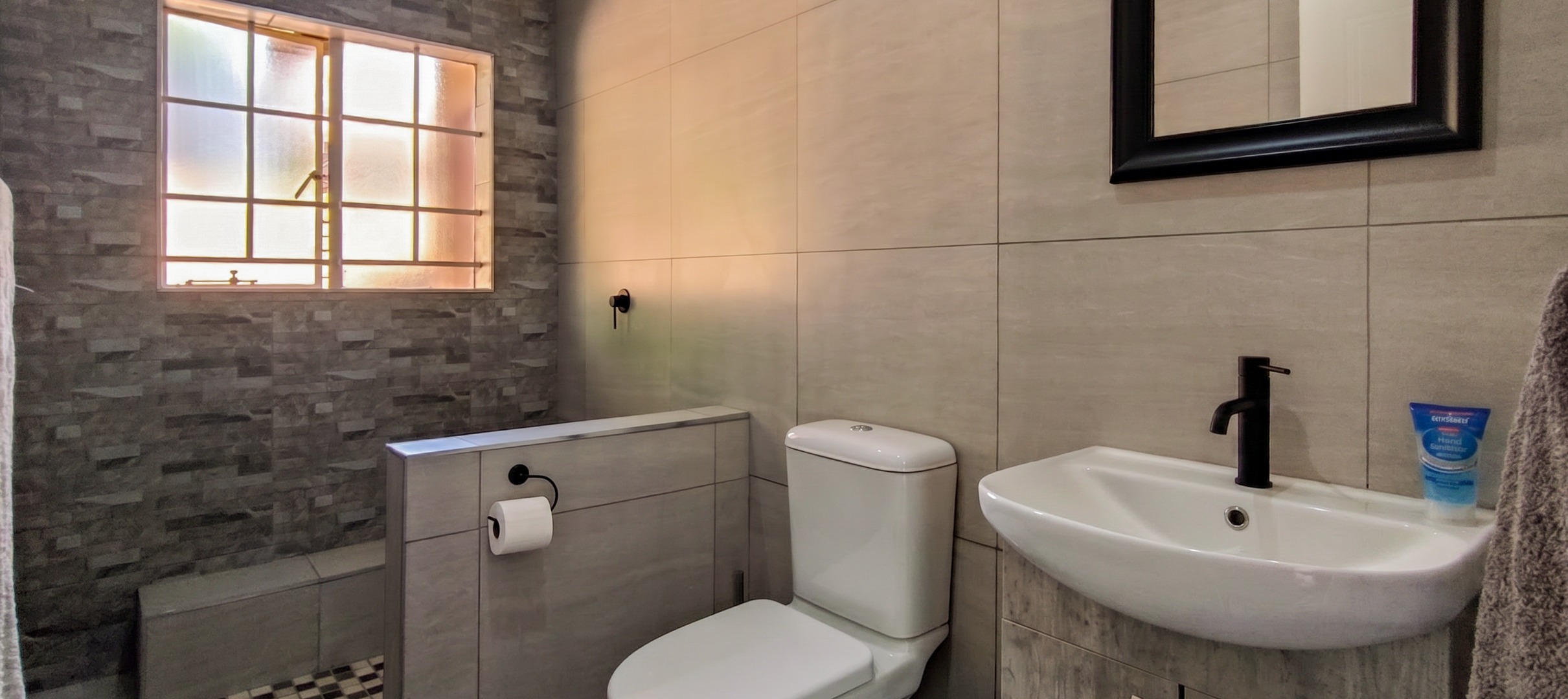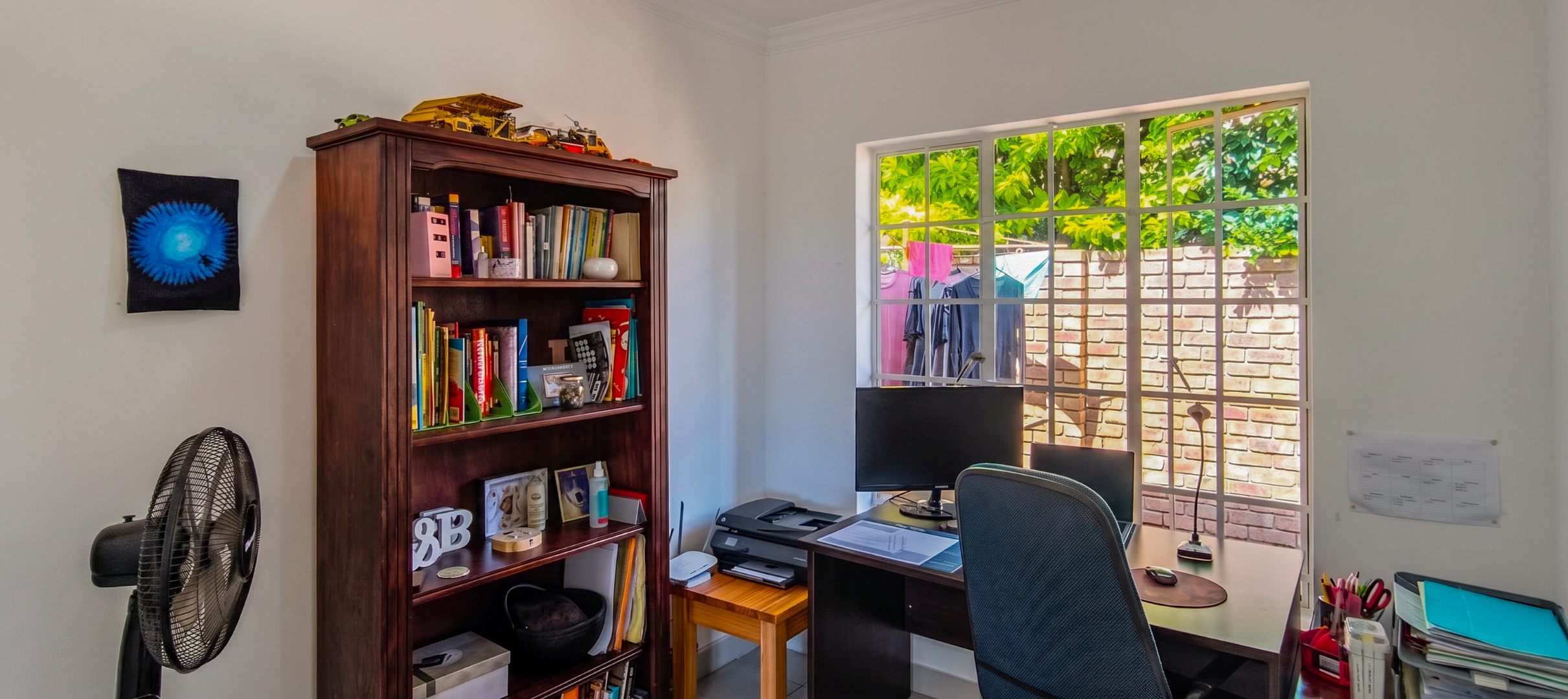 The dining area links directly to the kitchen, keeping everything within easy reach. Just off the kitchen, a hallway leads to the more private areas of the home. Along this passage, you will find a study (that can serve as an additional bedroom, as it has built-in cupboards), a standalone bathroom, and one of the bedrooms, with the main bedroom positioned at the end and featuring its own en suite bathroom. All the bedrooms have built-in cuboards.