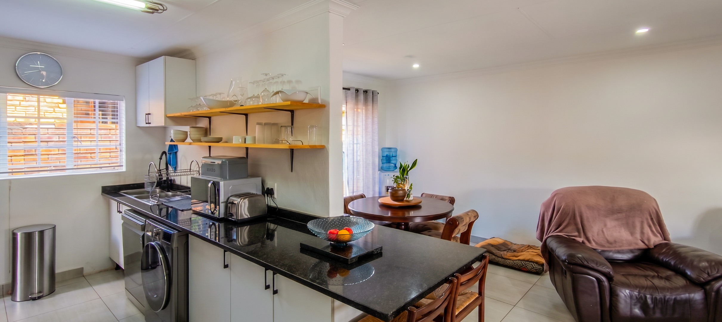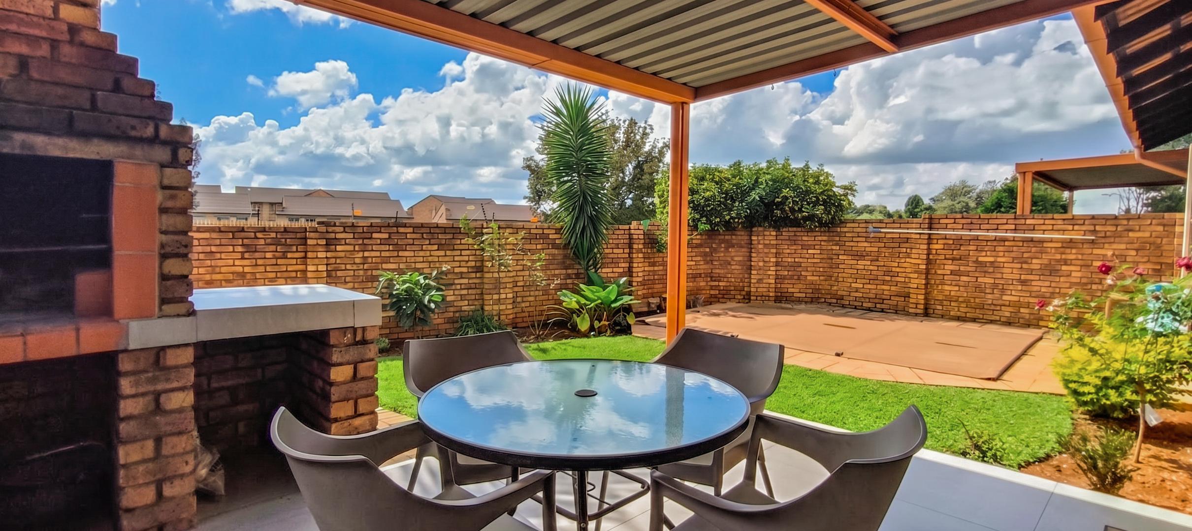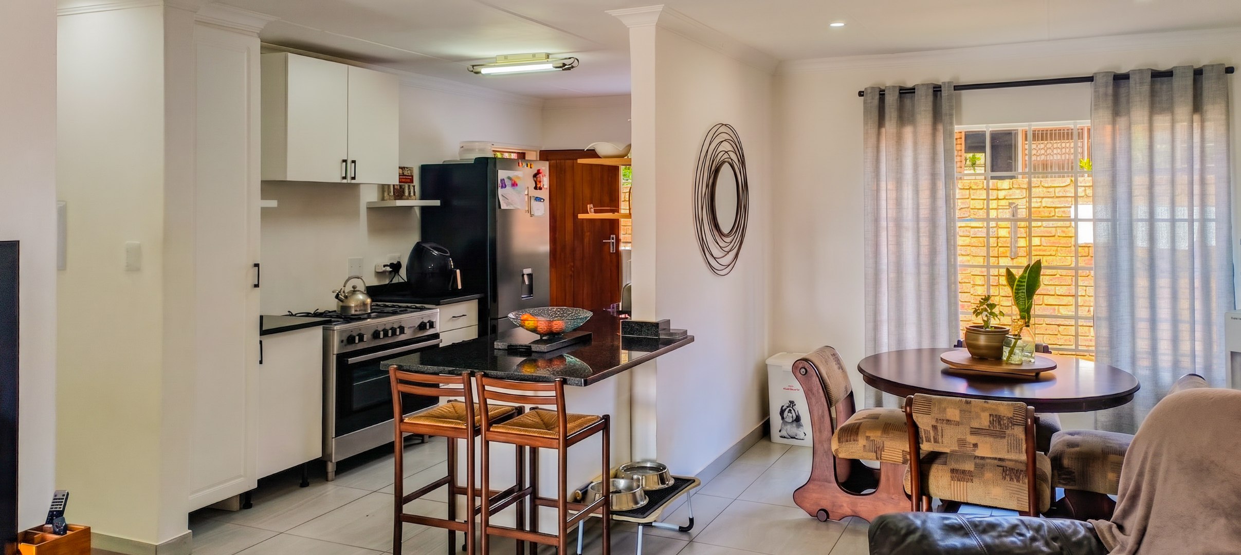 As you arrive, the front yard leads you to a welcoming patio with a built in braai, set alongside a covered swimming pool that creates a relaxed outdoor space right at the entrance. From here, you step into an open plan lounge, which flows into the dining area, forming a connected living space suited to everyday living.