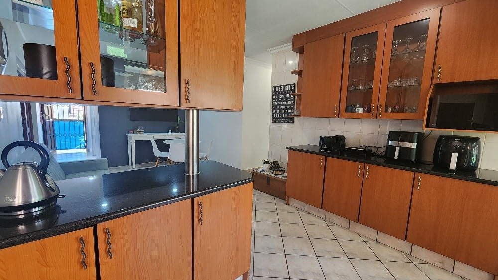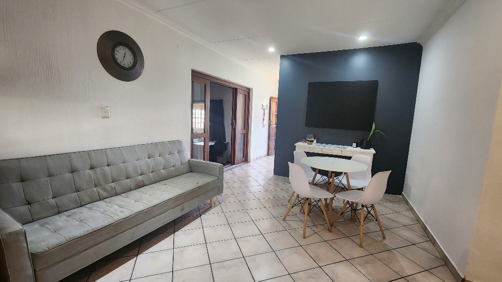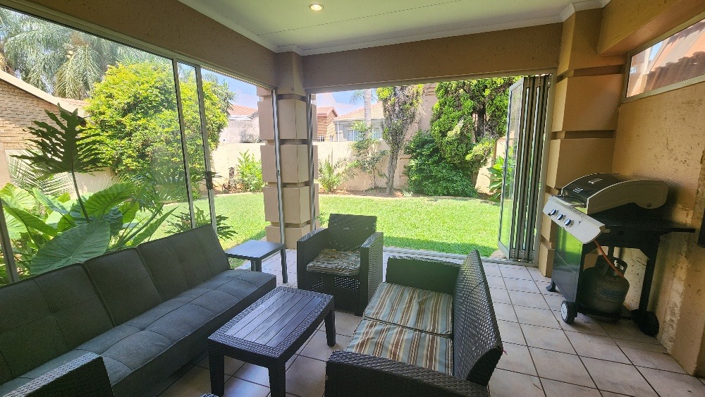 Enjoy year round entertainment in the enclosed braai room, which opens up through stack doors to a well maintained, pet friendly garden, perfect for your furry friends to enjoy. The outdoor area also features garden irrigation to keep the lawn lush and green.