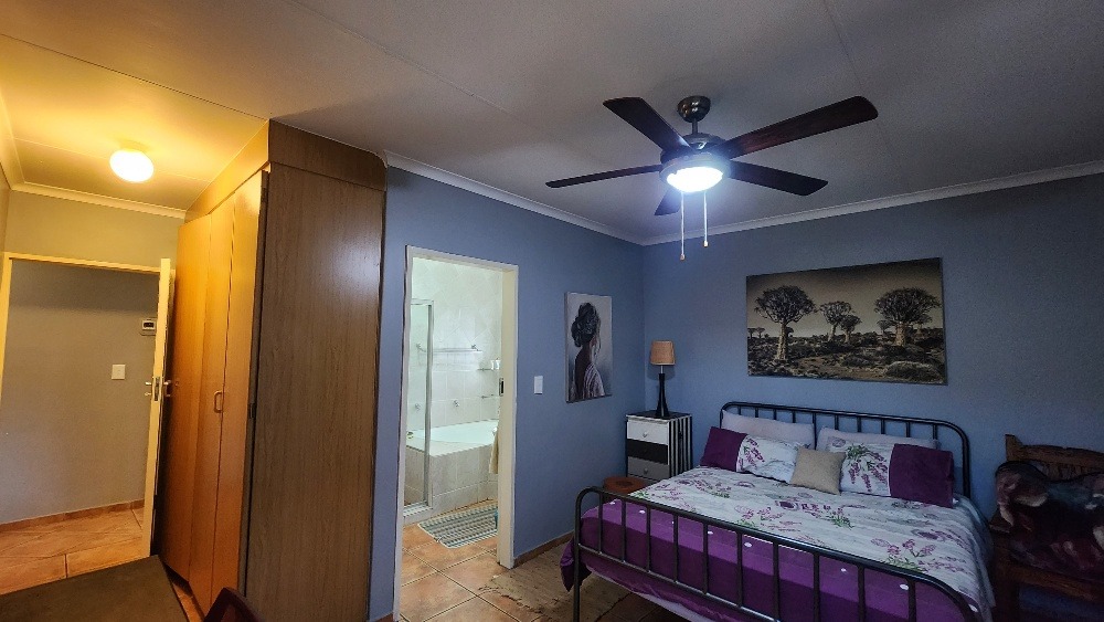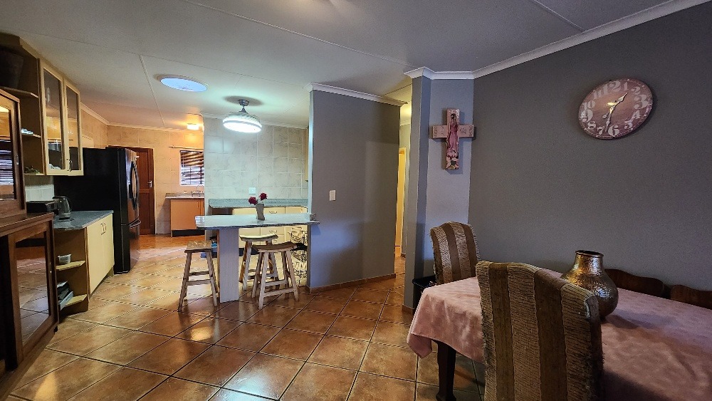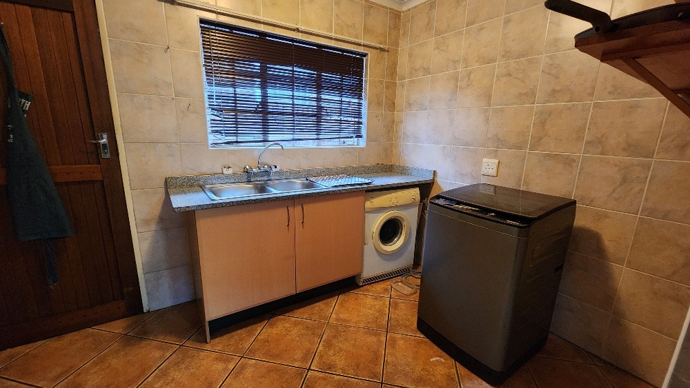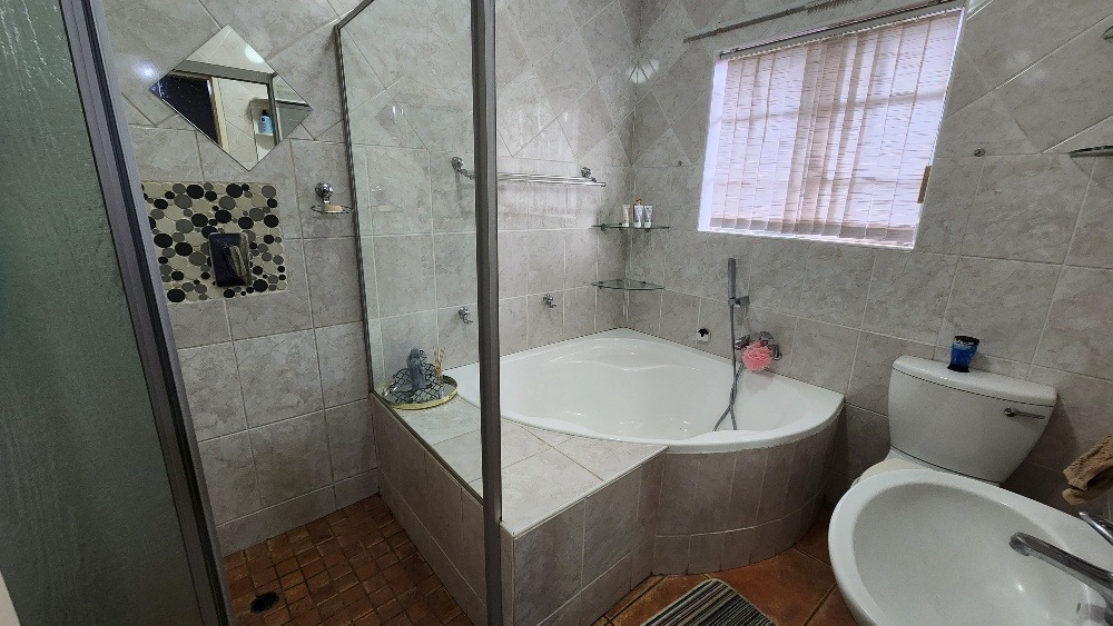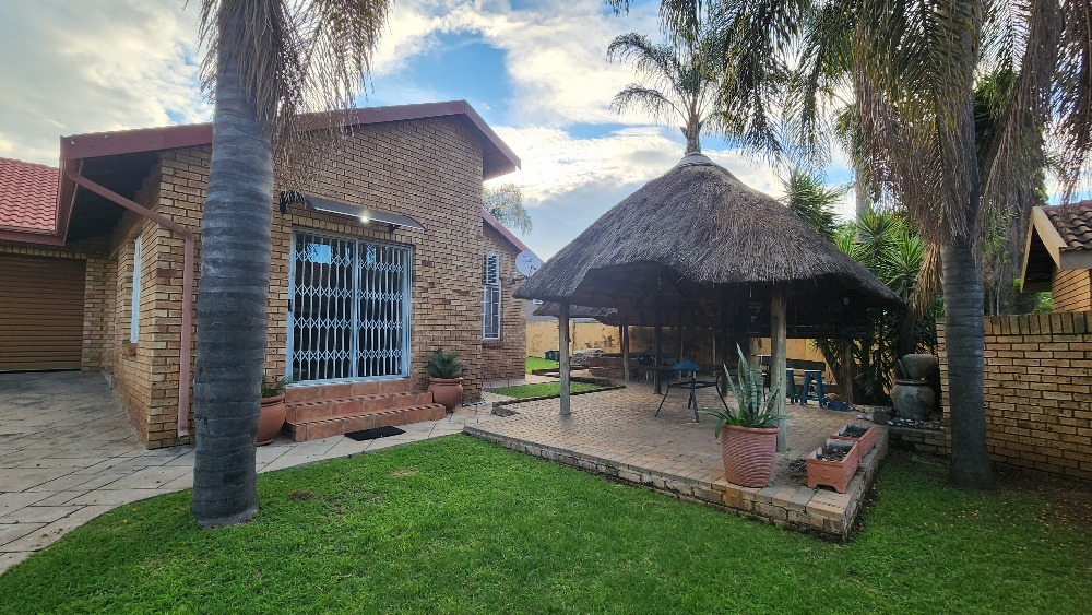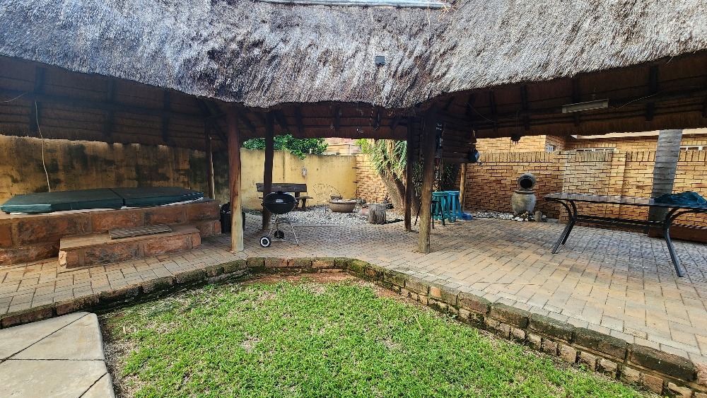 The outdoor area is perfect for relaxation and social gatherings. Enjoy a thatched lapa, complete with a built-in jacuzzi and a dedicated boma area, ideal for South African outdoor living. The property also includes an outside toilet and shower for domestic convenience. Sustainability is addressed with a solar geyser, water tank and a prepaid meter. 2 Pets are welcome, making this a perfect family haven.