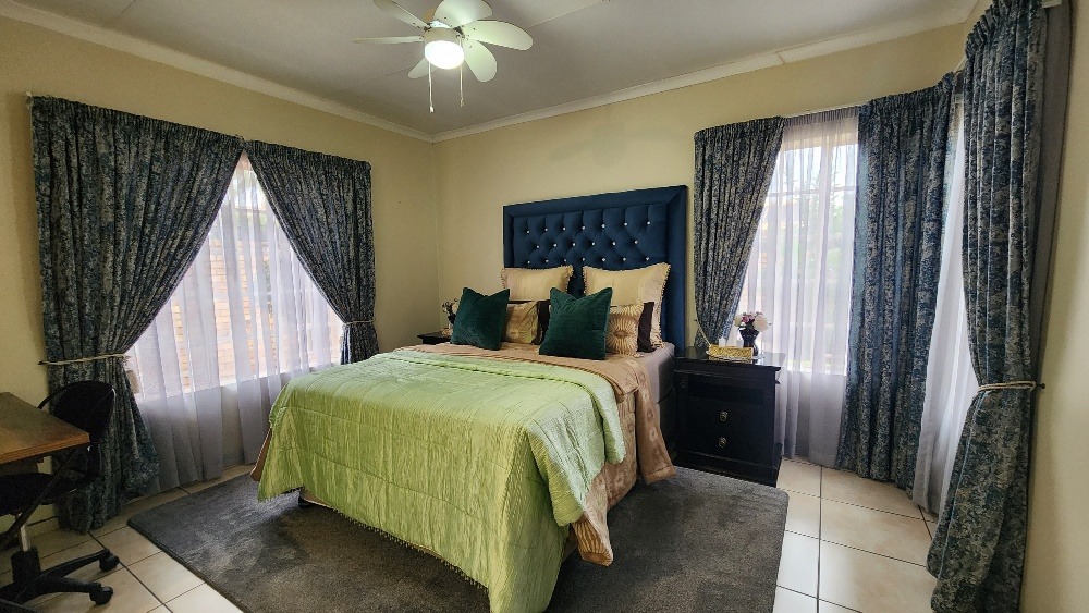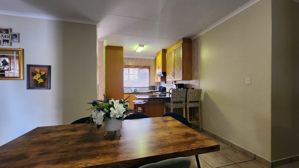 Delightful four bedroom, two bathroom residence is situated within a desirable security estate in Amberfield. Boasting an open plan layout, the home features an open plan kitchen with granite tops, seprate scullery, a comfortable lounge and dining room, ideal for family living. The property extends outdoors to an undercover patio, complete with a built-in braai, overlooking an immaculate garden. Additional conveniences include a domestic toilet, a double garage and a wendy house. Enjoy modern amenities such as fibre connectivity and a prepaid meter. The estate offers two parks, and the location provides easy access to Reds Mall, Virgin Active gym, and public transport routes.