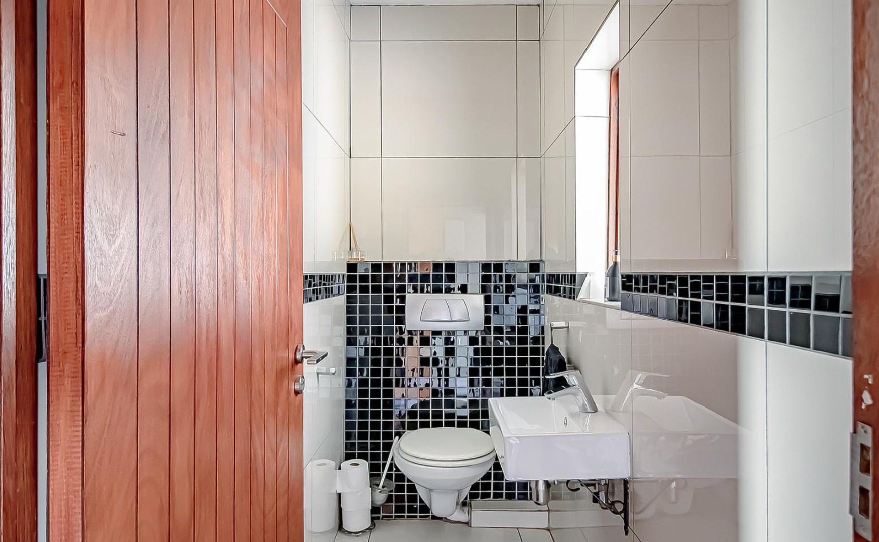 Guest bathroom downstairs for convenience.