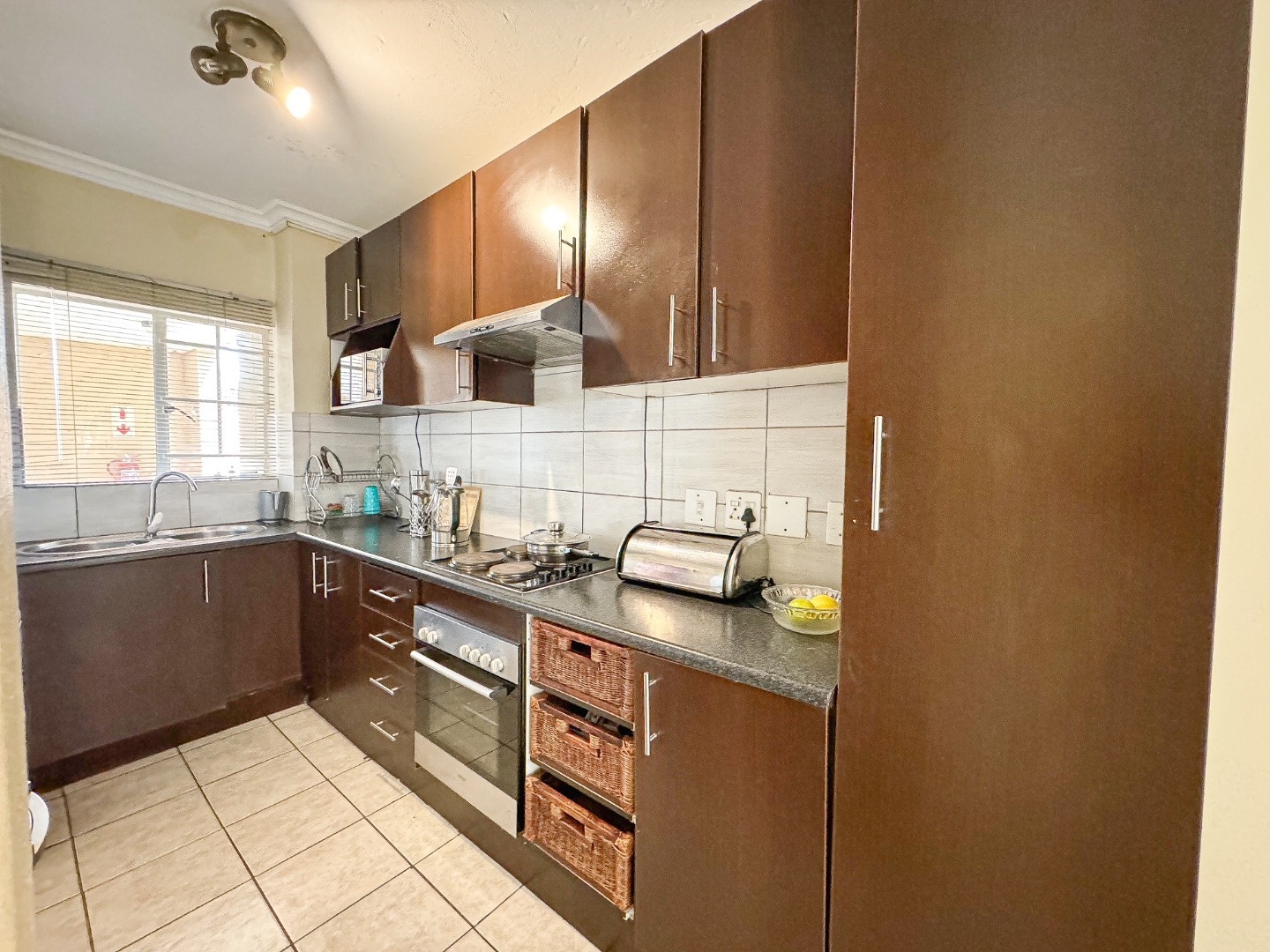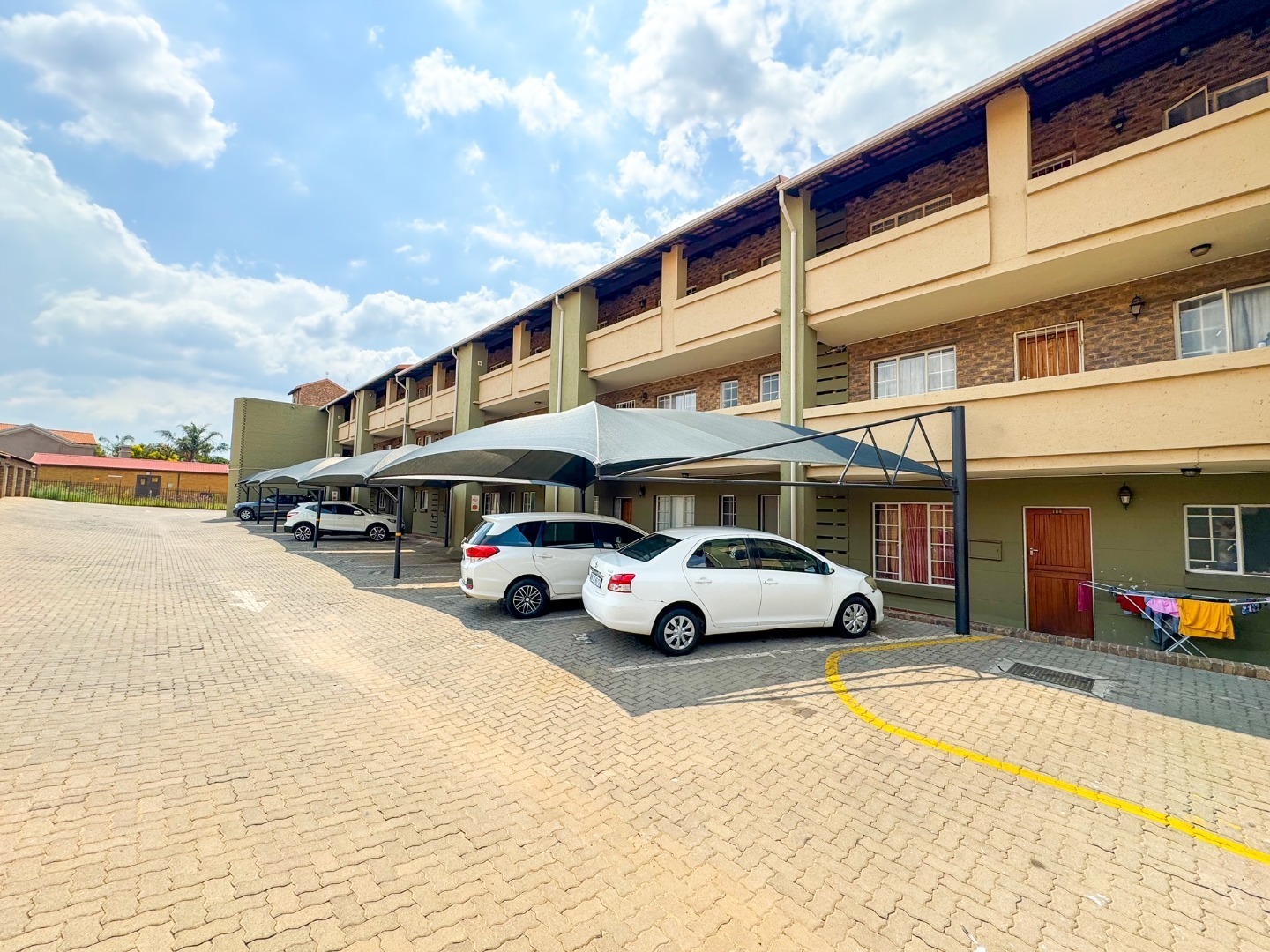 Spacious 2 bedroom, 1 bathroom apartment up for sale in Rooihuiskraal, ideal as an investment property as there is currently a tenant in place, rental amount R7,000.00. Lease ends 31 October 2024. Located in close proximity to Reds Mall in a safe and secure complex is where you will find this amazing spacious apartment, generously sized at 97 squares gives you a large open plan, fully tiled dining and lounge area with a well appointed kitchen, the kitchen has ample storage and enough room for all your appliances.