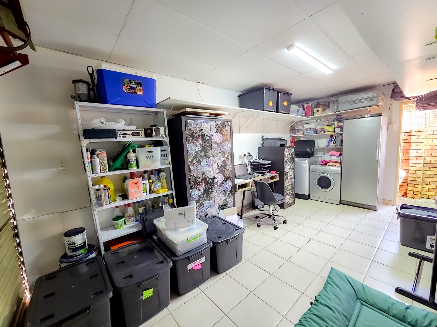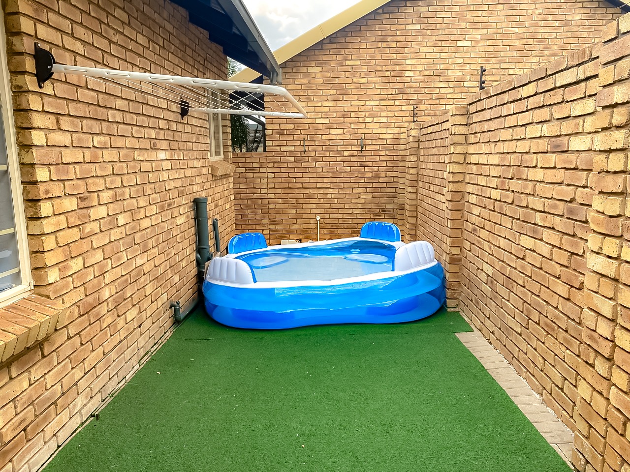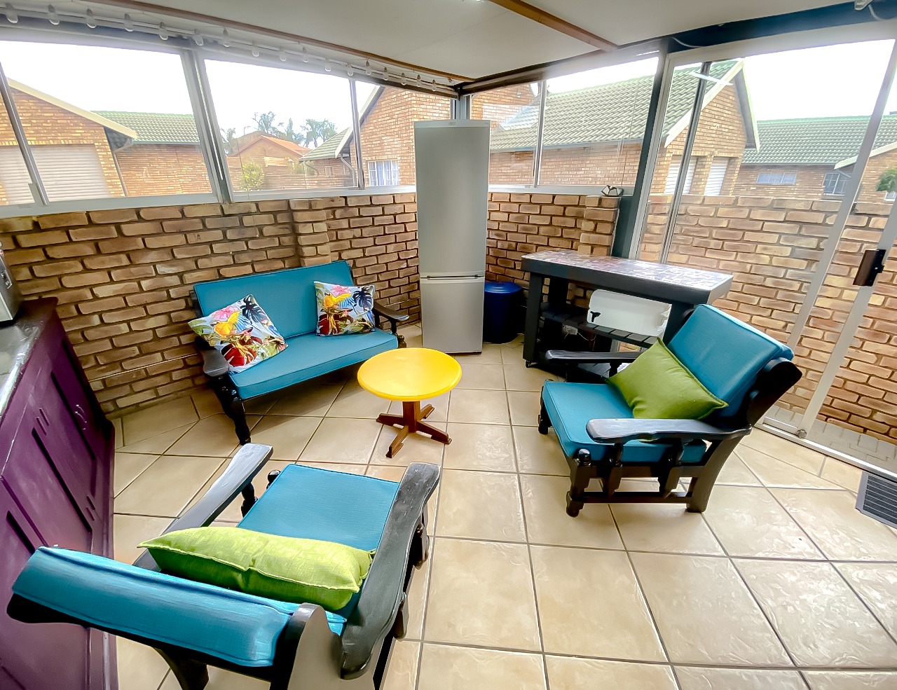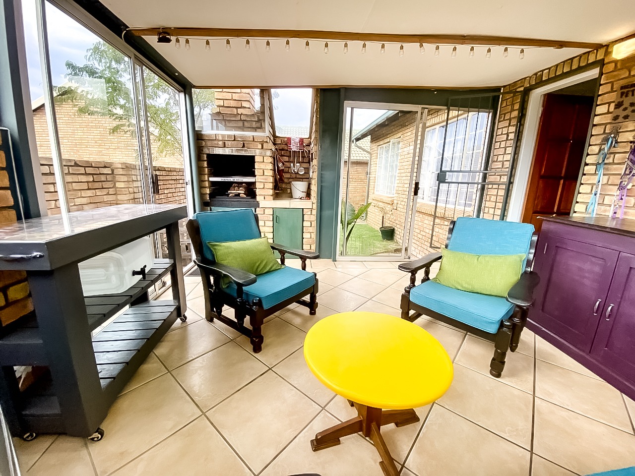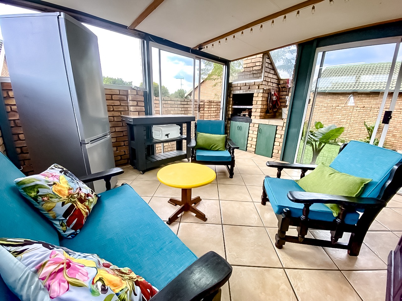 Enclosed patio featuring a built-in braai, ideal for entertaining.