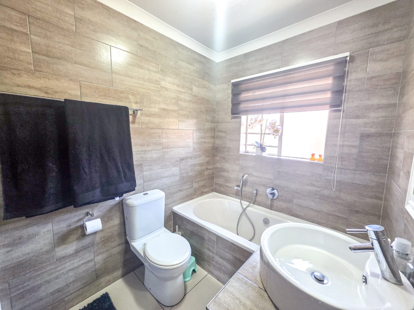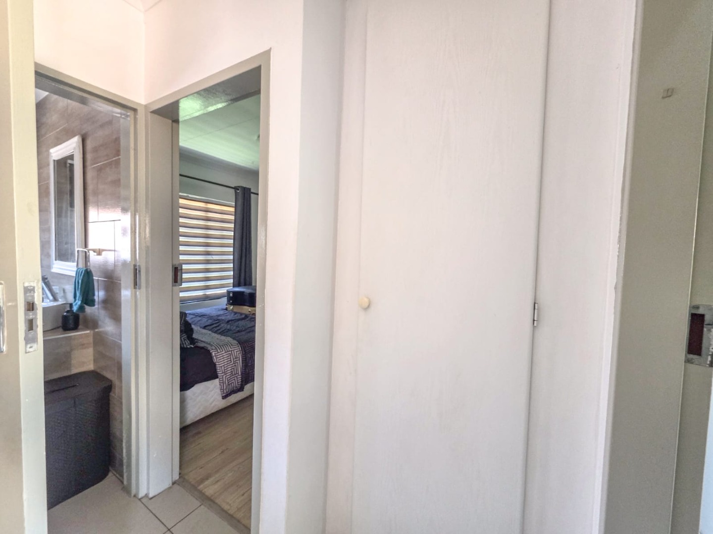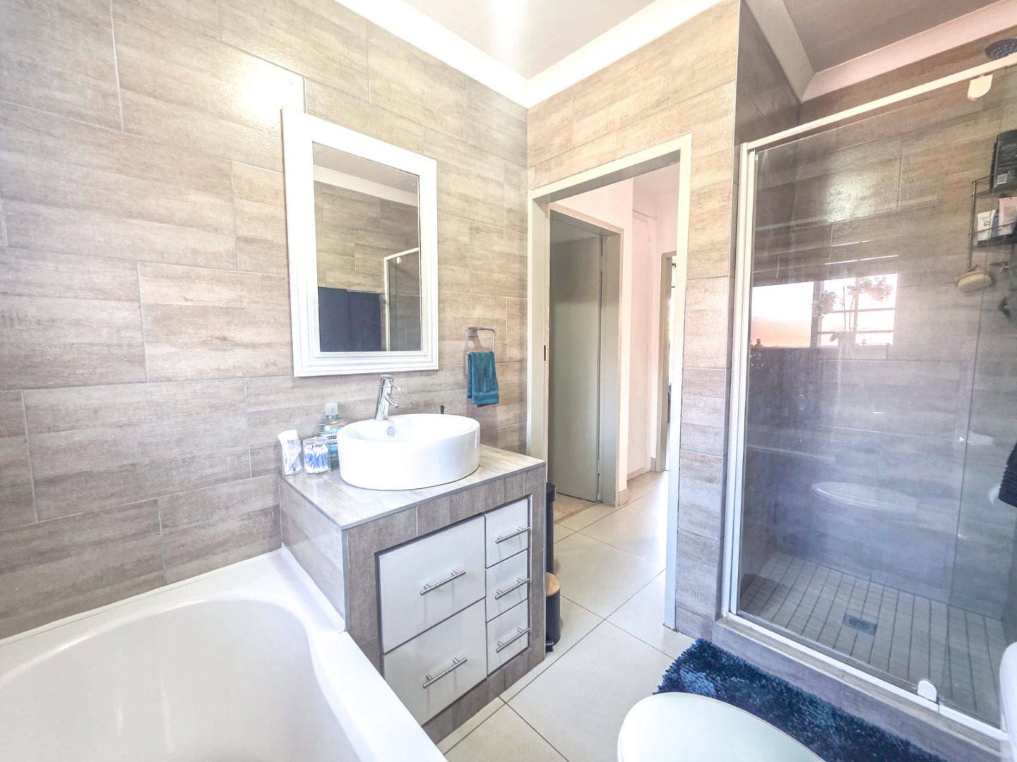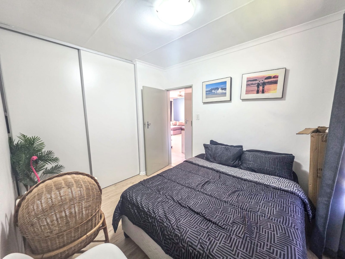Discover modern comfort in this 90 sqm residence, nestled within a secure gated community in Amberfield, Centurion. The open-plan layout features a contemporary kitchen with white cabinetry, granite-look countertops, and integrated appliances. Natural light fills the spacious living area, which includes a ceiling fan and a sliding door opening to the private garden.