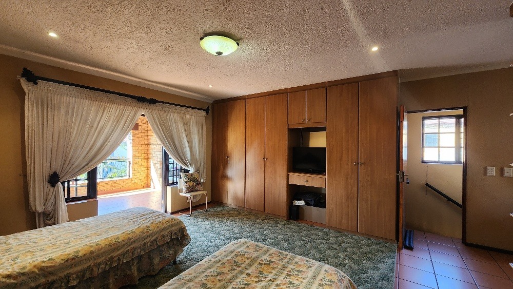 - Main bedroom is spacious, serene, and opens onto a large balcony, ideal for relaxing or a personal wellness space, also hosting a 12 000 BTU aircon and plenty cupboard space