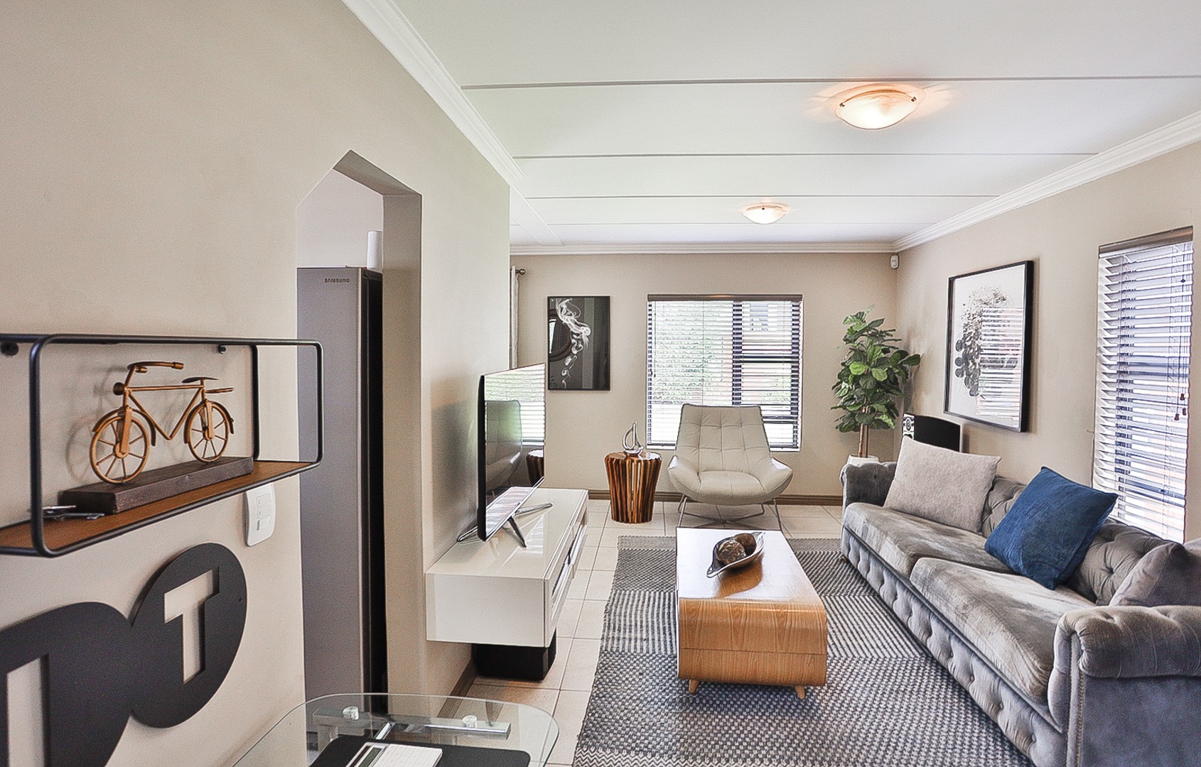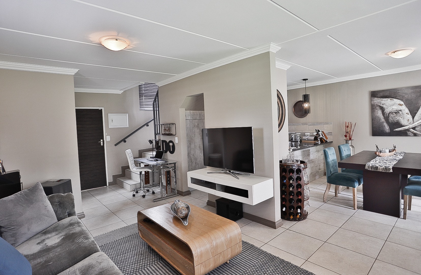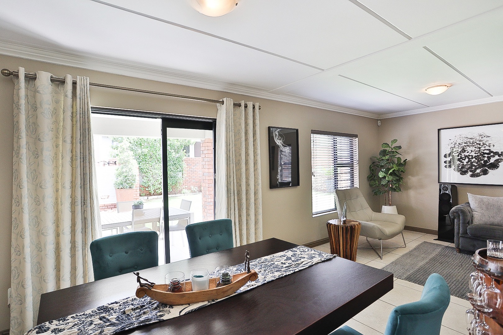 Inviting open-plan layout with a dining area, TV lounge, and a convenient guest bathroom.
