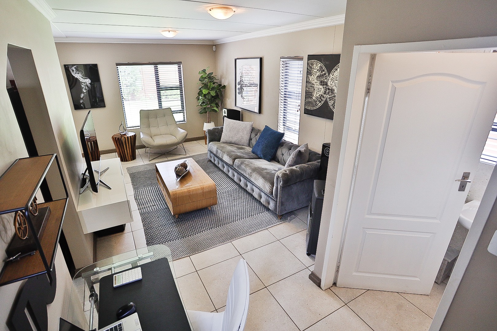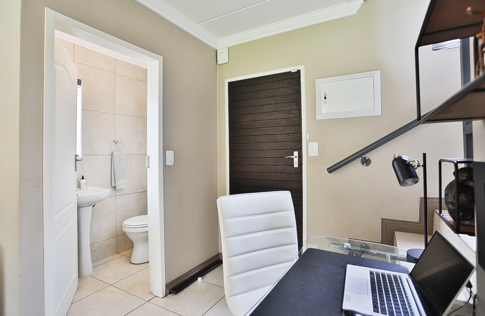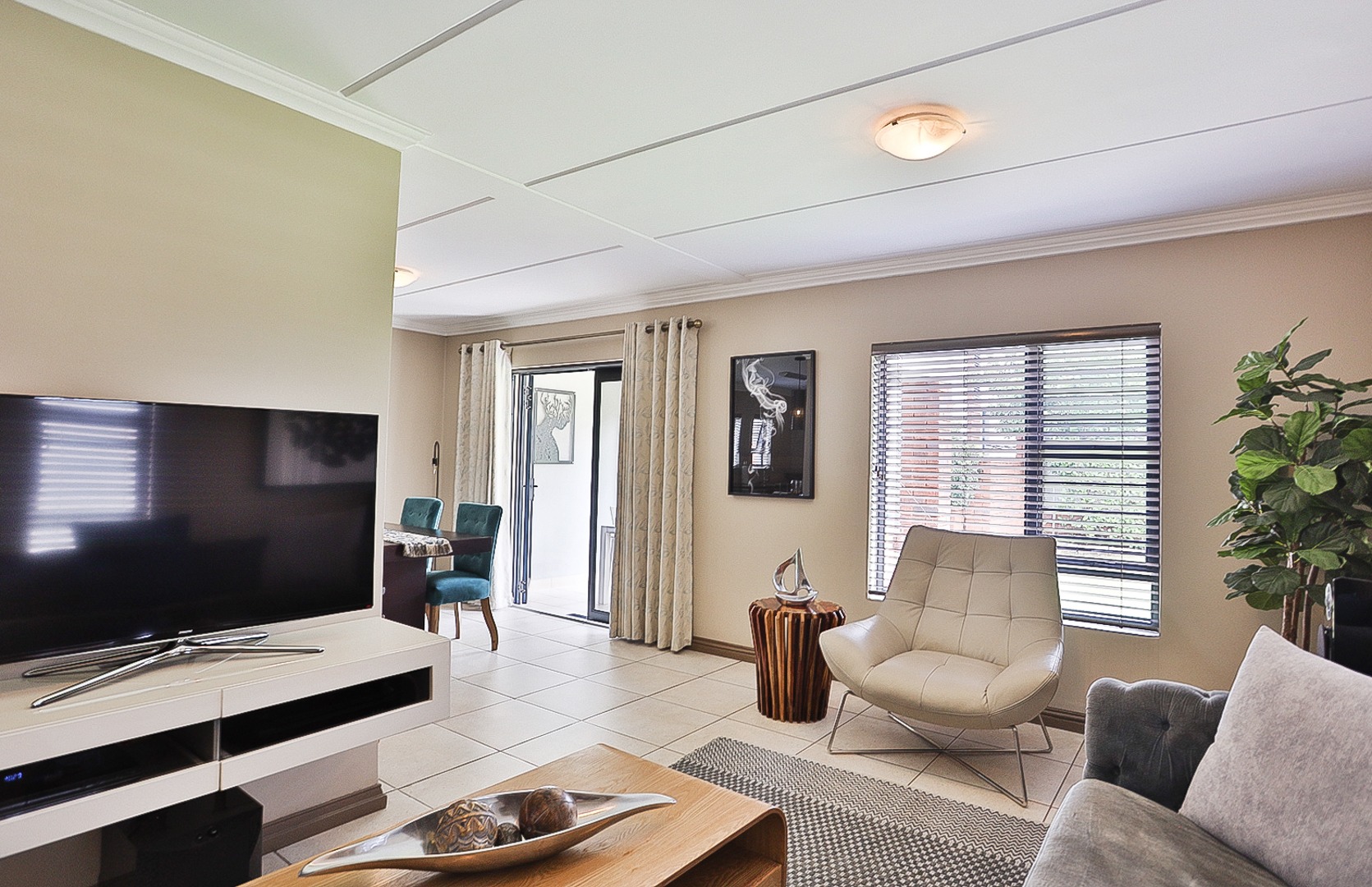 Inviting open-plan layout with a dining area, TV lounge, and a convenient guest bathroom.