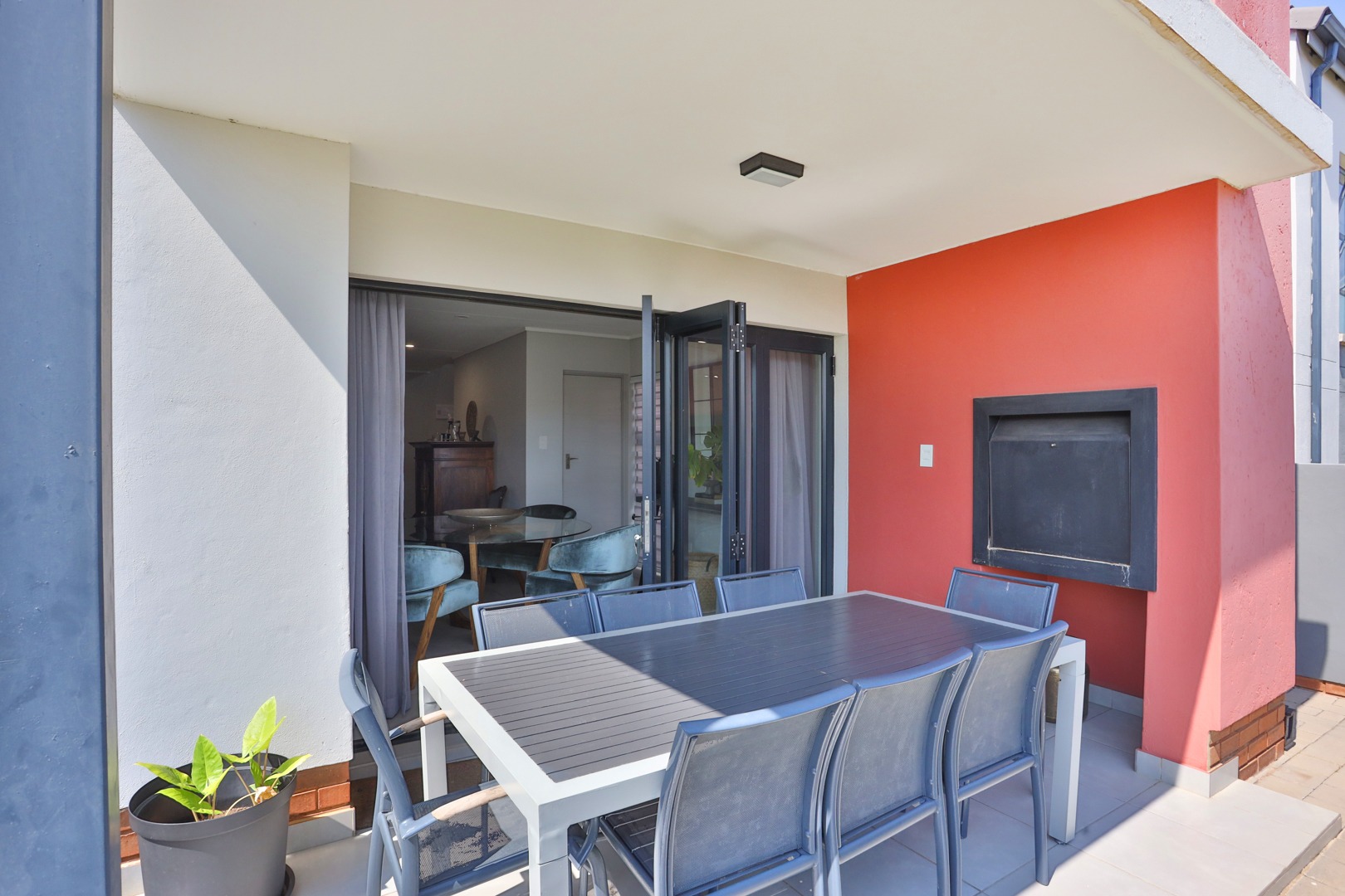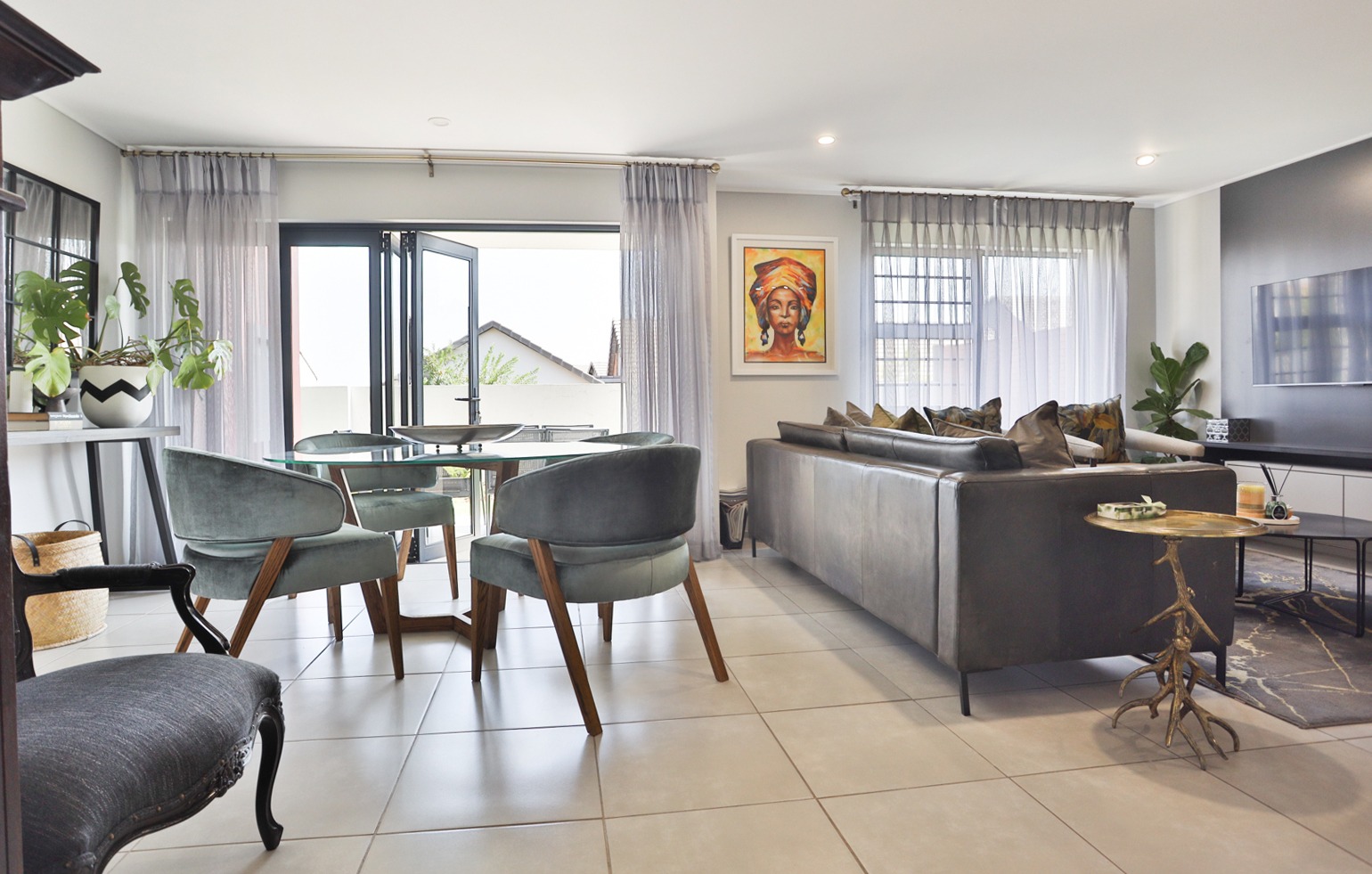 TV lounge opening onto a covered patio with built-in braai with perfect size garden