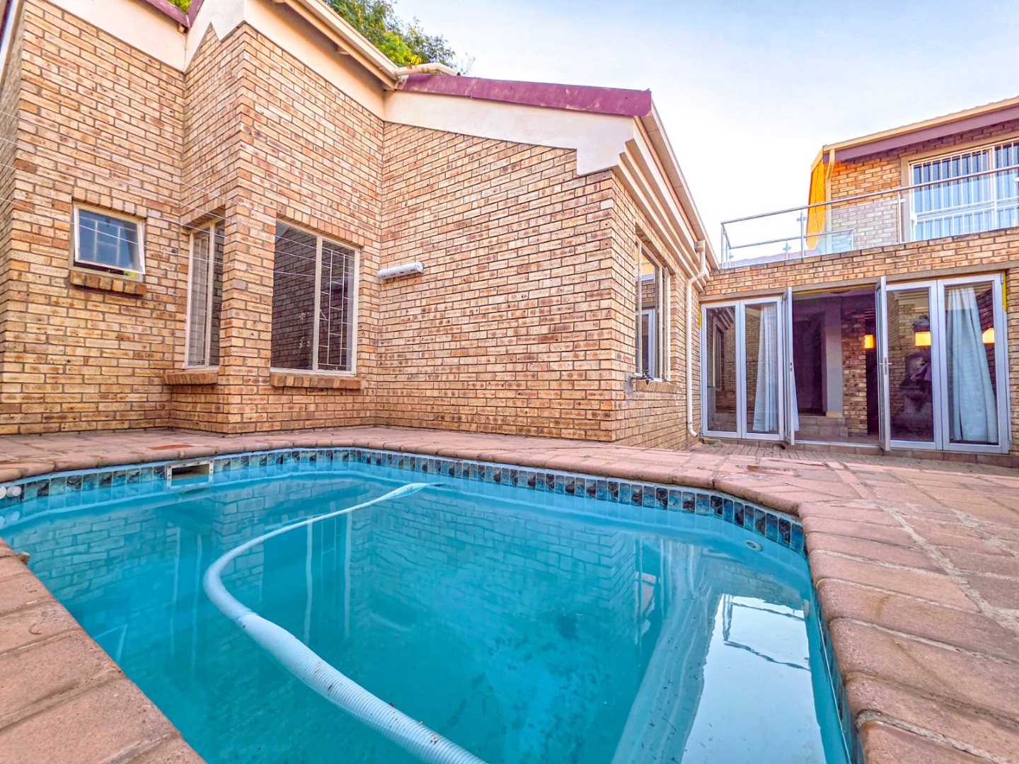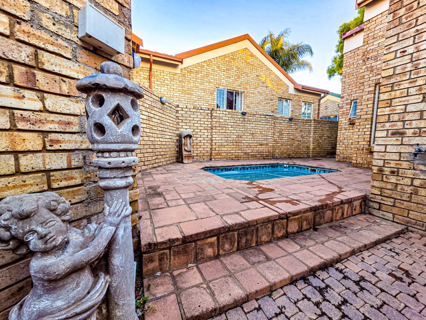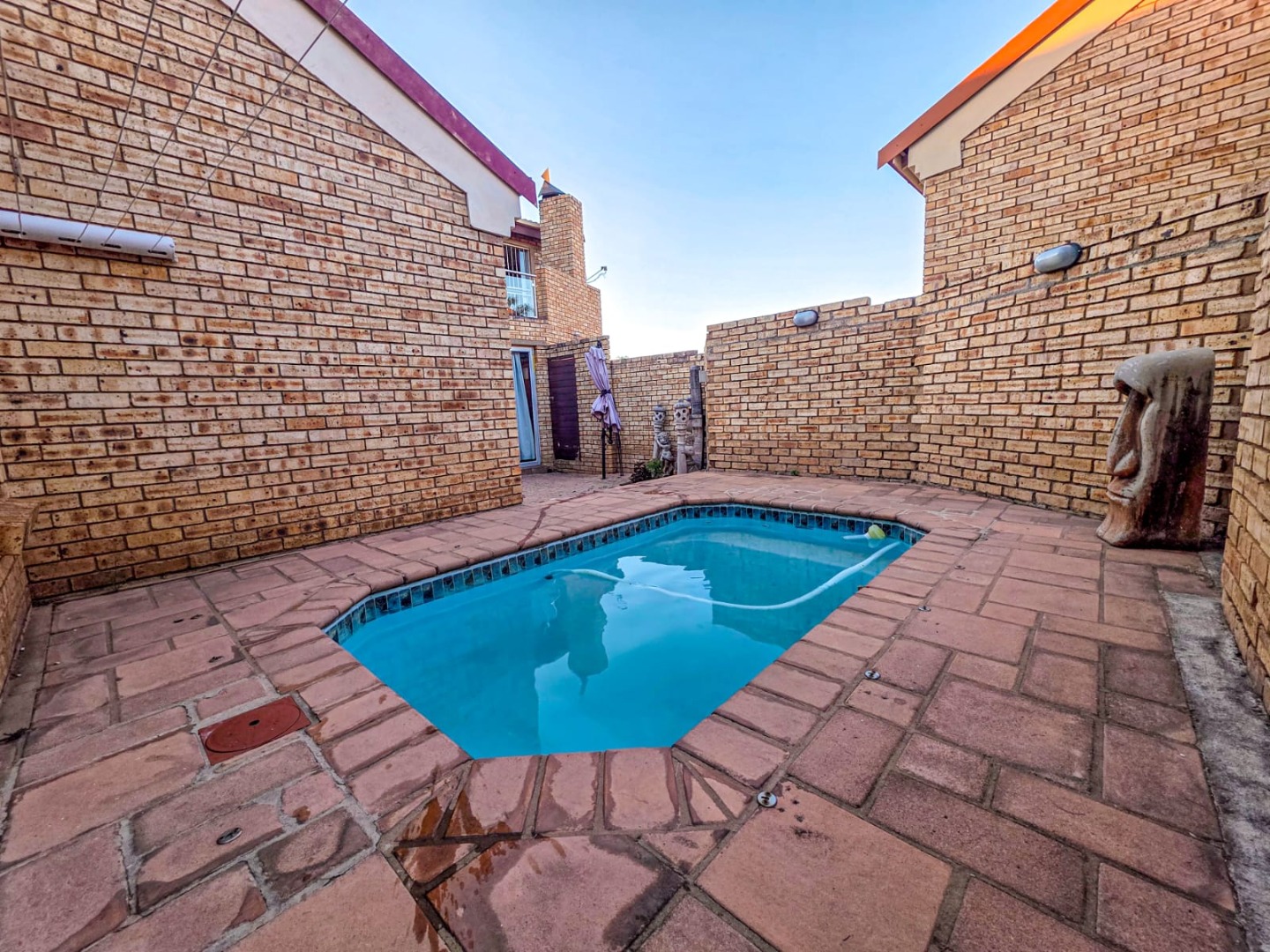 An enclosed braai room creates a cosy entertainment space and opens onto a small patio area with a splash pool – perfect for relaxed weekends at home.
