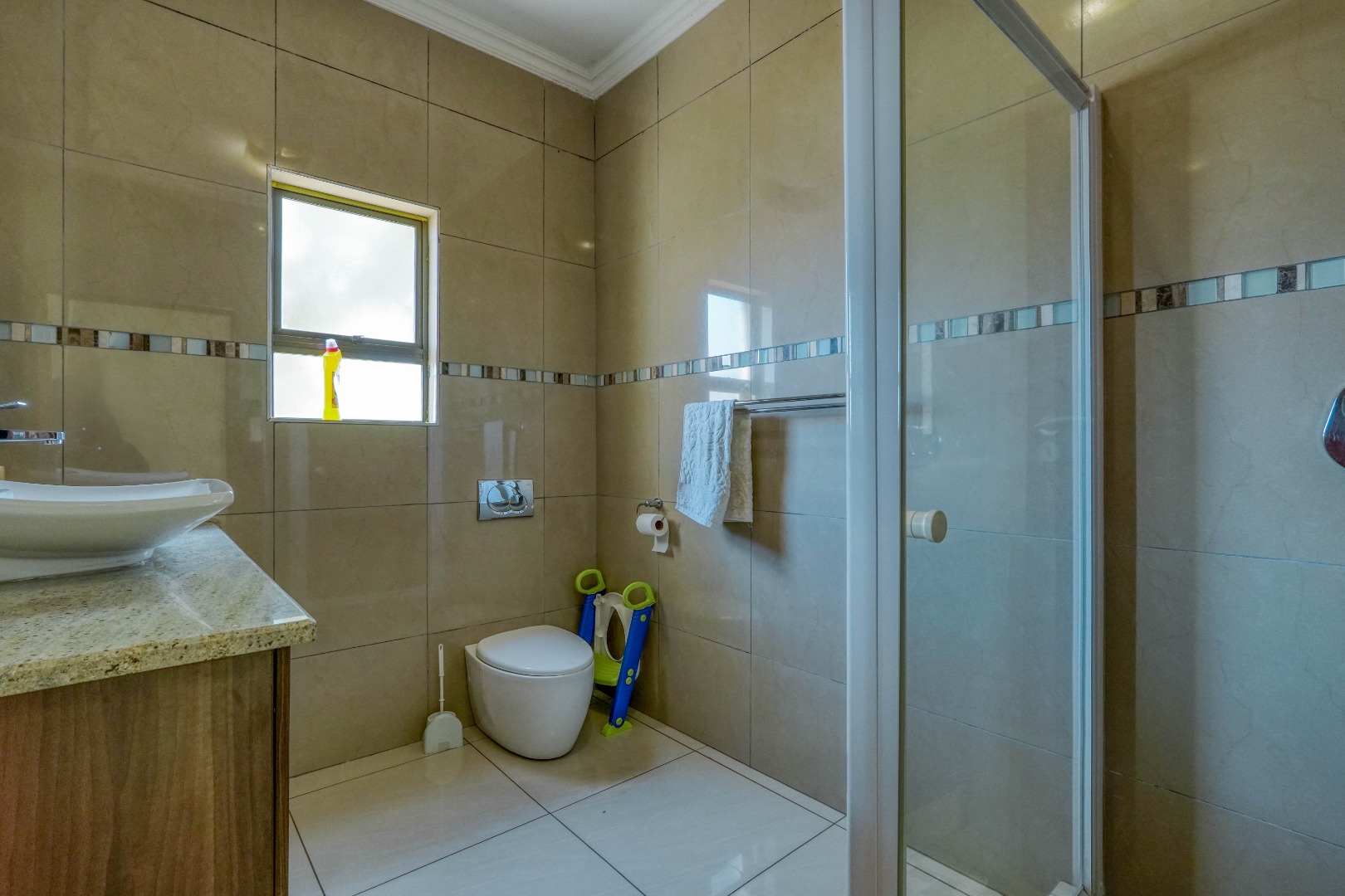 The home features four well-sized bedrooms, thoughtfully designed to offer privacy and comfort. The main bedroom stands out with its walk-in closet and a full en-suite bathroom, as well as private access to a balcony—perfect for enjoying peaceful mornings or evening sunsets. Two additional bathrooms serve the remaining bedrooms, ensuring convenience for family and guests.