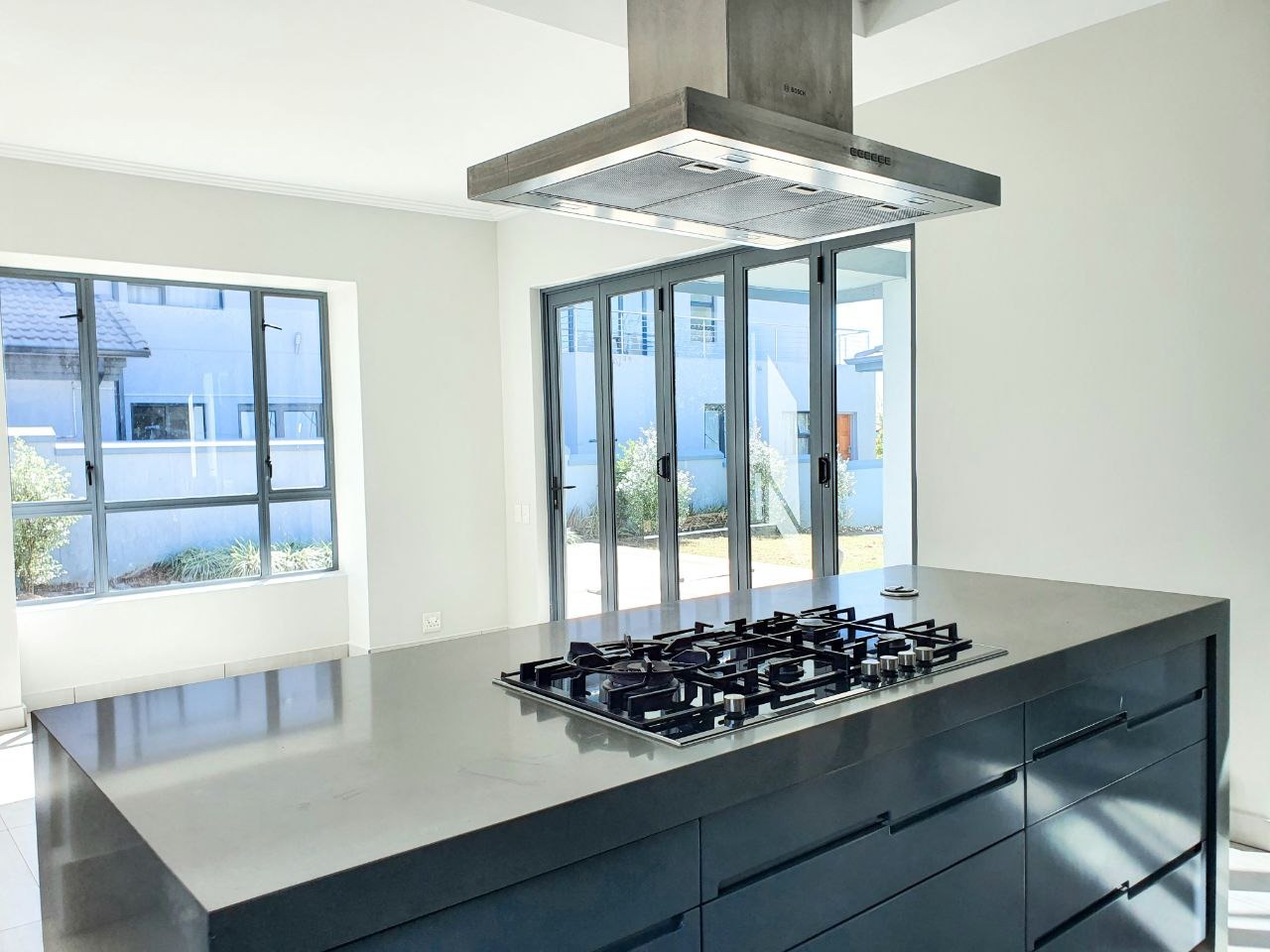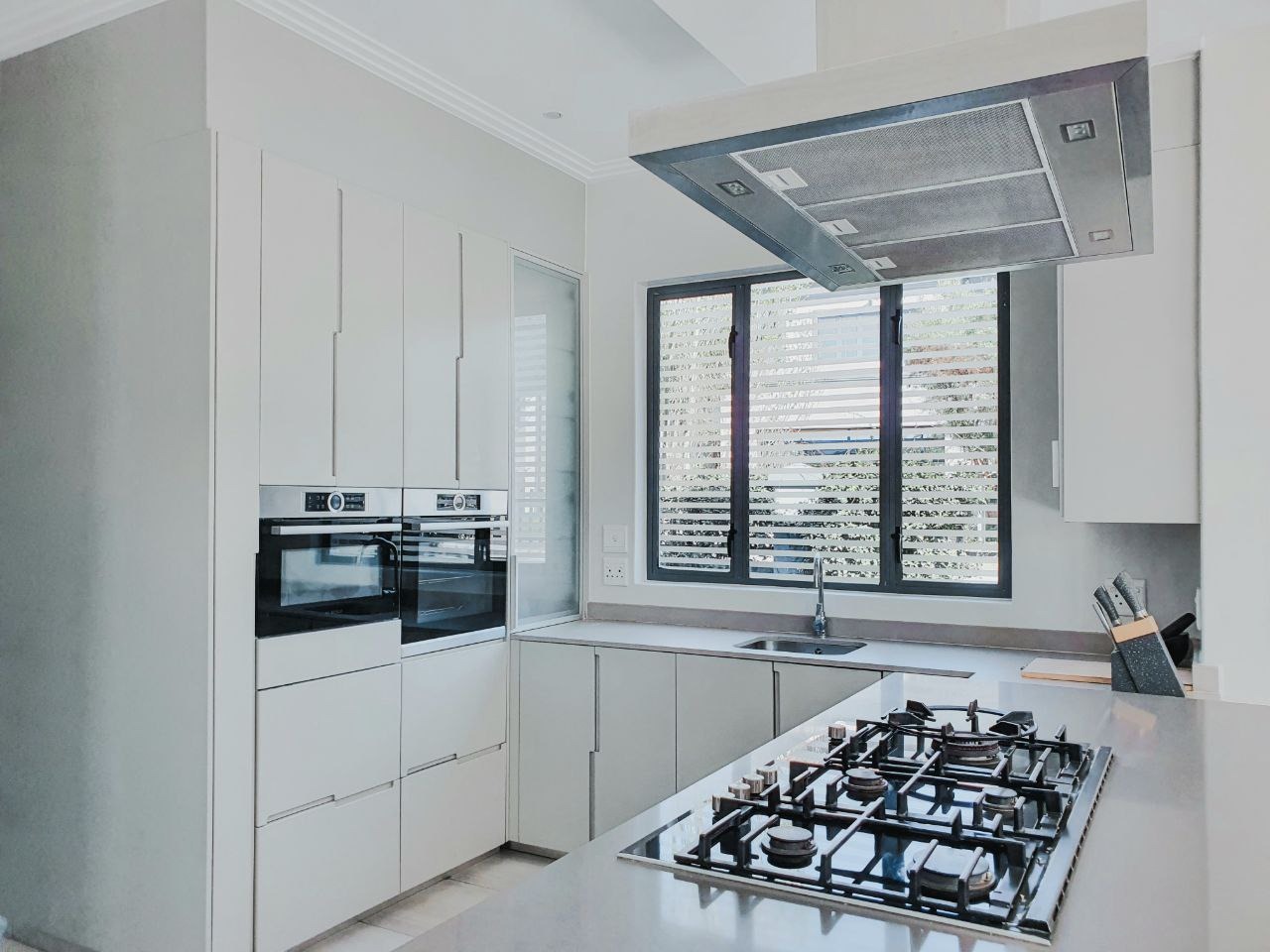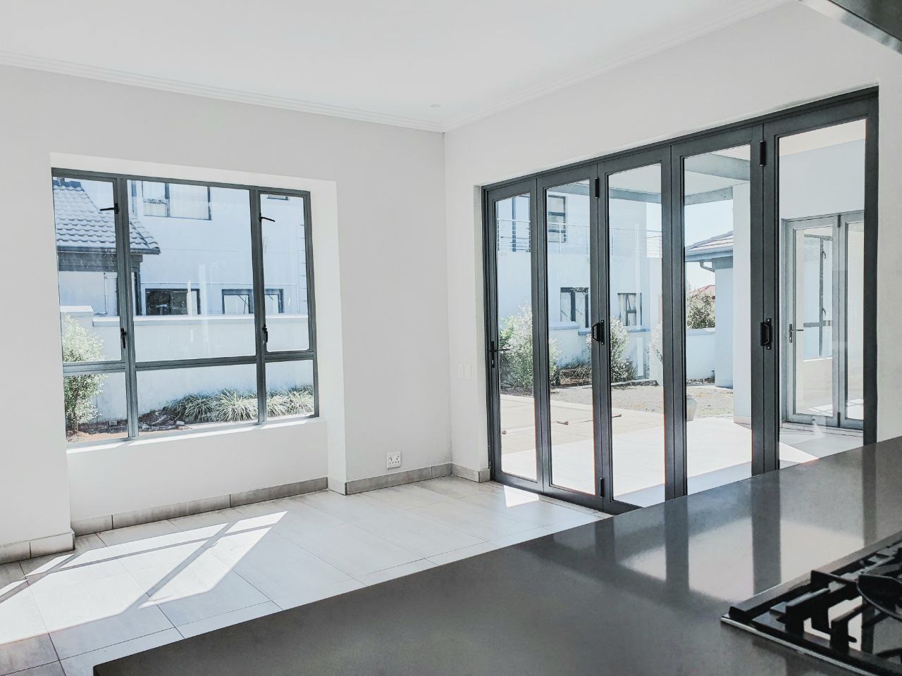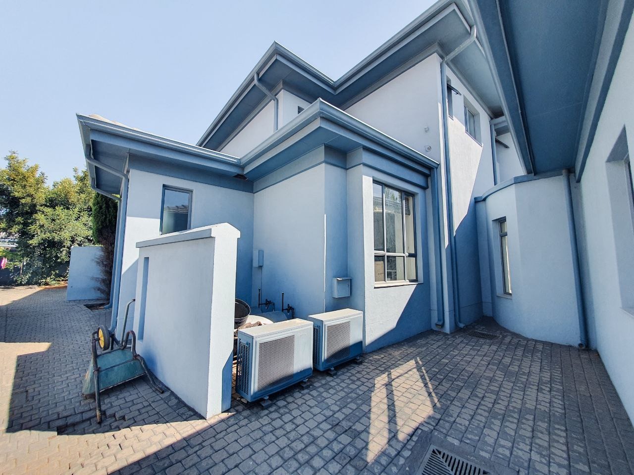 Nestled within the esteemed Blue Valley Golf Estate in Centurion, South Africa, this modern residence offers an exceptional lifestyle. The property immediately impresses with its contemporary architectural design, featuring a light blue/grey exterior, striking stone cladding accents, and a prominent central glass entrance. Paved driveways lead to two double garages, providing ample parking and storage for four vehicles, enhancing its curb appeal. Step inside to discover a bright and spacious interior, characterized by an open-plan layout and modern finishes. The elegant entryway boasts light-colored tiled flooring, stone steps, and a sleek glass and stainless steel railing, setting a sophisticated tone. The home features three distinct lounges and a dedicated dining room, offering versatile spaces for relaxation and entertaining. Large windows throughout ensure abundant natural light, creating an inviting atmosphere. This family-friendly home comprises four generously sized bedrooms, each benefiting from its own en-suite bathroom, ensuring privacy and comfort for all residents. A convenient guest toilet is also available. Practical amenities include a dedicated study, staff quarters, and additional storage, catering to diverse household needs. Outside, the property features a well-maintained garden with an irrigation system and a refreshing swimming pool, perfect for outdoor enjoyment. Sustainability and security are paramount, with solar panels, a battery inverter, and a gas geyser contributing to energy efficiency. A borehole ensures water resilience. Residents benefit from 24-hour security within this secure golf estate, which also offers access to a golf course, clubhouse, and tennis courts. Fibre connectivity is installed, providing high-speed internet. Key Features: * 4 Bedrooms, 4.5 Bathrooms (4 En-suite) * 4 Garages, Paved Driveways * 3 Lounges, 1 Dining Room, Open Plan Design * Swimming Pool, Irrigated Garden * Solar Panels, Battery Inverter, Gas Geyser, Borehole * Staff Quarters, Study, Storage * 24-Hour Security, Access Gate, Security Gate * Fibre Connectivity, Pets Allowed * Located in Blue Valley Golf Estate with Golf Course, Clubhouse, Tennis Court