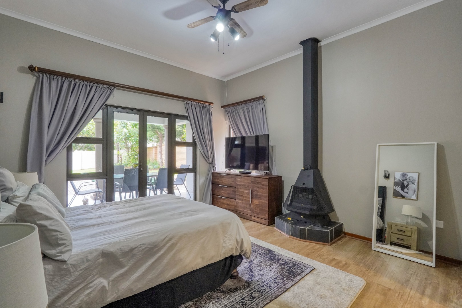 Energy efficiency is a standout feature of the home. It includes an 8.8kW Sunsynk inverter with four 5.1kW batteries, fourteen 545W solar panels, and a 300 liter solar geyser with a geyser wise timer backed up by a gas geyser. The home also features a fireplace in the lounge, a gas fireplace in the master bedroom, and another fireplace upstairs, creating warm and inviting spaces throughout.
