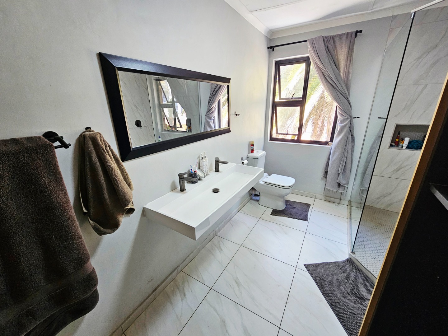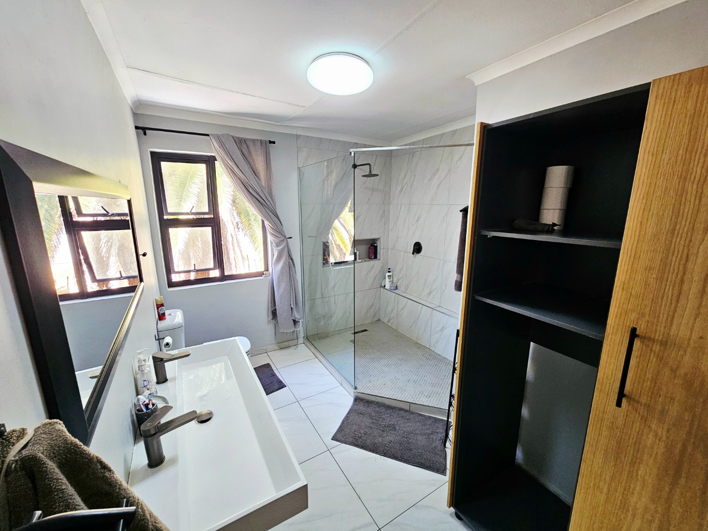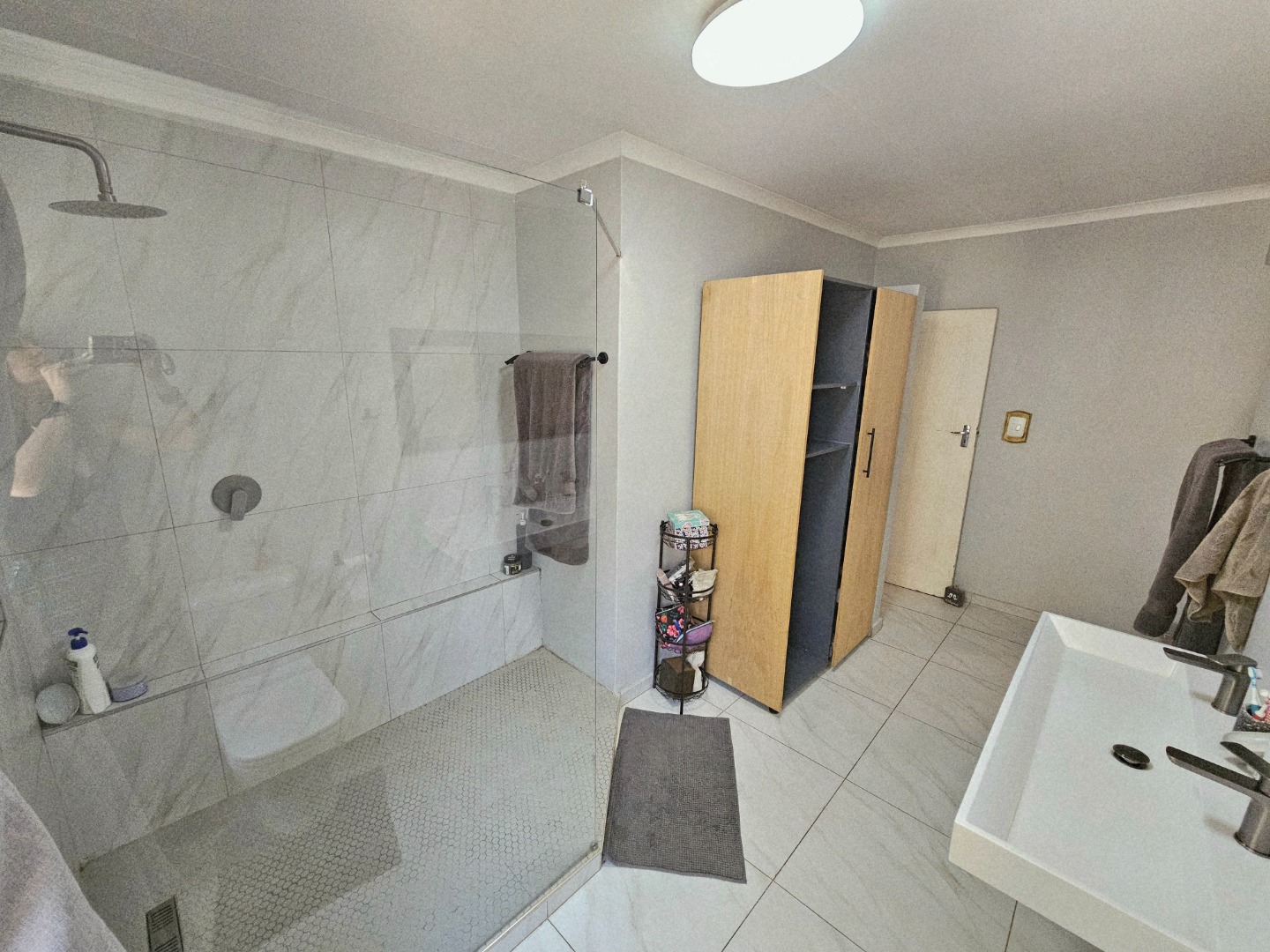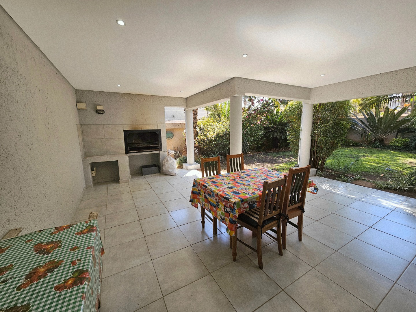 Outside, you’ll find undercover parking and a massive patio that walks out from the living area that is designed for entertaining. The built-in braai overlooks a stunning garden, providing the perfect backdrop for family braais, get-togethers, and relaxed evenings with friends.