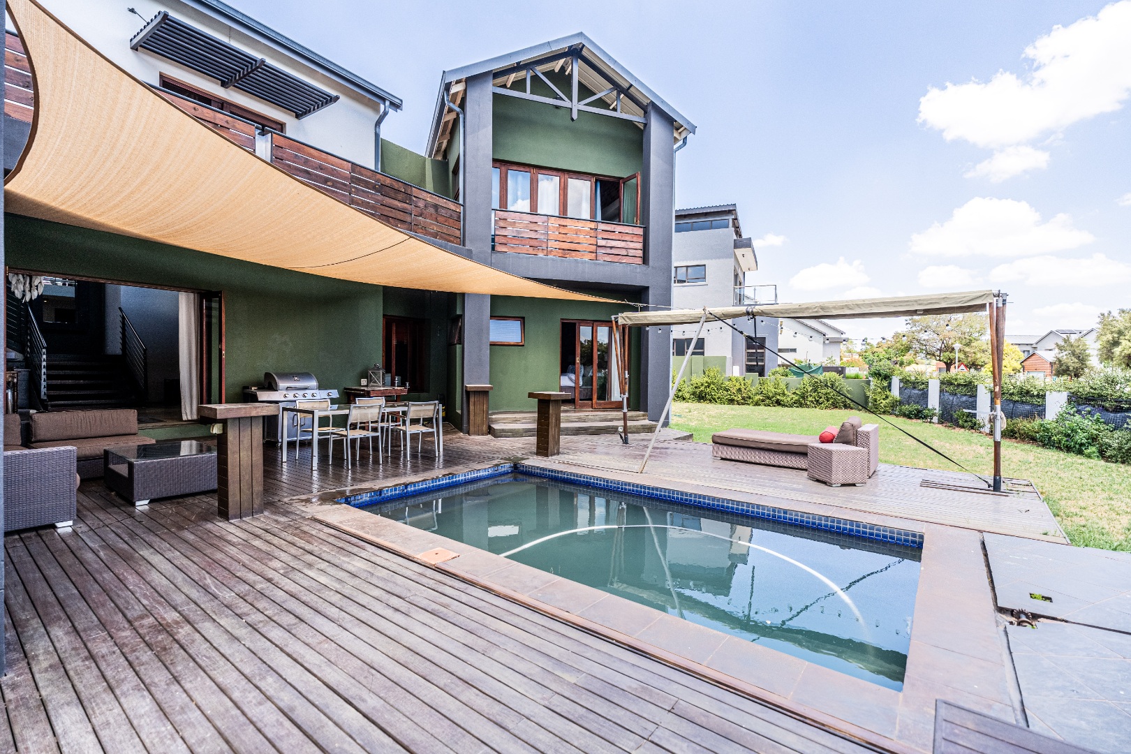 The spacious and inviting design allows for effortless flow between the living, dining, and kitchen areas, making it ideal for both entertaining and relaxed family living. The home's retro industrial design is evident throughout, with exposed brick, steel accents, and modern finishes that create an edgy yet comfortable atmosphere. The expansive garden area is an entertainer's dream, with a large deck leading directly to the sparkling swimming pool. The lush surroundings create a peaceful escape, perfect for enjoying sunny days with family and friends. This home is not just a property; it's a statement. Whether you're lounging by the pool, enjoying the open-plan space, or retreating to your private sanctuary, this home is designed to meet the needs of modern, luxury living.