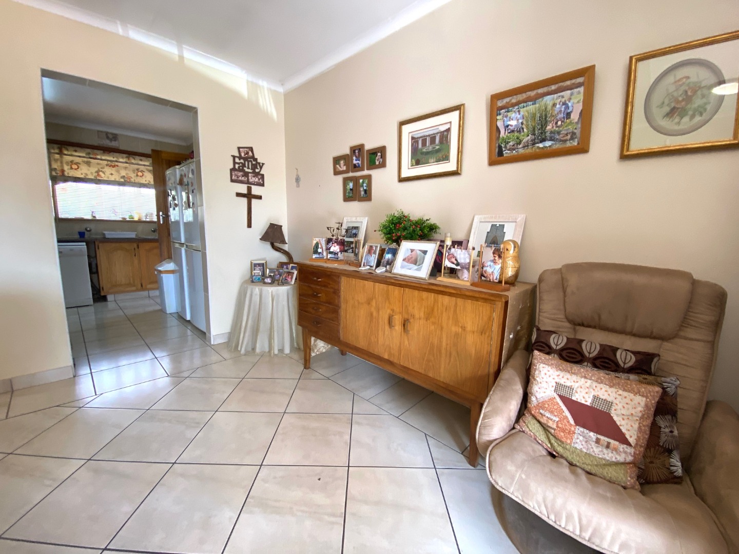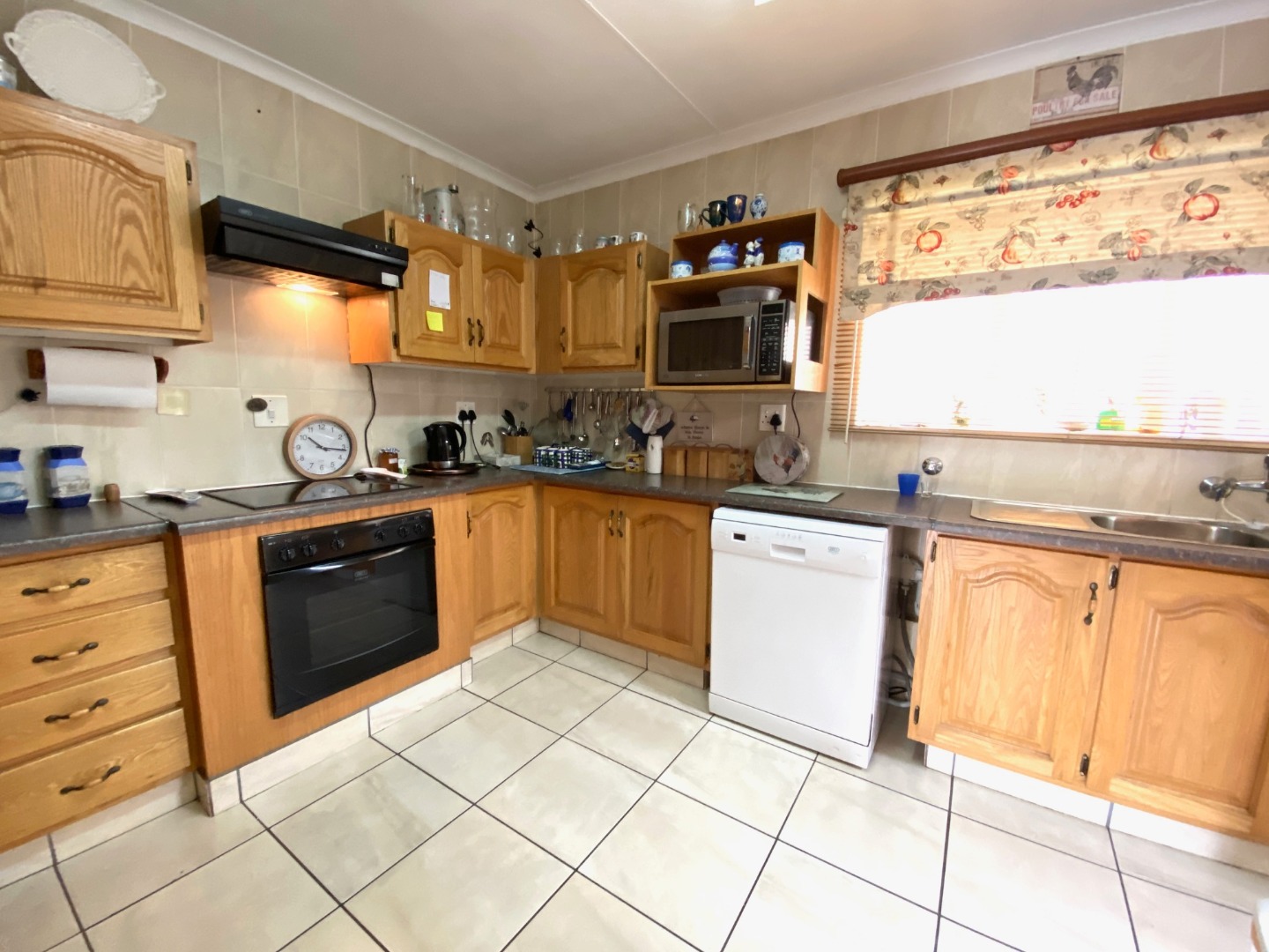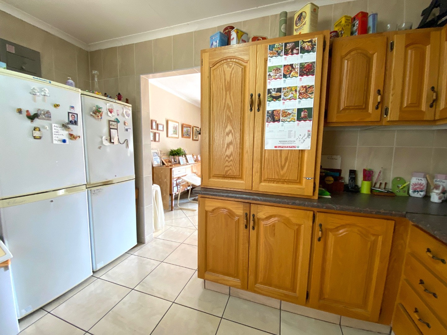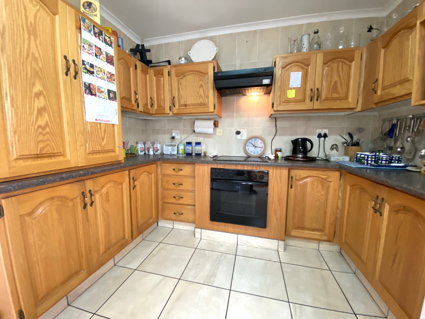 - Neat, fitted kitchen with ample cupboards and space for double fridge and one under counter appliance
