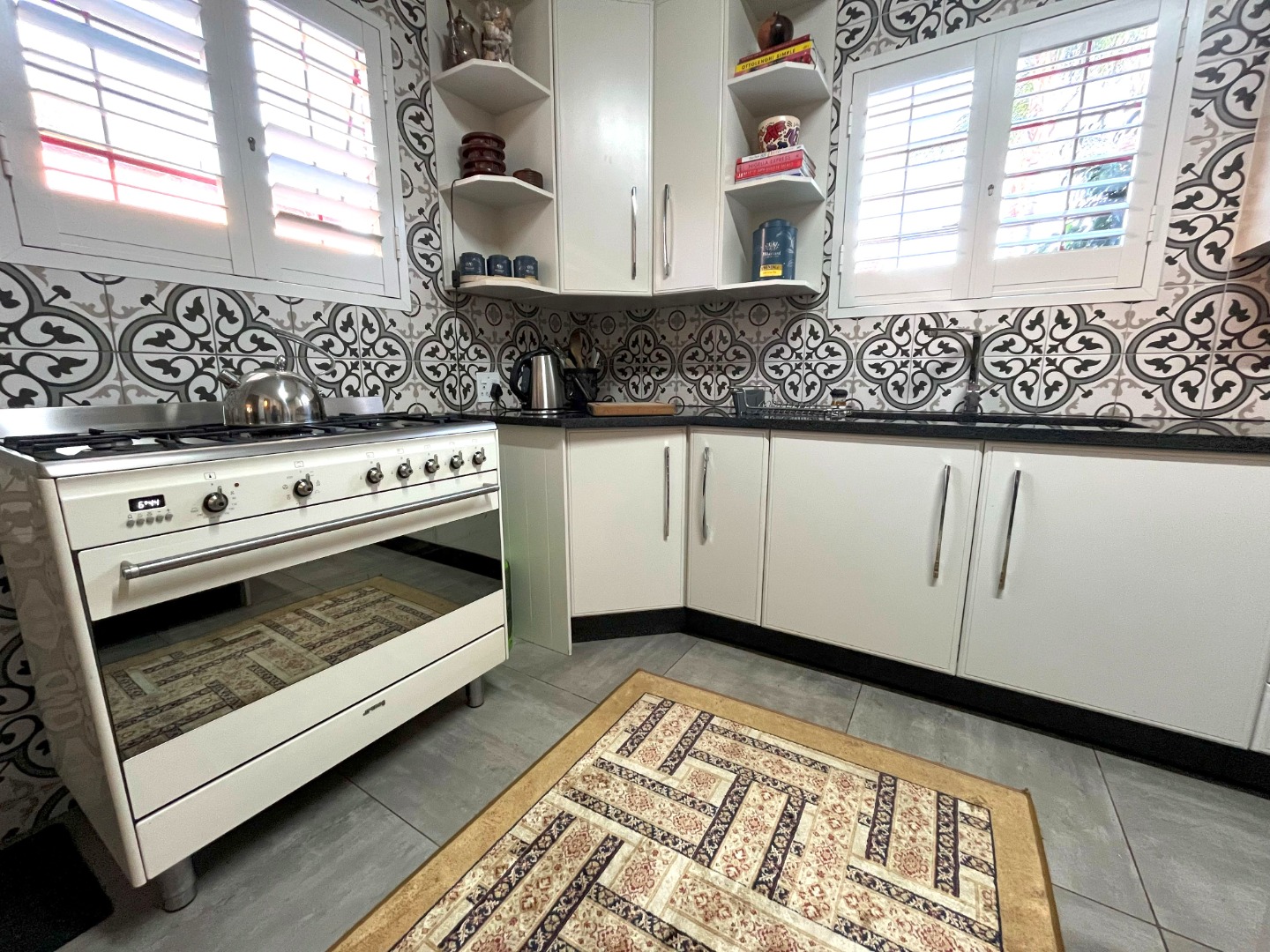 Designer Kitchen – the heart of the home – boasting a one-of-a-kind SMEG freestanding gas stove with electric oven, ample cupboard & counter space, and appliance allocations