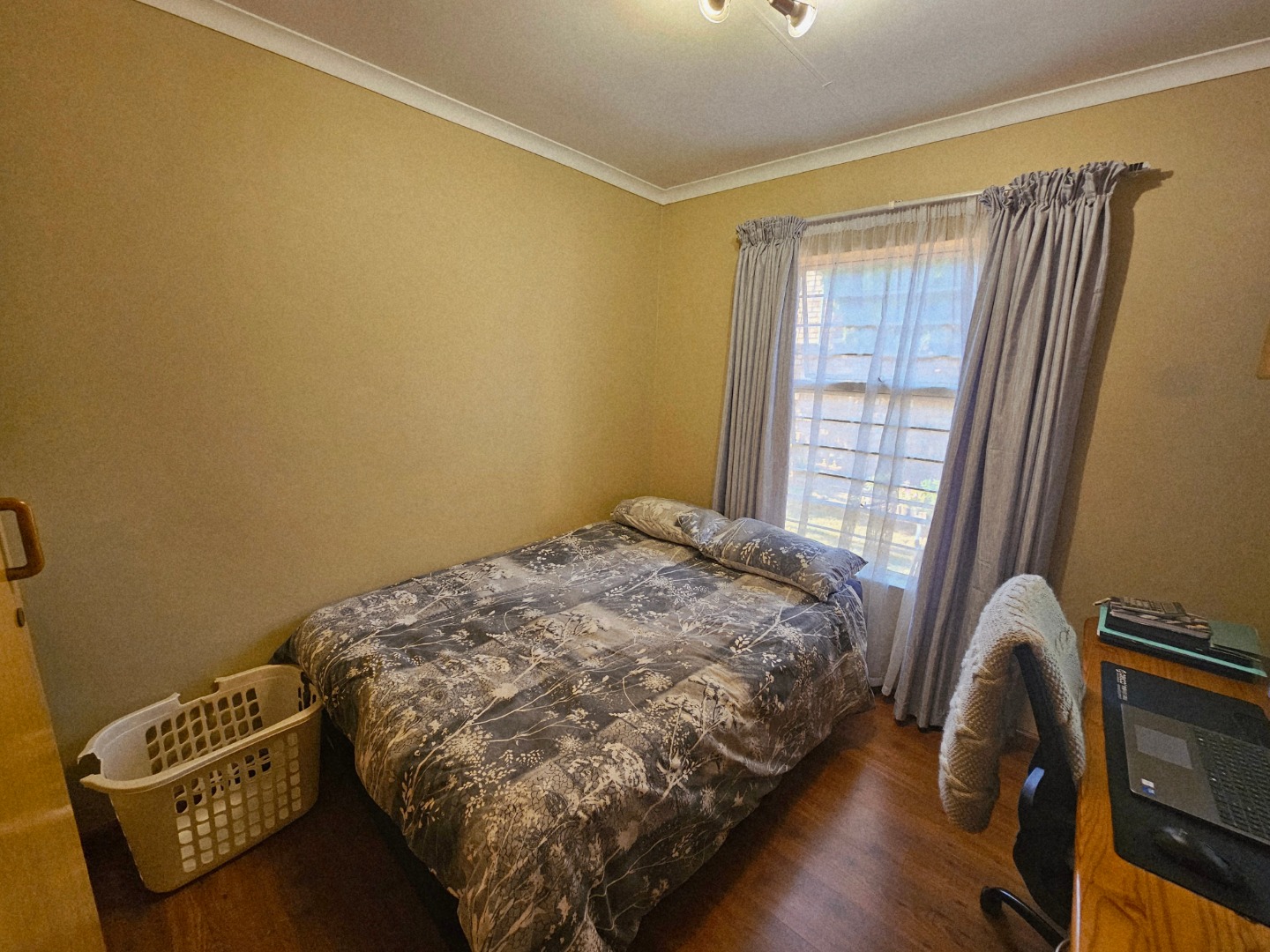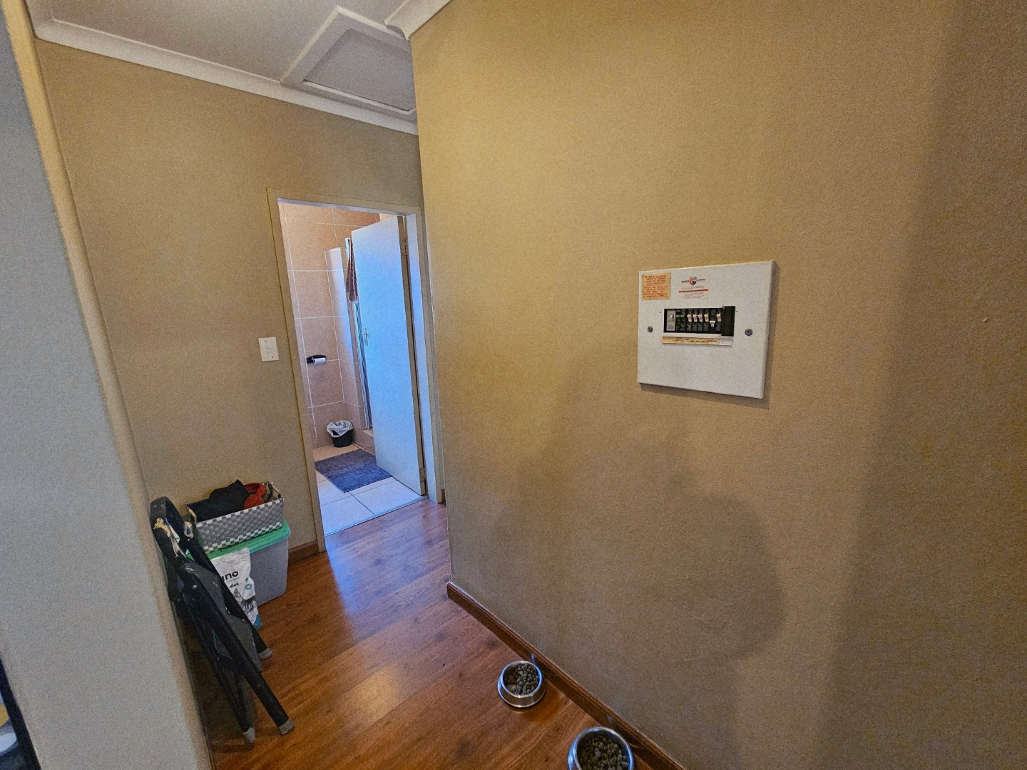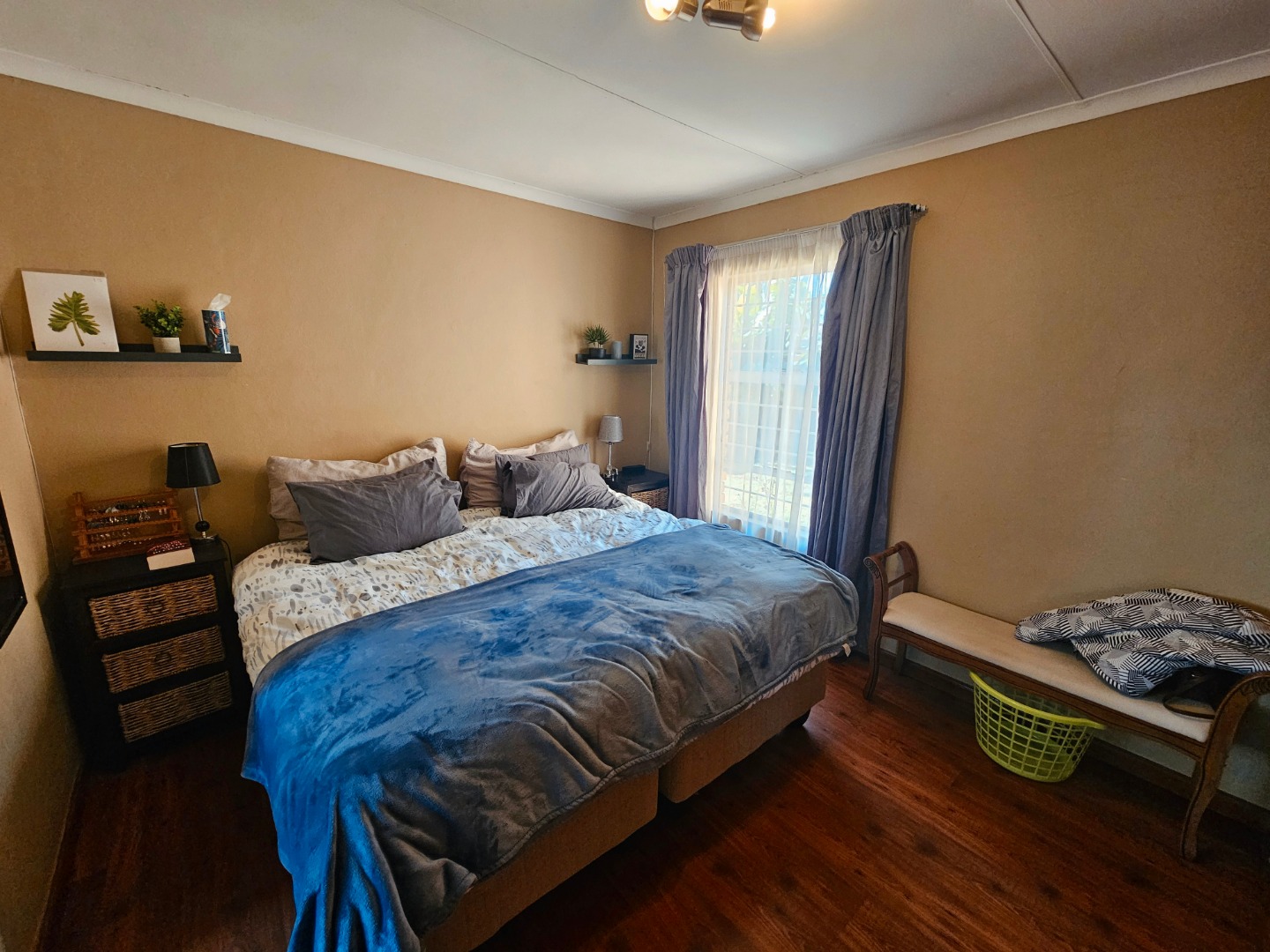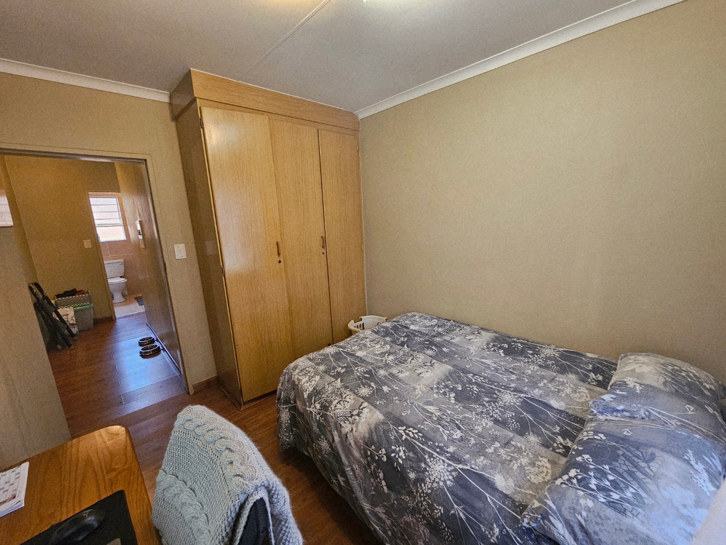 Lovely home with 2 bedrooms both with wooden floors. The main bedroom has an on-suite bath room. Ample cupboard space. The second bedroom is down the small hall and then there is a 2nd bathroom.