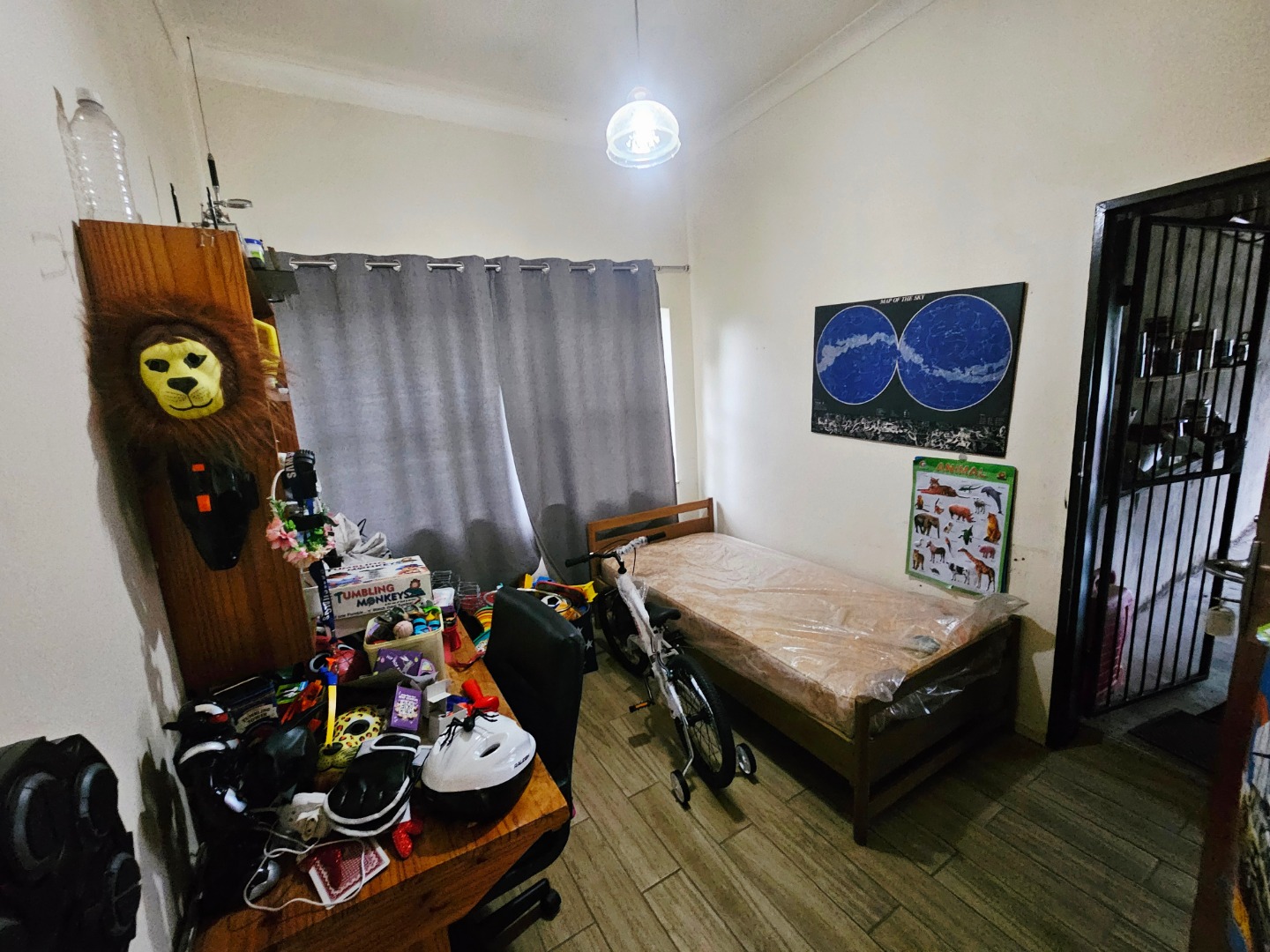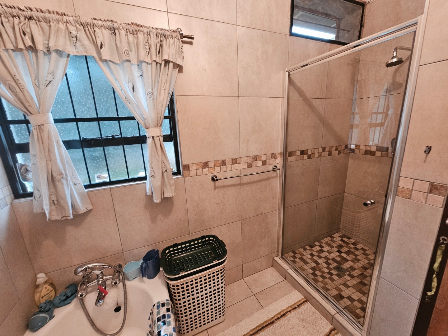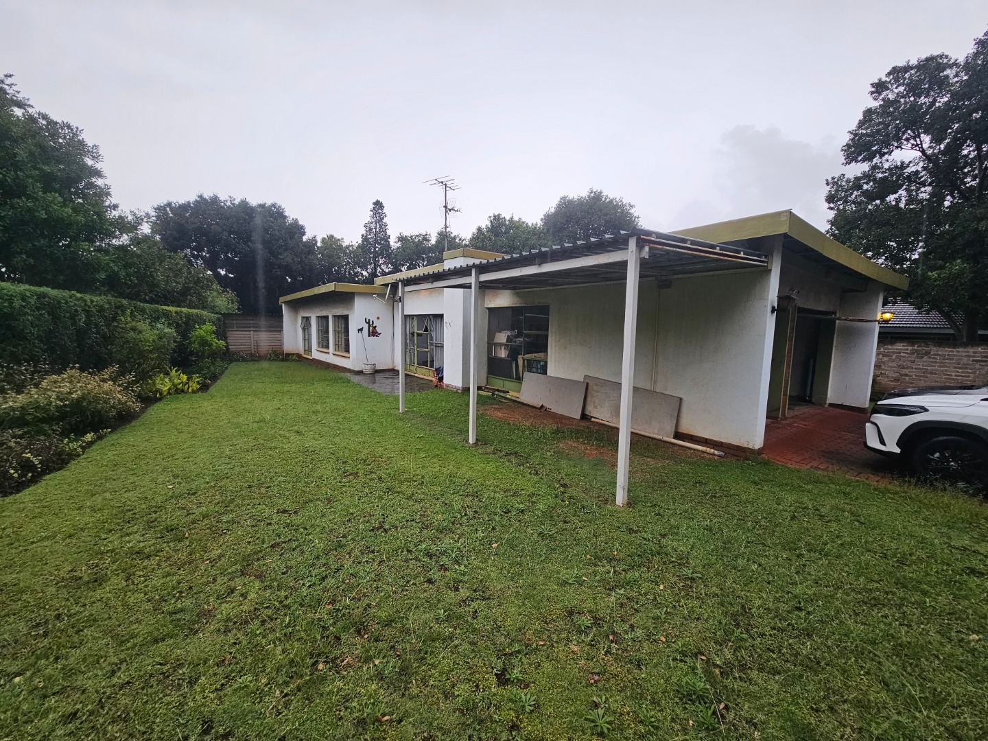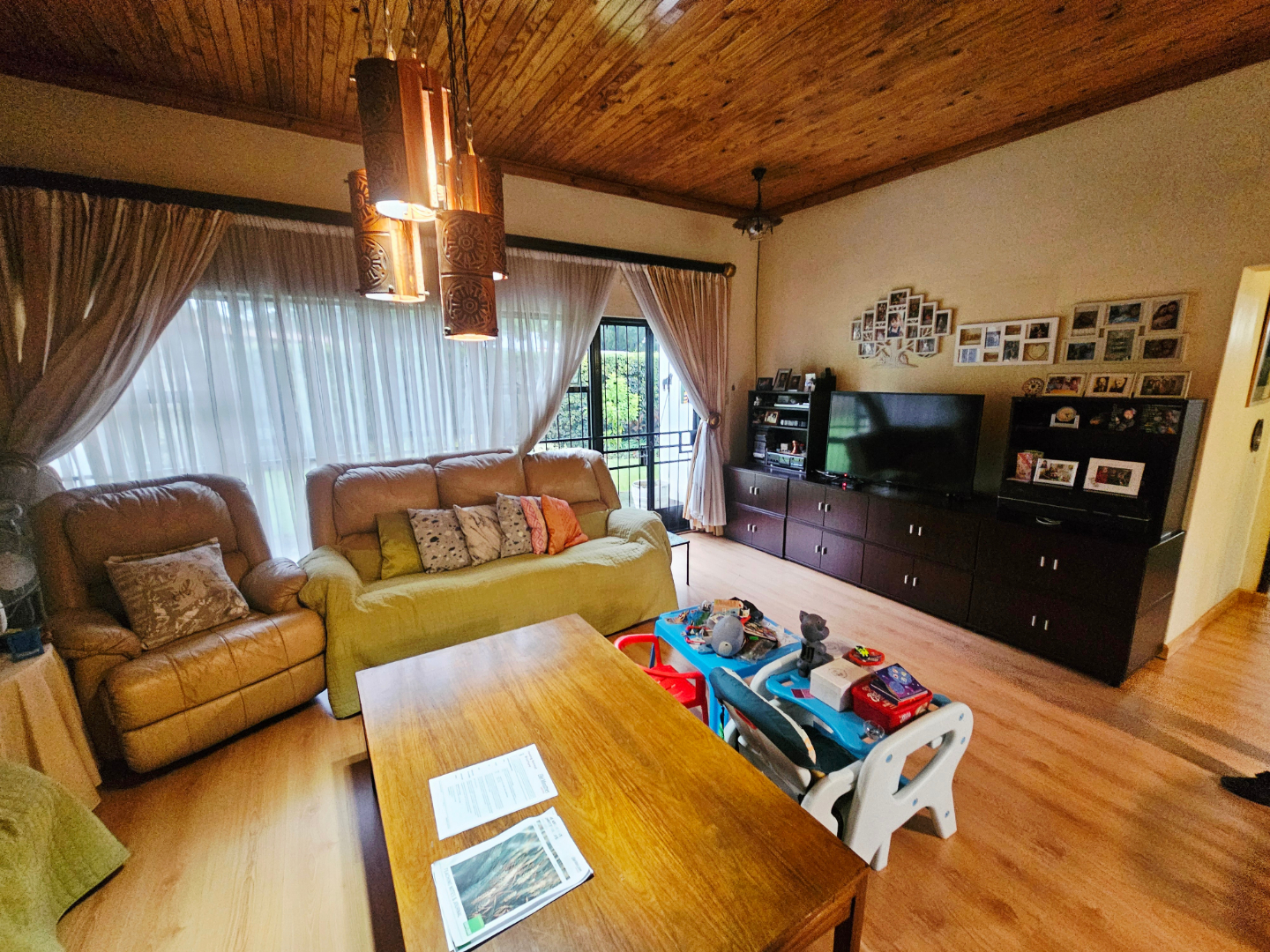 A dedicated study offers flexibility, easily repurposed as a fourth bedroom if needed. Parking is plentiful with a double garage and ample space outside, all secured behind automated gates. Step outside to discover practical extras—a store room and an outdoor toilet, plus a large Lapa shaded by the garden and a generously sized pool, perfect for relaxation and gatherings.