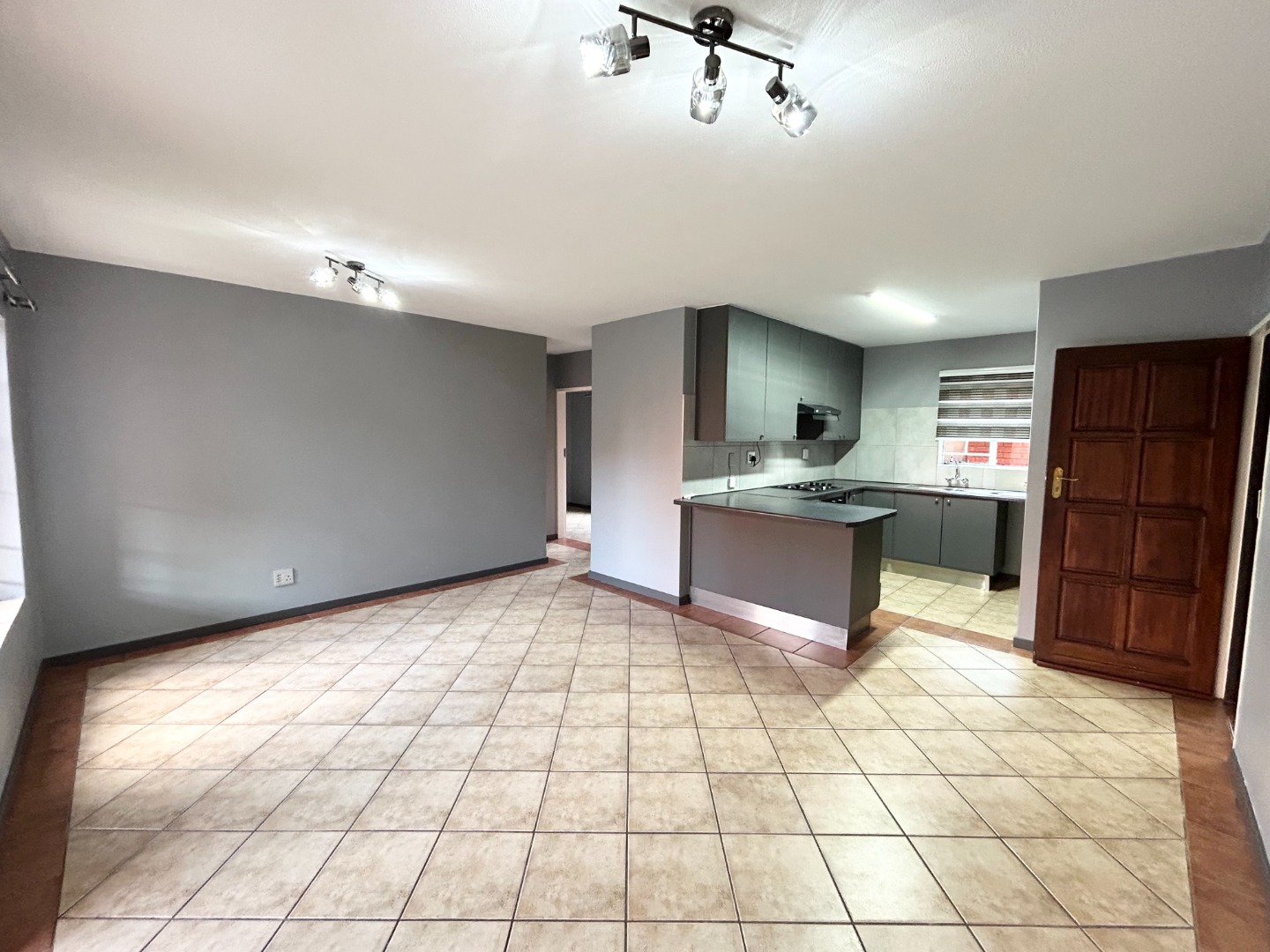 This modern 2-bedroom, 1-bathroom apartment offers comfortable living within a secure complex in Eco Park Estate, Centurion. Spanning 83 square metres, the residence features an inviting open-plan layout, seamlessly connecting the living area with a contemporary kitchen. The kitchen is well-appointed with sleek dark grey cabinetry, dark countertops, new electric oven and stove including a extractor fan , and a convenient breakfast bar, ideal for casual dining or entertaining. Throughout the apartment, easy-to-maintain tiled flooring and neutral grey walls create a versatile canvas for personal style.