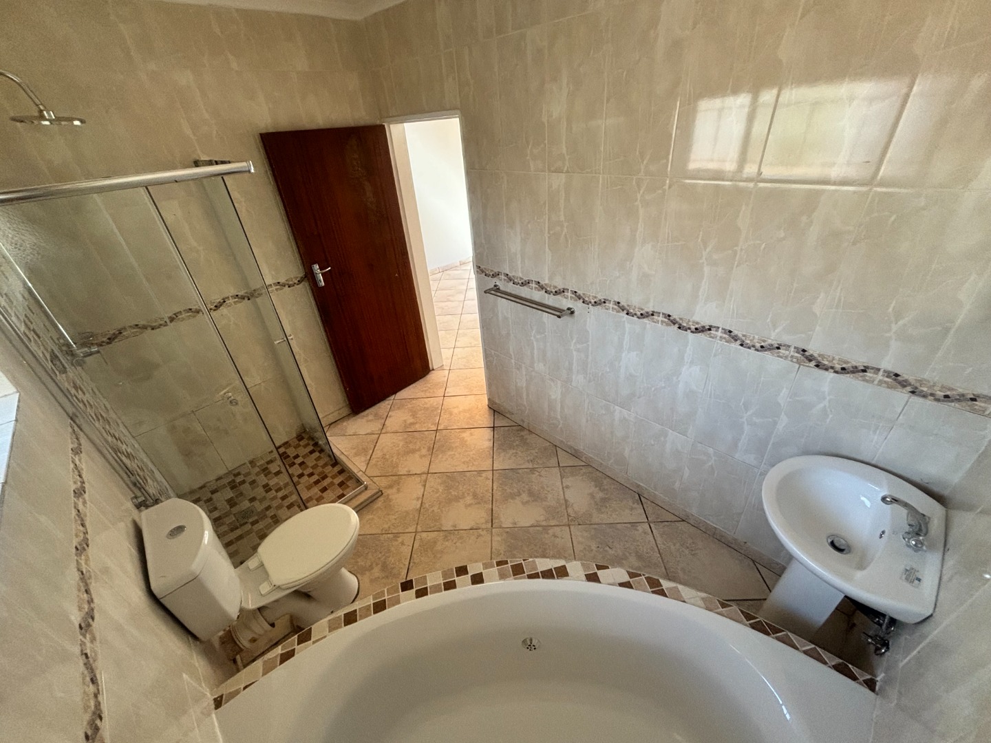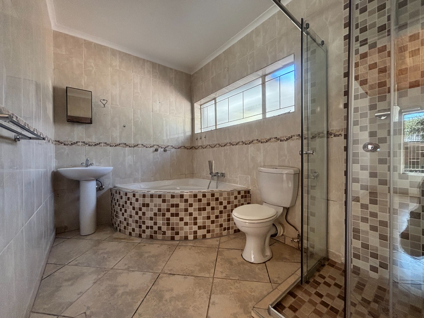 The entire house is elegantly tiled throughout, and security is paramount with gated access to the bedrooms and both entrances of the property. Experience the epitome of family living in this exceptional Eldoraigne home. Key Features include: Secure gated community, Large garden, Double garage and ample parking space, Separate laundry and domestic quarters, 3 bedrooms of which the Main bedroom offers an en-suite and walk-in closet, Guest bathroom and separate toilet, Spacious kitchen with induction stove, Dining room and TV room, Additional versatile living spaces, Fully tiled floors and Security gates for bedrooms and entrances.
