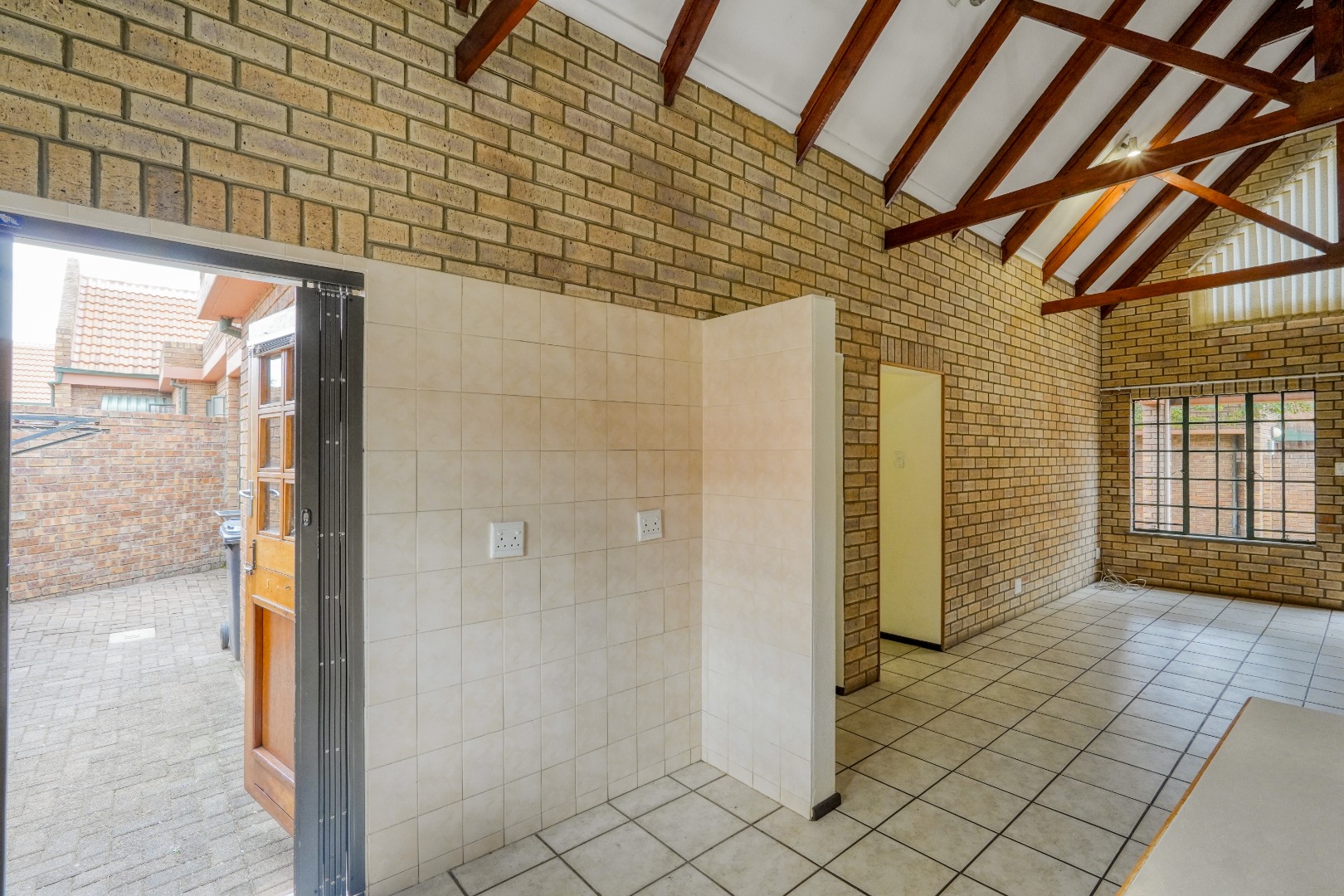 This well kept three bedroom townhouse is set in a secure complex in Eldoraigne and offers a comfortable, modern layout suited to easy everyday living. The heart of the home is the open plan kitchen, dining area, and lounge, creating a spacious flow that makes the living areas feel light and connected. From the lounge, a doorway opens onto a patio with a built in braai, leading out to a neat garden that’s ideal for relaxed outdoor time or entertaining friends and family.