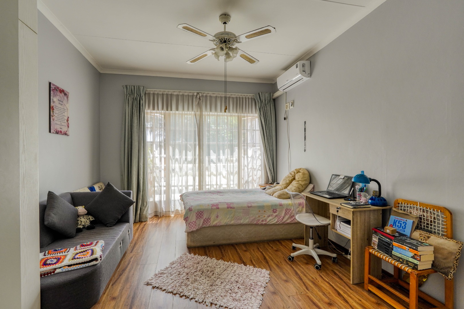 The ground floor welcomes you into a cosy lounge that flows naturally into an open plan kitchen and dining area. This layout creates a connected living space where cooking, dining, and relaxing come together with ease. The entertainment and braai area extends the living space outdoors, overlooking a small, manageable garden that is perfect for relaxed weekends and easy upkeep.