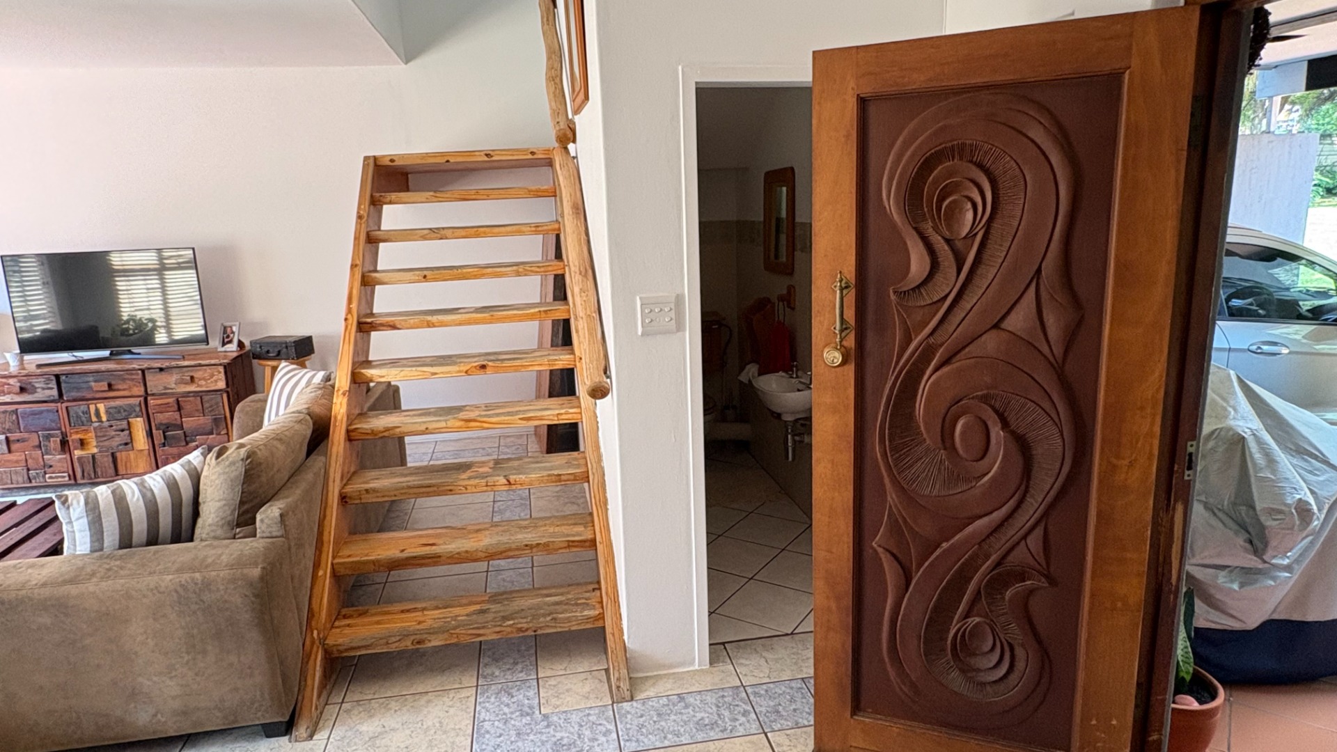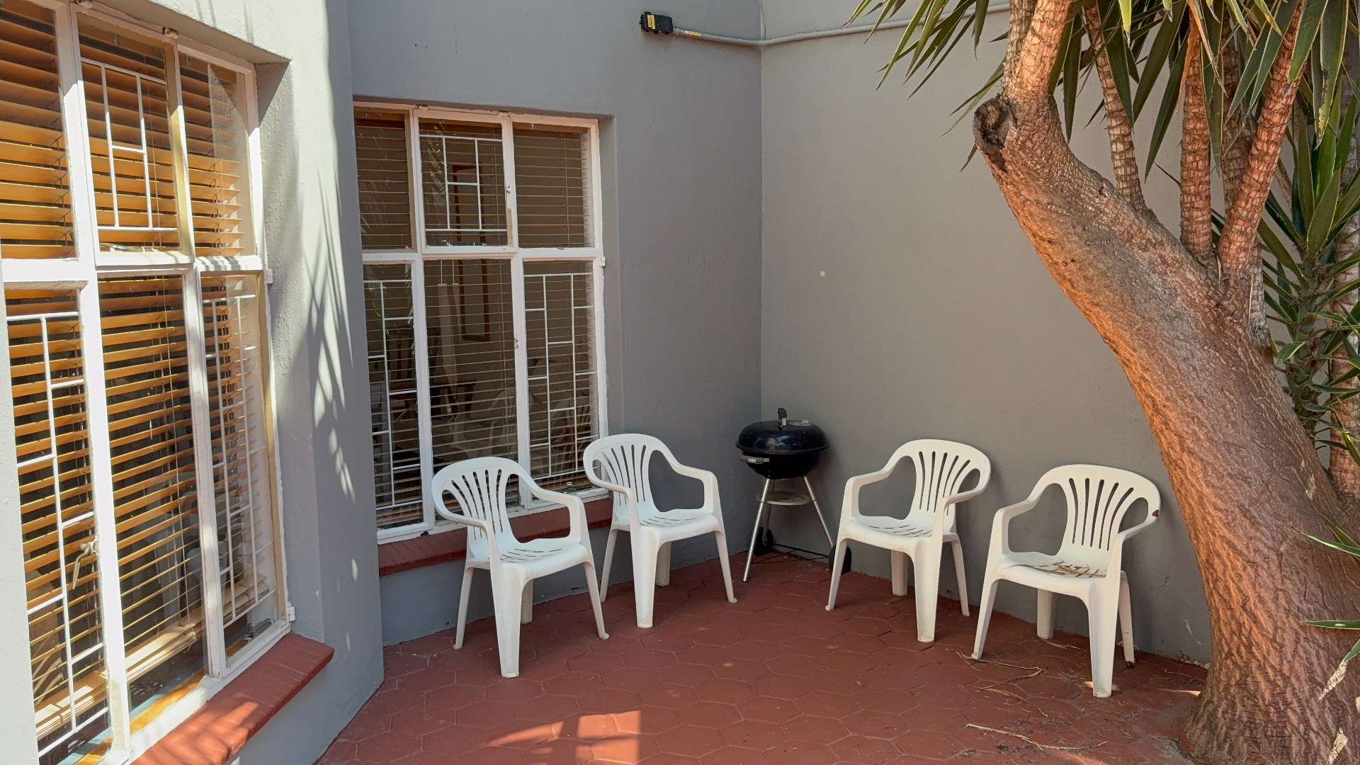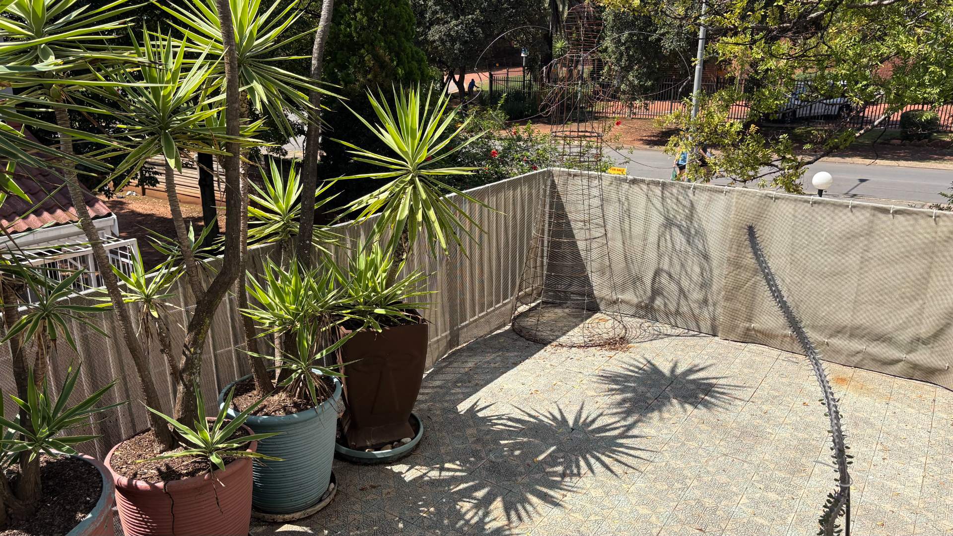 Outdoor living is catered for with a private balcony and a patio, offering ideal spots for unwinding. The property also includes a garden and paving. Practical amenities such as a single garage, additional parking, and storage facilities are provided. This pet-friendly unit is equipped with modern security features including an alarm system, electric fencing, an access gate, burglar bars, and a security gate, ensuring peace of mind.