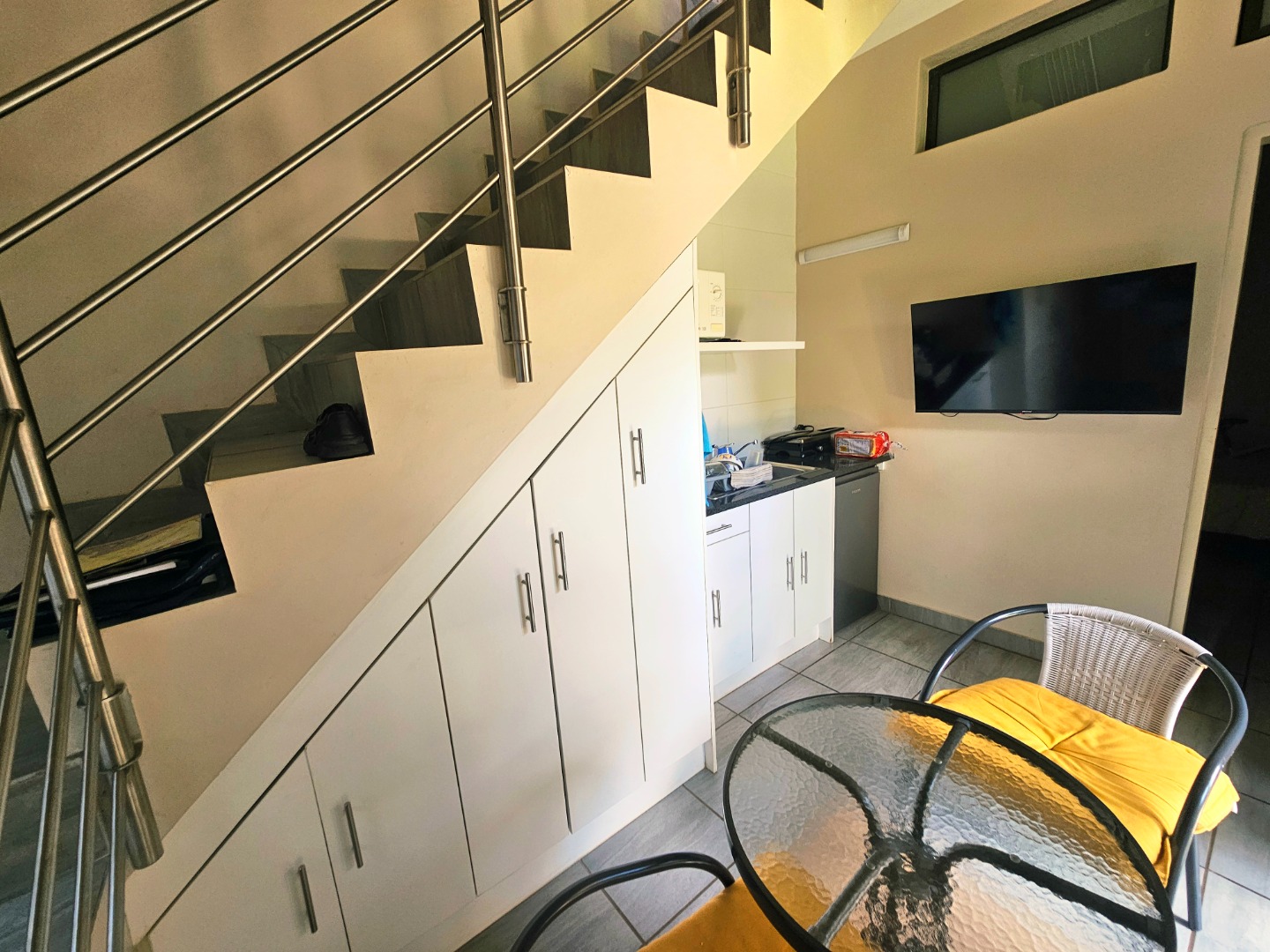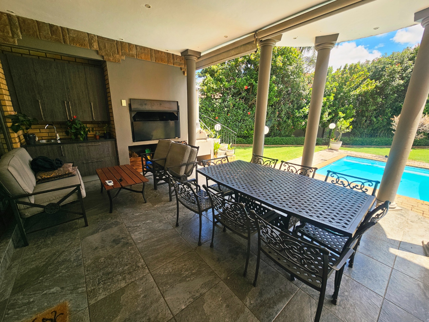 - There is a seperate access to the entertainment area from the upstairs balcony, so you don't have to go through the house while swimming and having social braais and parties.