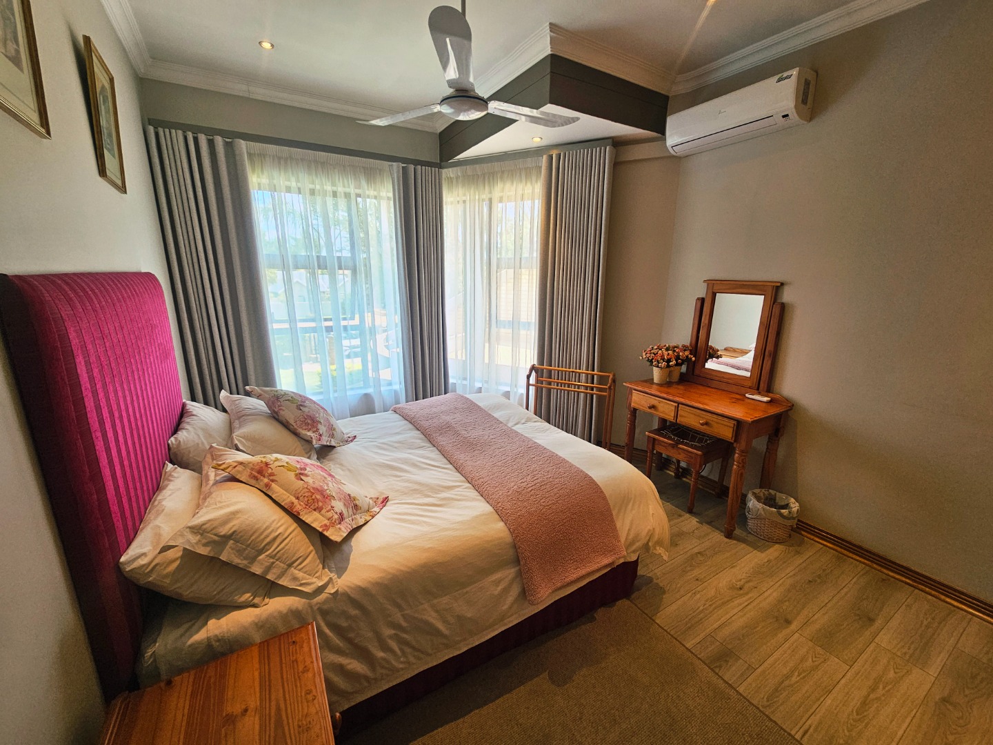 - Four well-sized bedrooms, each thoughtfully laid out for comfort and privacy; the main suite offers a tranquil retreat after busy days, with walk in closet. It also has a balcony that services one of the other bedrooms.