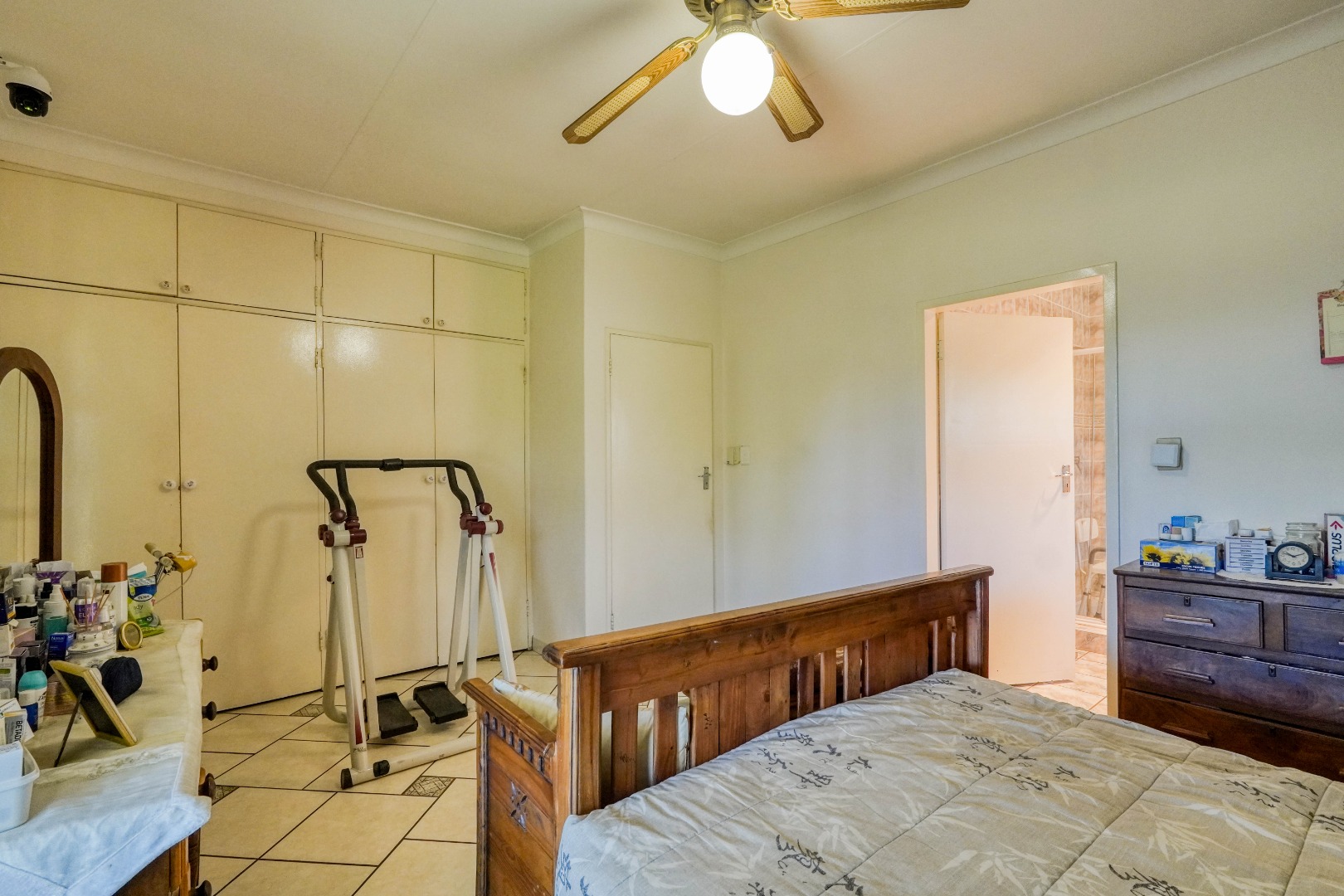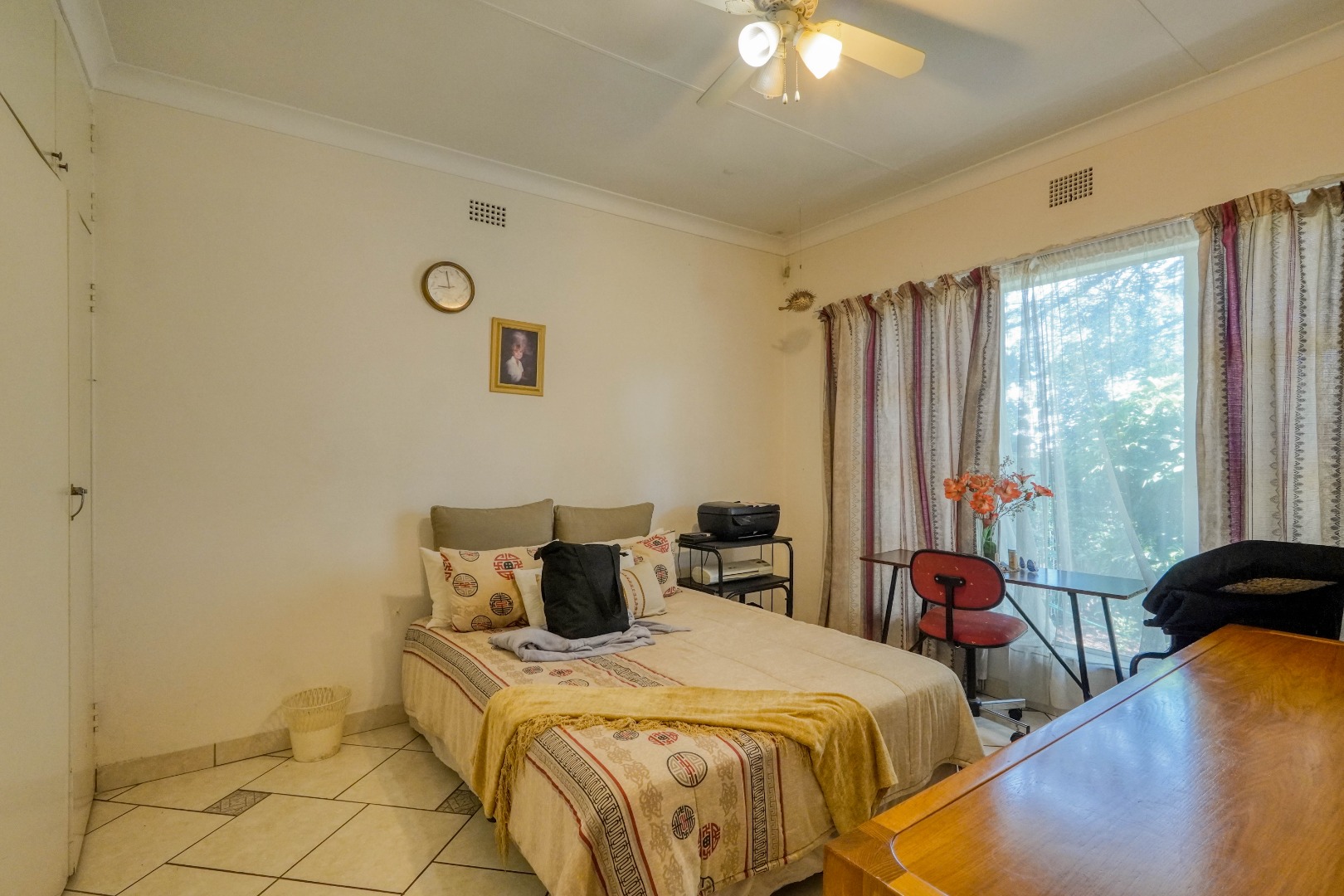 The fourth bedroom is a separate bachelor flat located behind the garage. This space offers privacy and has direct access to the courtyard with the built in braai, making it ideal for extended family, guests, or potential rental income.