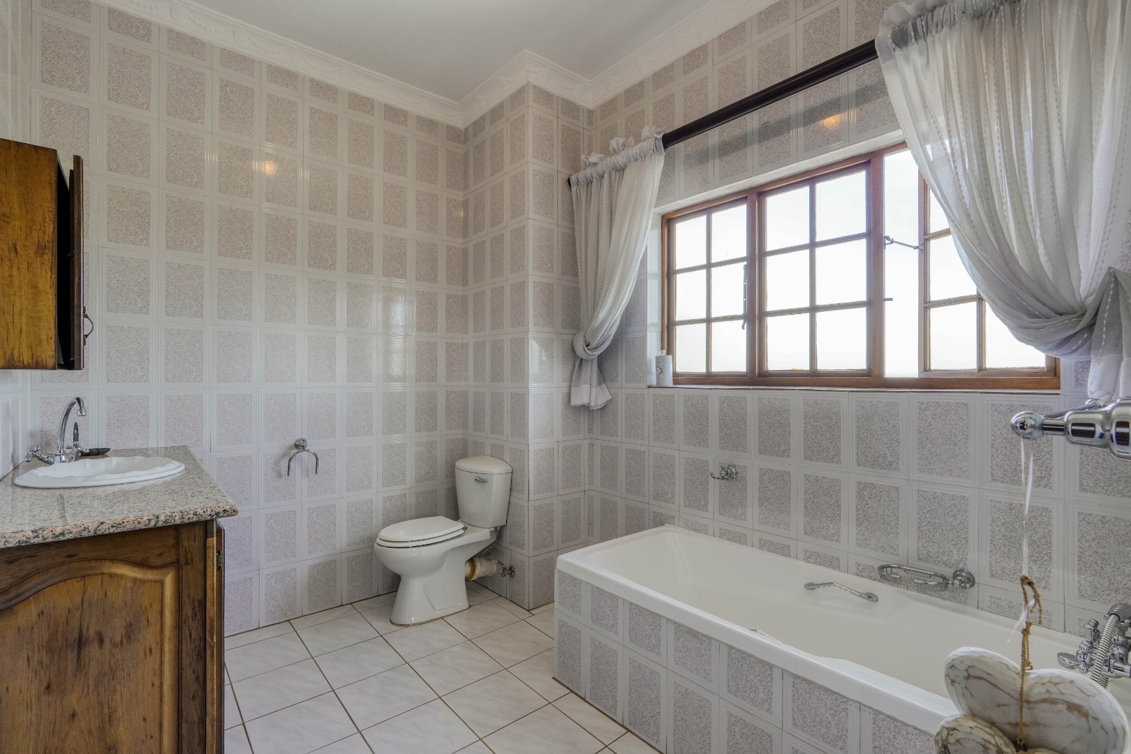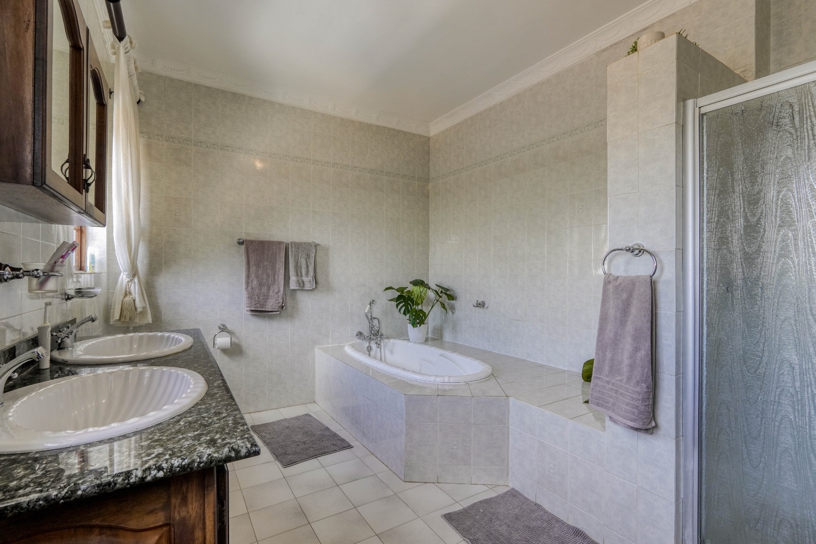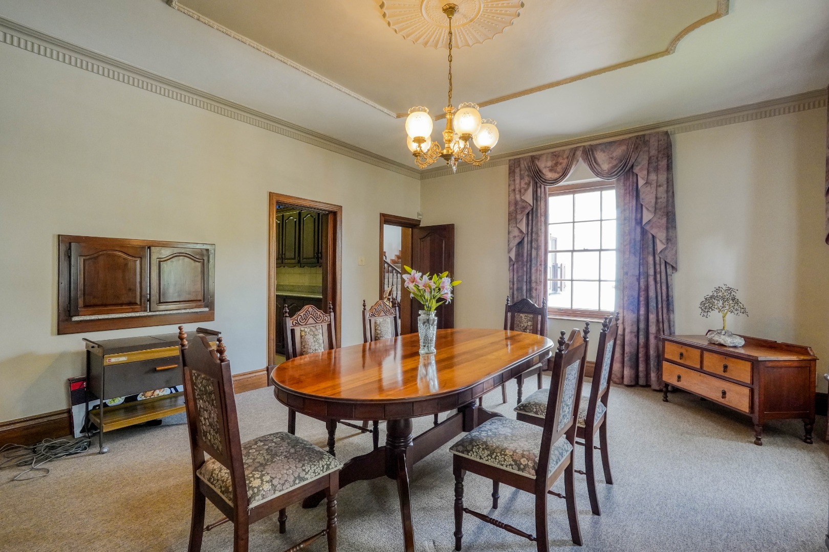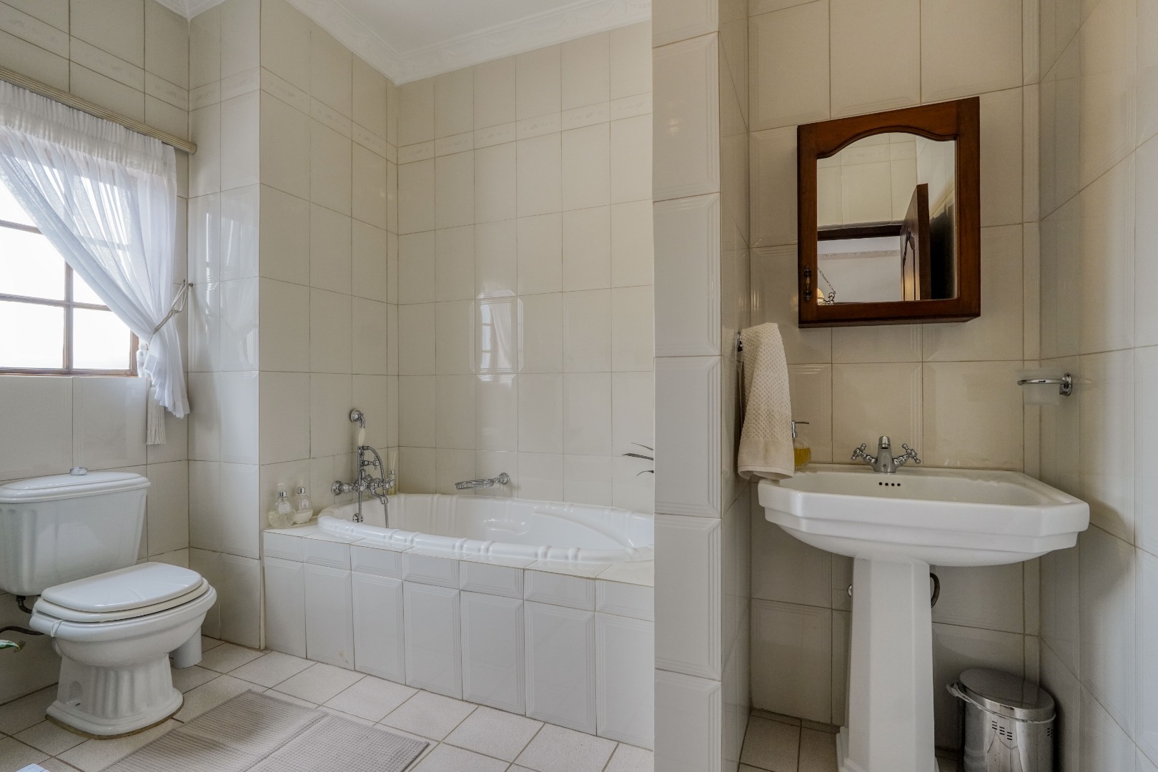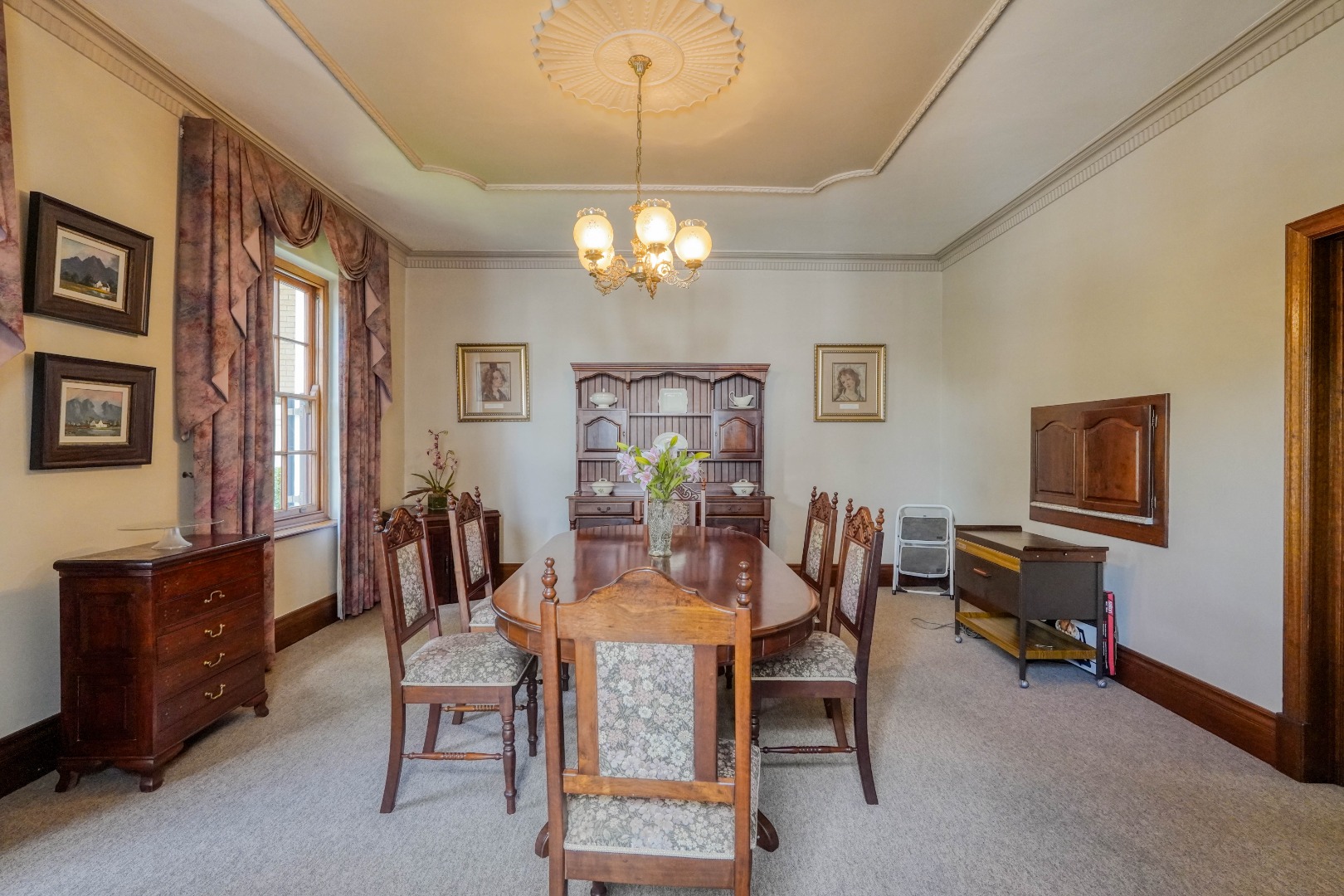 A secondary staircase near the main entrance leads downward and appears to descend into a basement, but instead guides you to the garages in the east wing, giving the home a rare three storey feel. Practical features include solar panels supported by two 5800W inverters and two geysers, ensuring efficiency to match the scale of the property.