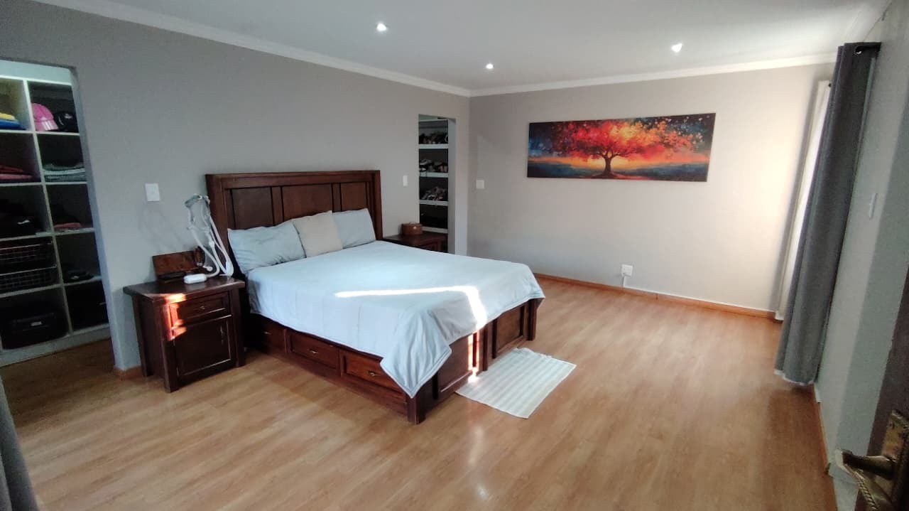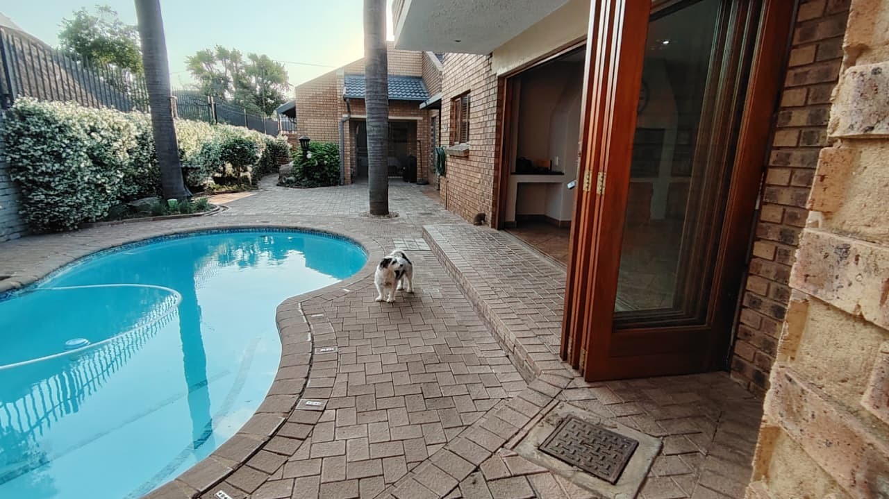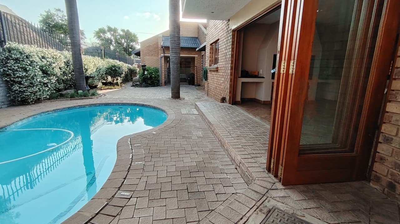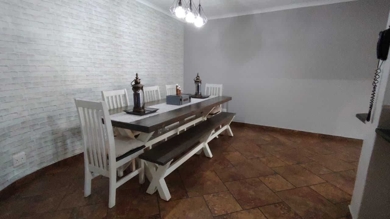 Discover this expansive family residence nestled within a secure gated community in Eldoraigne, Centurion. Boasting a generous 426 sqm under roof on a 1000 sqm erf, this property offers an exceptional lifestyle with ample space for comfortable living and entertaining. The interior features an inviting open-plan design, seamlessly connecting living areas. The main kitchen is well-appointed with dark granite countertops, a modern 5-burner gas hob, and built-in double ovens, complemented by ample wooden cabinetry and a convenient pantry. A second kitchen further enhances the home's versatility, ideal for dual living arrangements or extended family. The spacious lounge and dedicated family TV room provide multiple zones for relaxation, while the dining area, featuring a stylish brick-effect accent wall and modern chandelier, is perfect for hosting gatherings. An integrated indoor braai in one of the living spaces adds to the entertainment appeal.