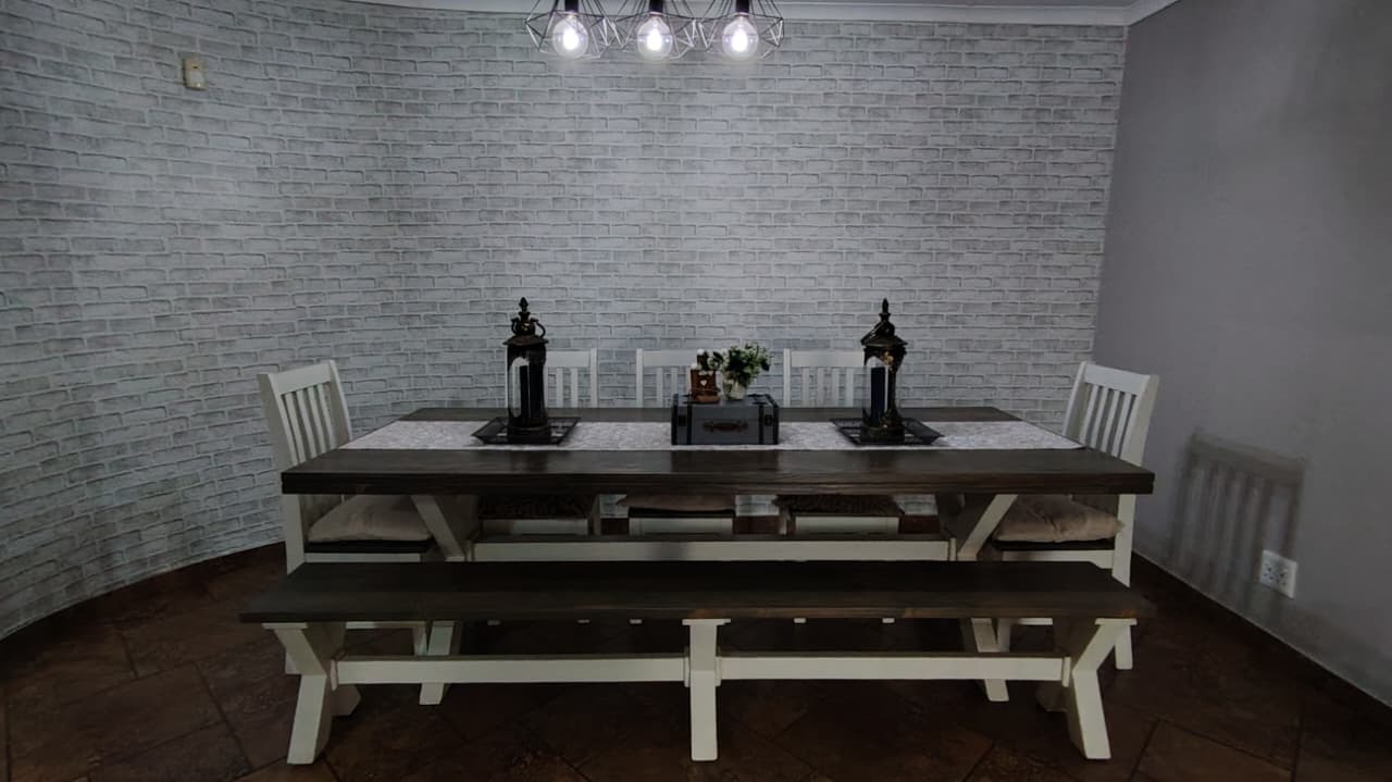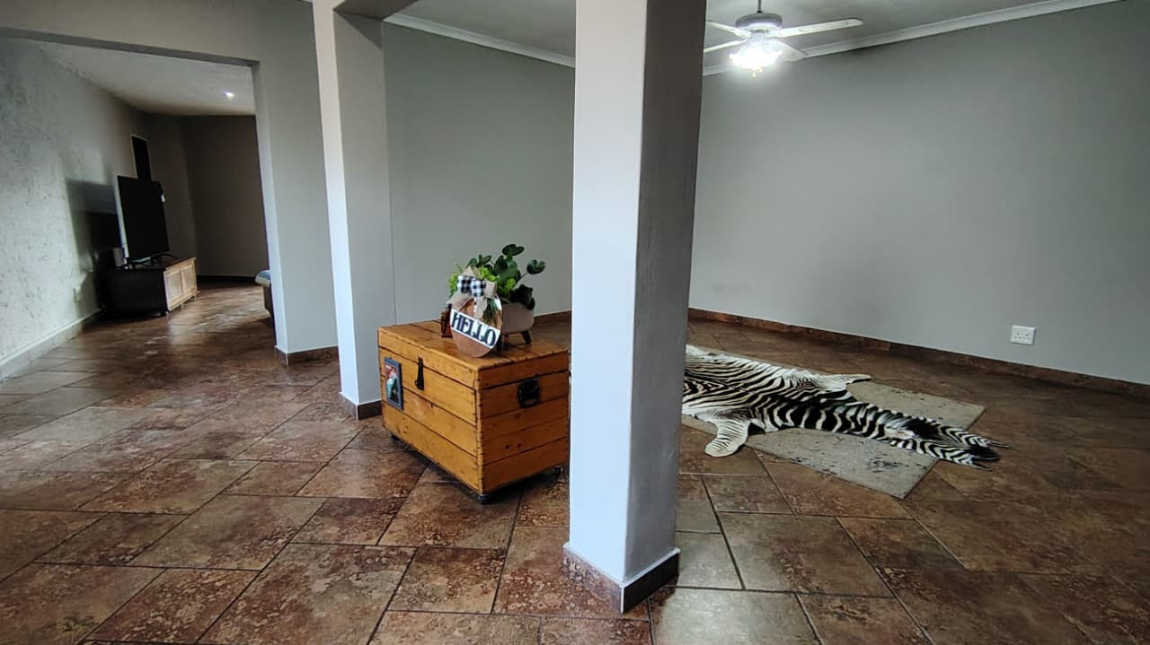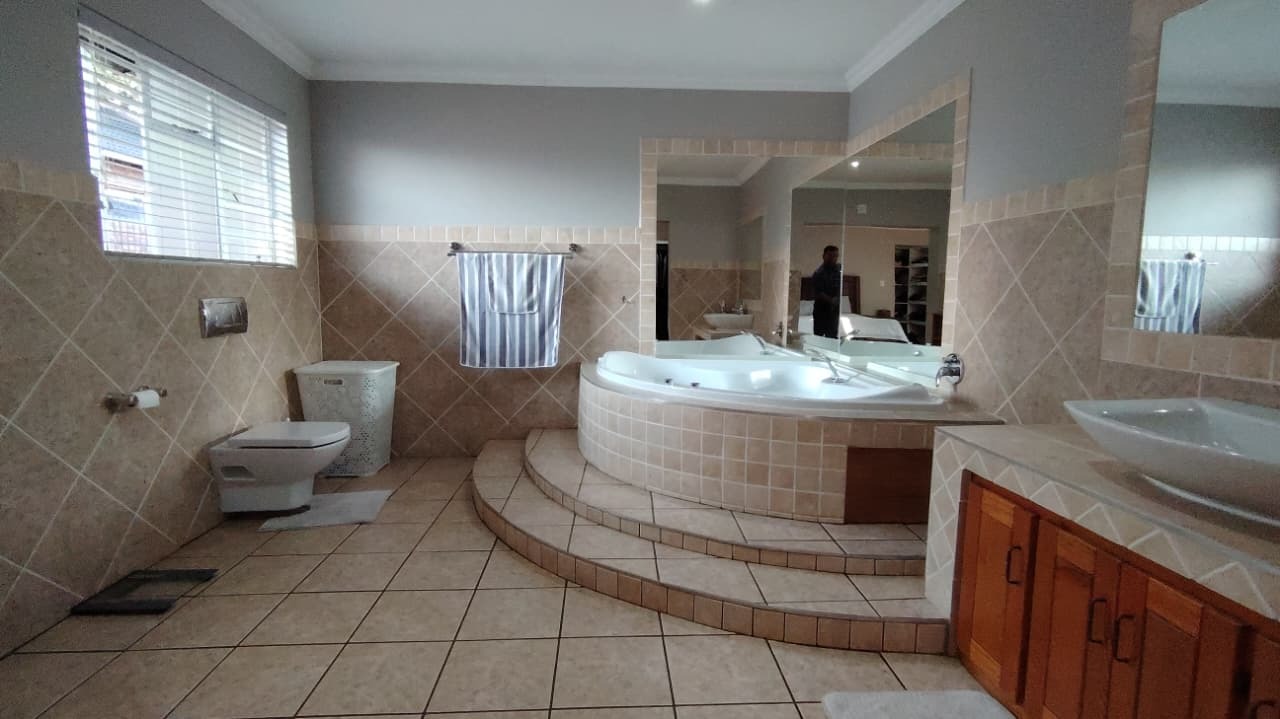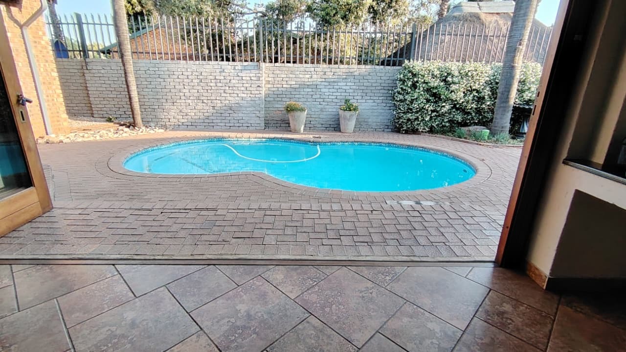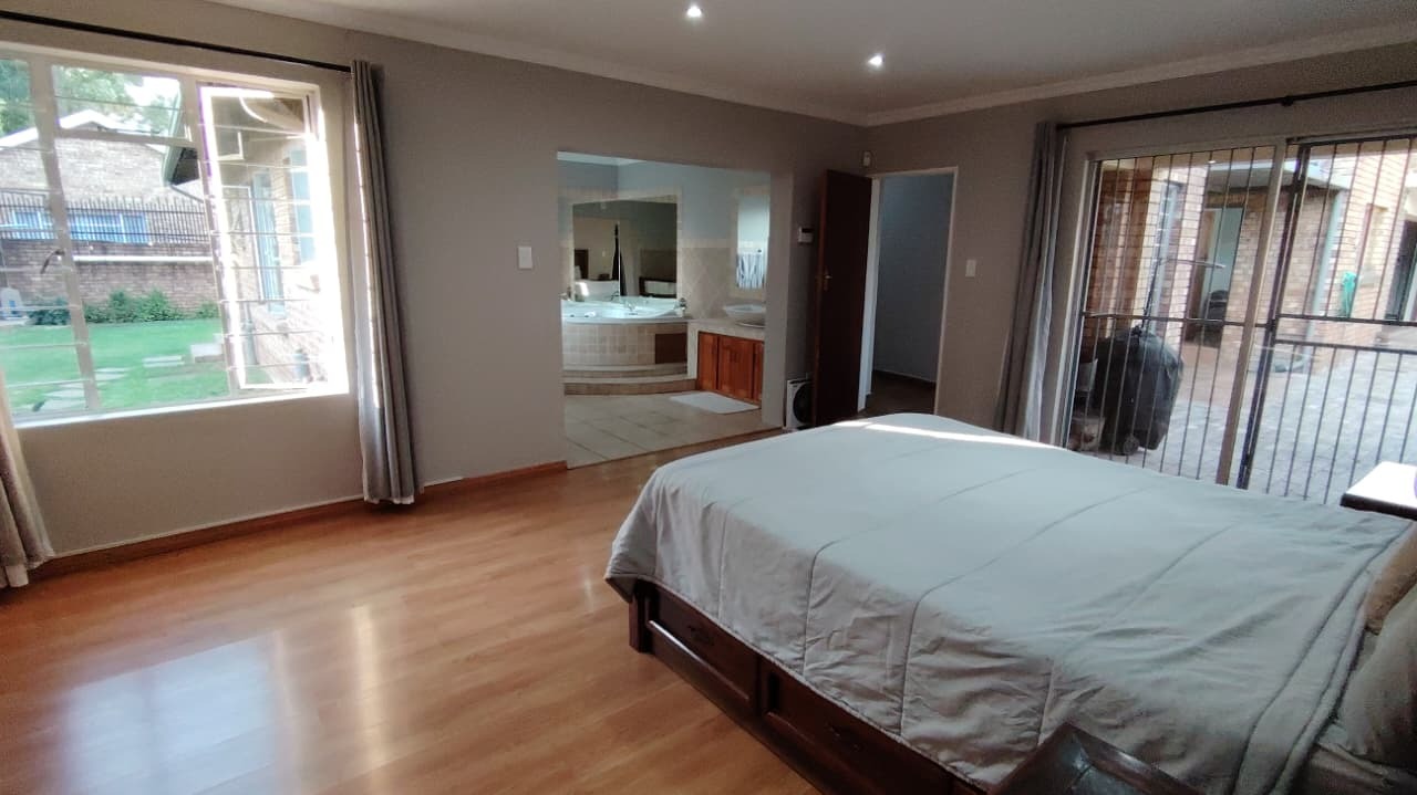 Discover this expansive family residence nestled within a secure gated community in Eldoraigne, Centurion. Boasting a generous 426 sqm under roof on a 1000 sqm erf, this property offers an exceptional lifestyle with ample space for comfortable living and entertaining. The interior features an inviting open-plan design, seamlessly connecting living areas. The main kitchen is well-appointed with dark granite countertops, a modern 5-burner gas hob, and built-in double ovens, complemented by ample wooden cabinetry and a convenient pantry. A second kitchen further enhances the home's versatility, ideal for dual living arrangements or extended family. The spacious lounge and dedicated family TV room provide multiple zones for relaxation, while the dining area, featuring a stylish brick-effect accent wall and modern chandelier, is perfect for hosting gatherings. An integrated indoor braai in one of the living spaces adds to the entertainment appeal.