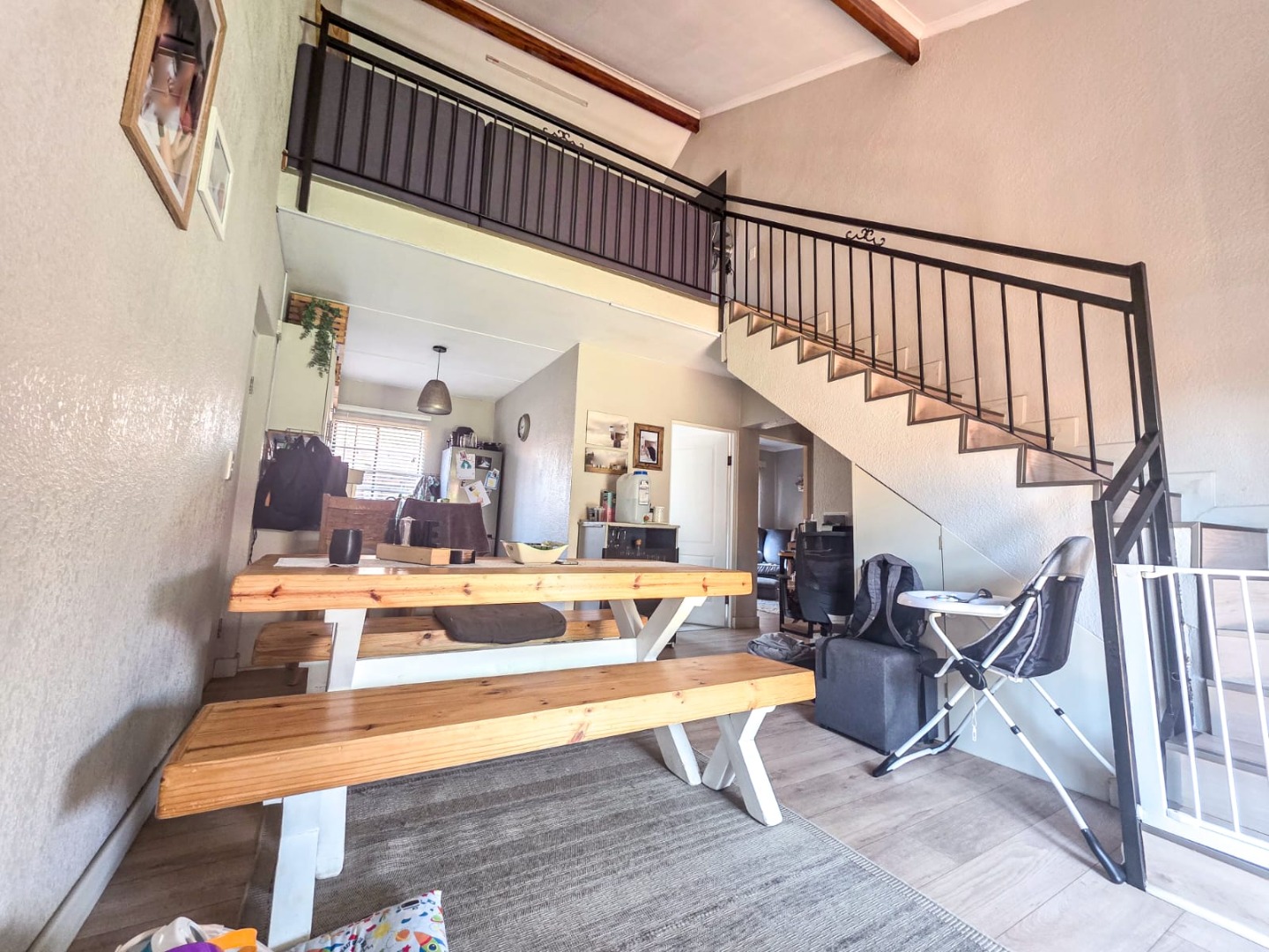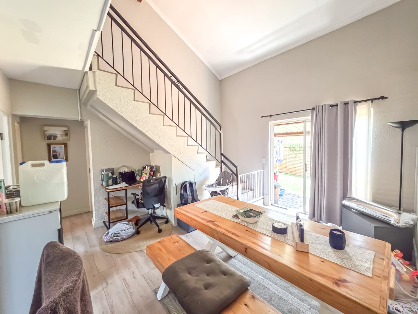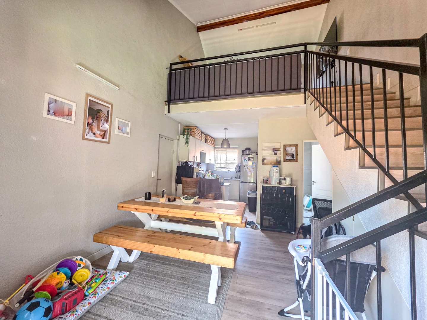 Discover this charming 90 sqm townhouse, ideally situated in a secure complex within the sought-after Hennopspark suburb of Centurion. The residence immediately impresses with its durable brick exterior and inviting ambiance. Inside, the open-plan living area features high ceilings and modern laminate flooring, creating an airy and spacious environment perfect for relaxation and entertaining. A prominent staircase leads to a versatile loft/mezzanine, offering additional functional space ideal for a home office or an extra lounge.