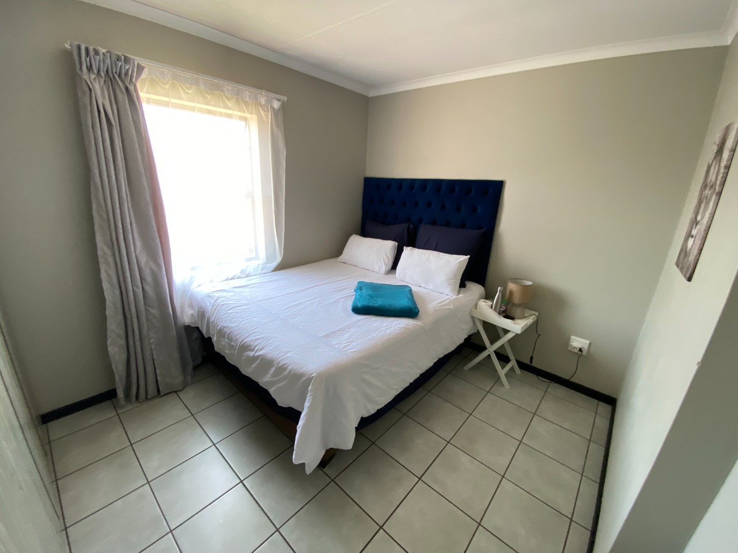 You enter the unit at the open plan kitchen which has a breakfast nook, modern cupboards with granite tops, space for a fridge, washing machine/dishwasher outlet, undercounter oven with hob, and double sink. The open plan living area walks out onto a small balcony. The 2 bedrooms have built-in cupboards and are serviced by a bathroom with bath/shower combination, toilet and basin. All floors in the apartment are tiled.