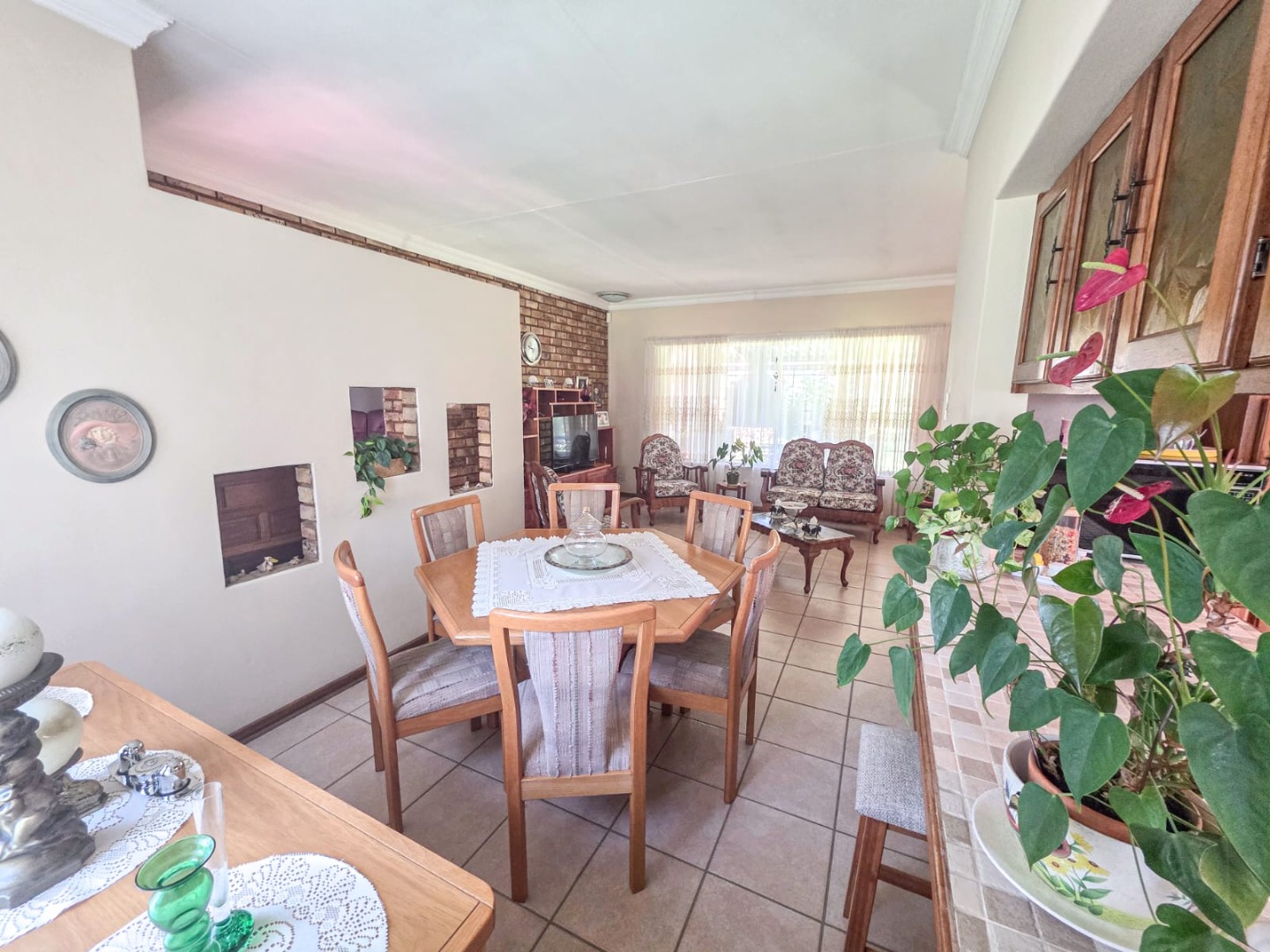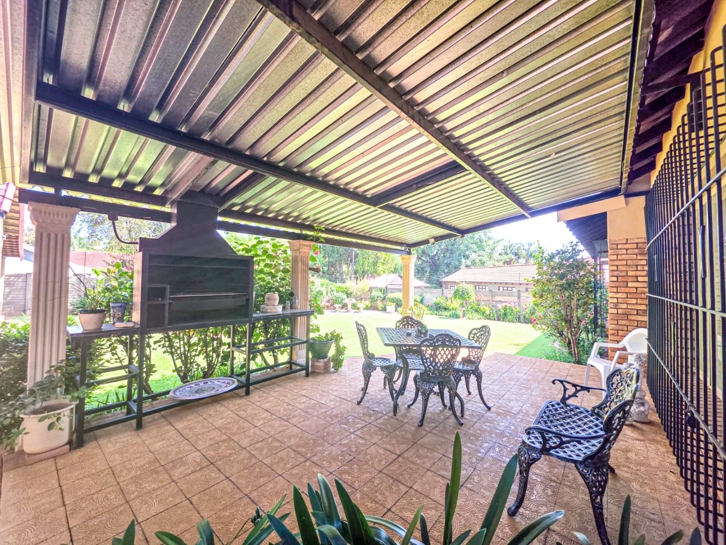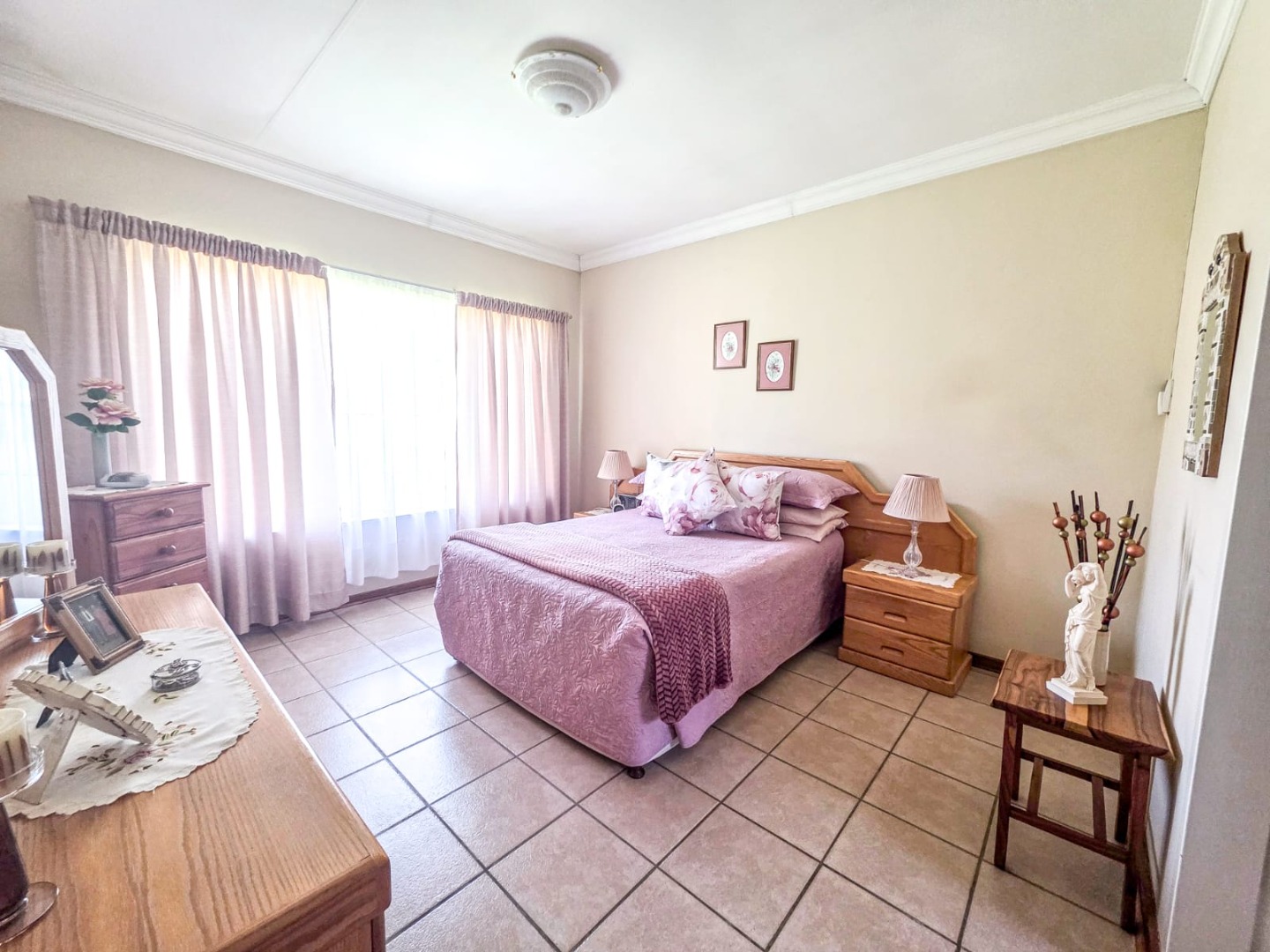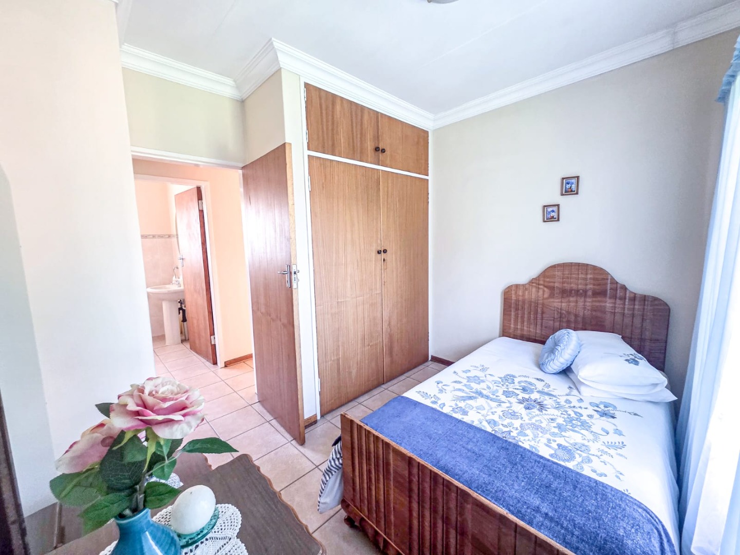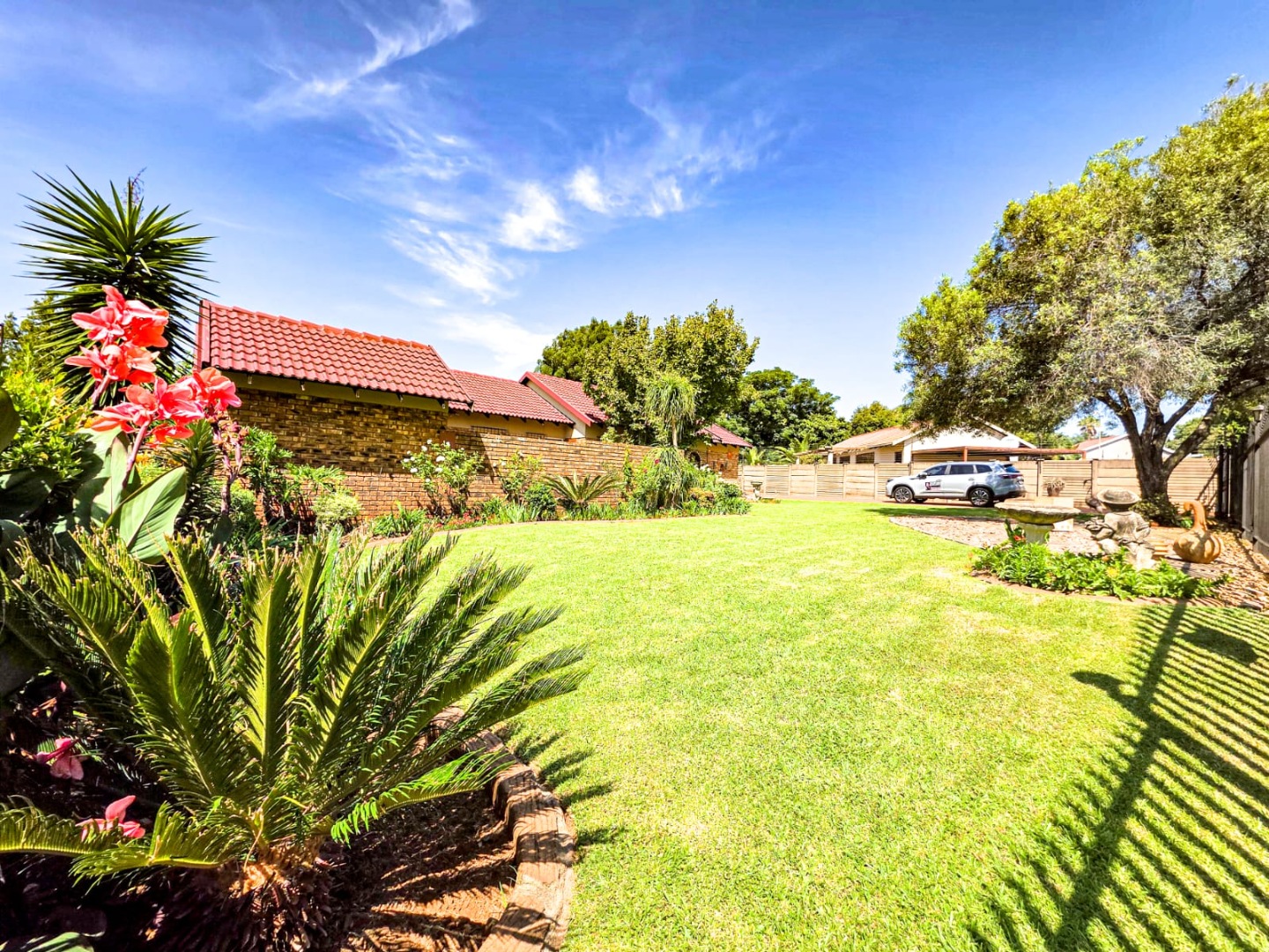 Discover this spacious 3-bedroom, 2-bathroom family home situated in the desirable Heuweloord, Centurion. The interior features an inviting open-plan living and dining area with consistent tiled flooring, benefiting from ample natural light. The kitchen boasts extensive wooden cabinetry, tiled countertops, a built-in electric hob, and a convenient pantry. Bedrooms are generously sized. Outside, enjoy a lush garden, a paved patio, and a dedicated outdoor braai area perfect for entertaining. The property includes double garages and a large covered carport, providing abundant parking. Security is enhanced with electric fencing, an alarm system, and security gates, ensuring peace of mind in this suburban South African setting.