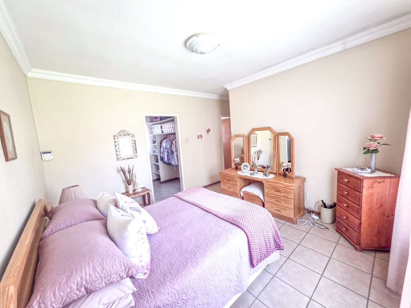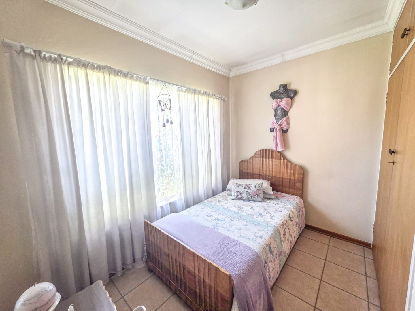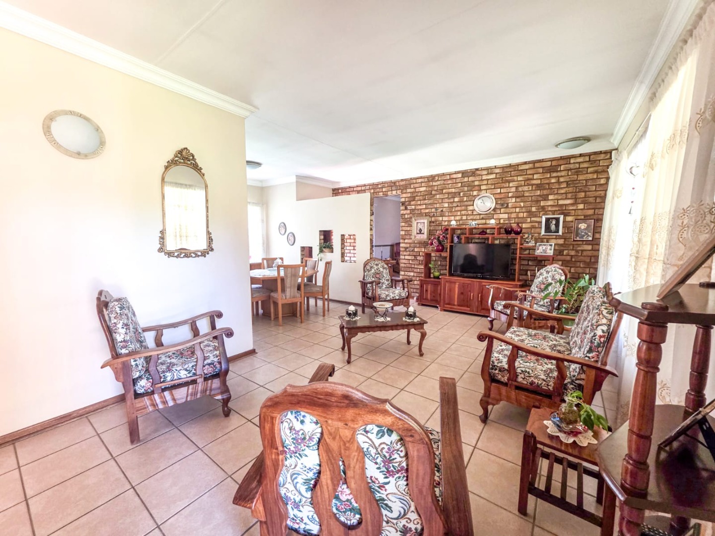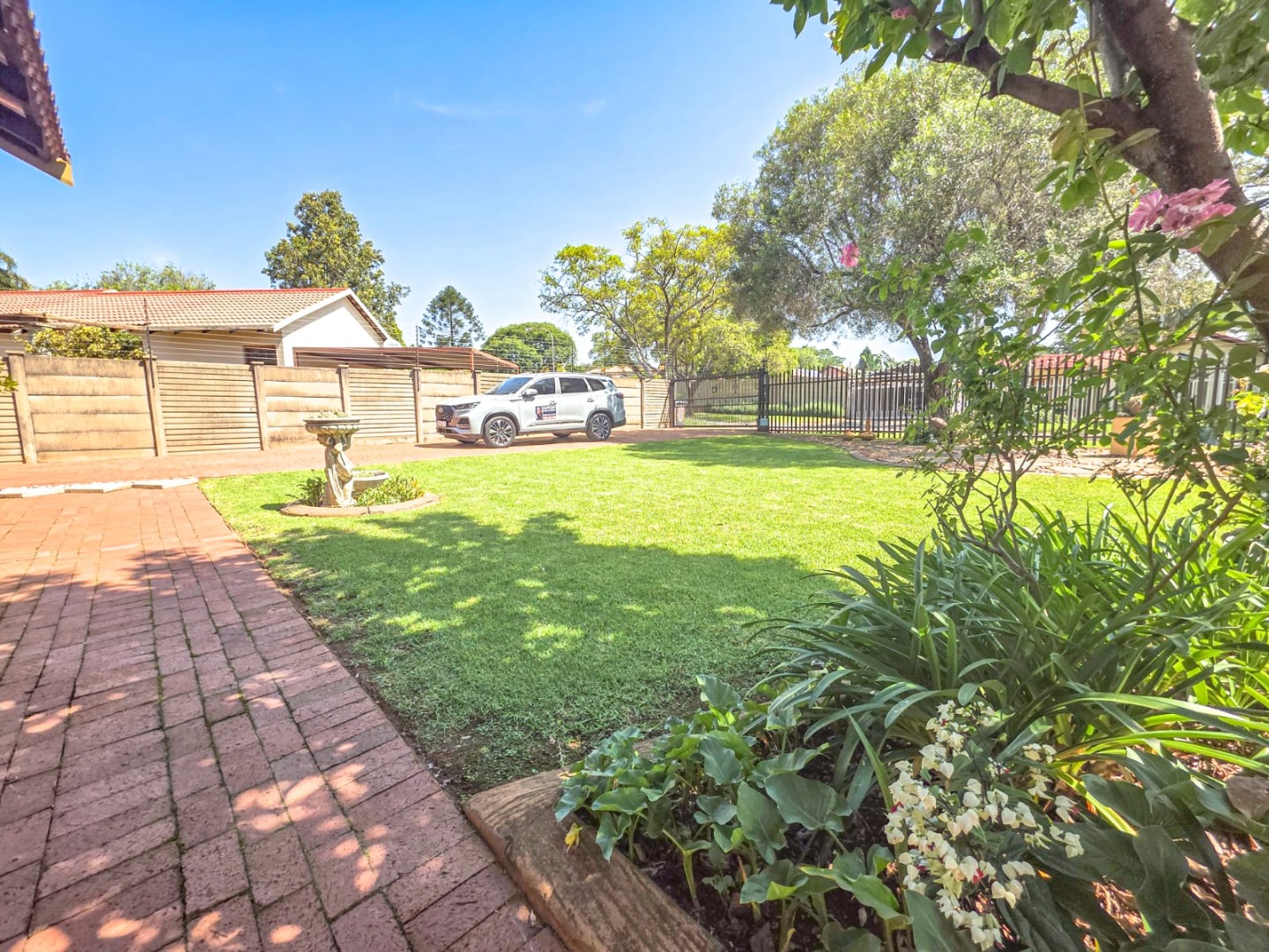 Discover this spacious 3-bedroom, 2-bathroom family home situated in the desirable Heuweloord, Centurion. The interior features an inviting open-plan living and dining area with consistent tiled flooring, benefiting from ample natural light. The kitchen boasts extensive wooden cabinetry, tiled countertops, a built-in electric hob, and a convenient pantry. Bedrooms are generously sized. Outside, enjoy a lush garden, a paved patio, and a dedicated outdoor braai area perfect for entertaining. The property includes double garages and a large covered carport, providing abundant parking. Security is enhanced with electric fencing, an alarm system, and security gates, ensuring peace of mind in this suburban South African setting.