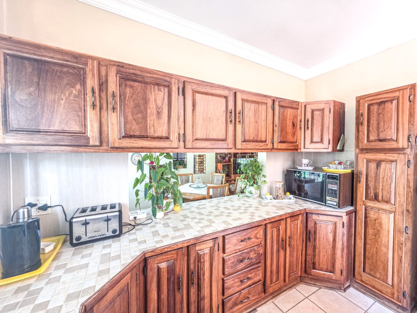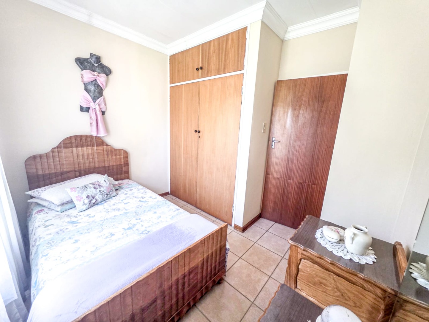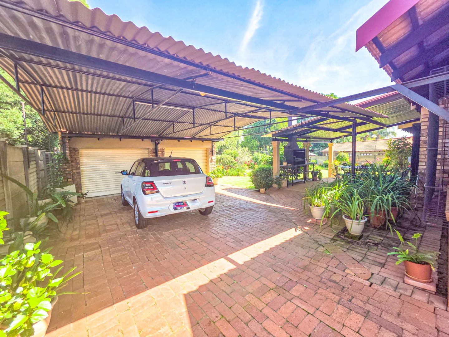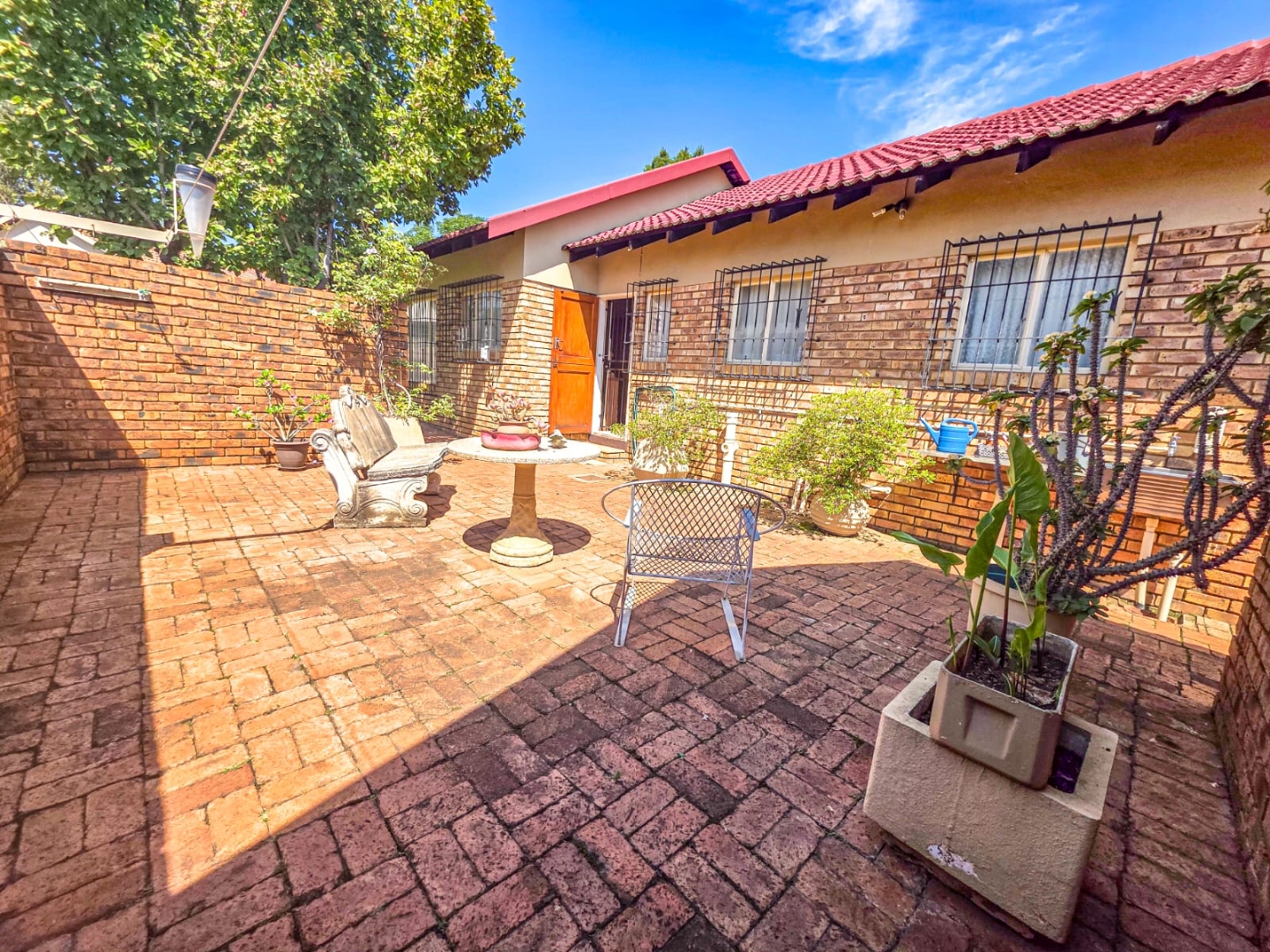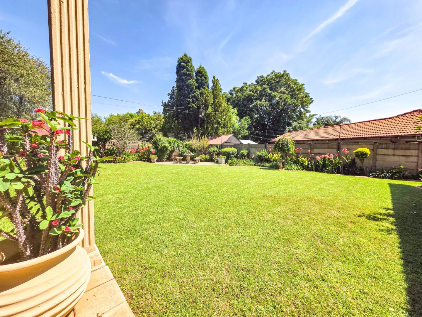 Discover this spacious 3-bedroom, 2-bathroom family home situated in the desirable Heuweloord, Centurion. The interior features an inviting open-plan living and dining area with consistent tiled flooring, benefiting from ample natural light. The kitchen boasts extensive wooden cabinetry, tiled countertops, a built-in electric hob, and a convenient pantry. Bedrooms are generously sized. Outside, enjoy a lush garden, a paved patio, and a dedicated outdoor braai area perfect for entertaining. The property includes double garages and a large covered carport, providing abundant parking. Security is enhanced with electric fencing, an alarm system, and security gates, ensuring peace of mind in this suburban South African setting.