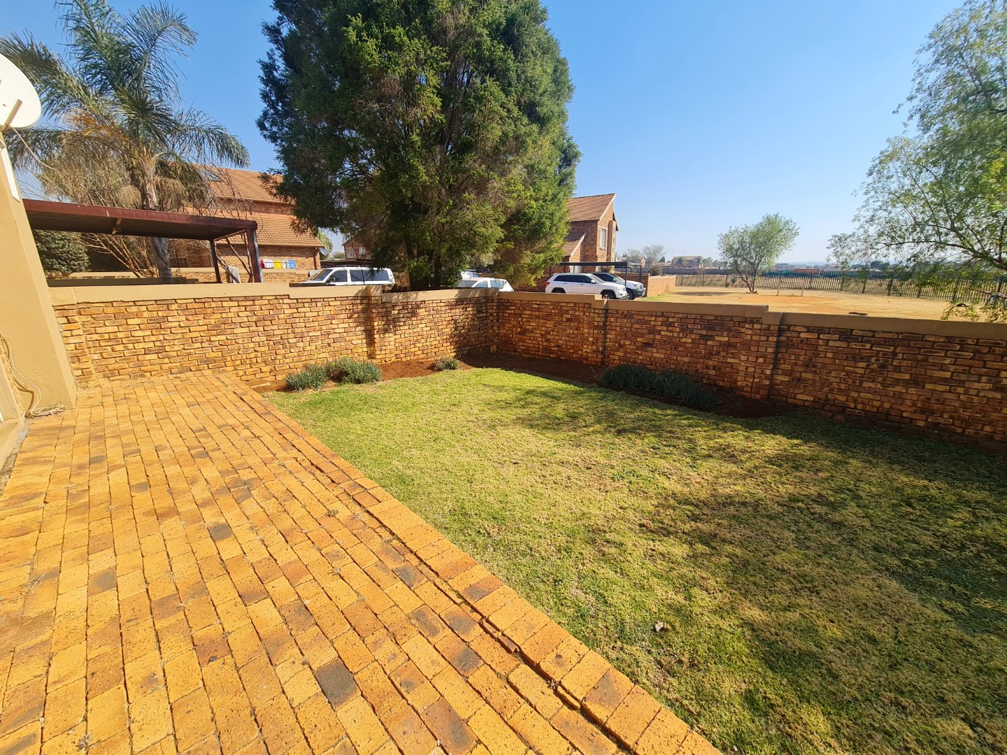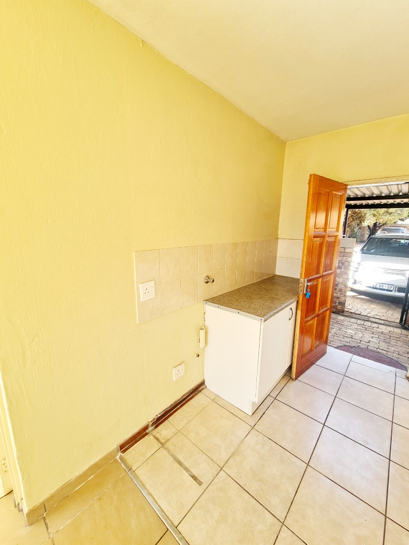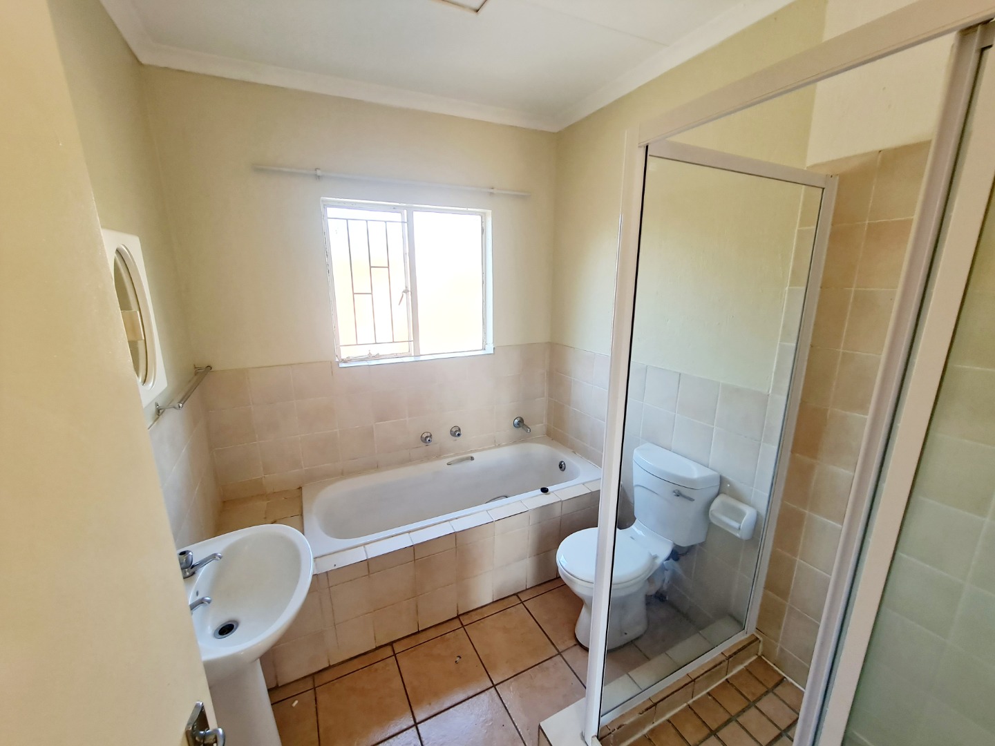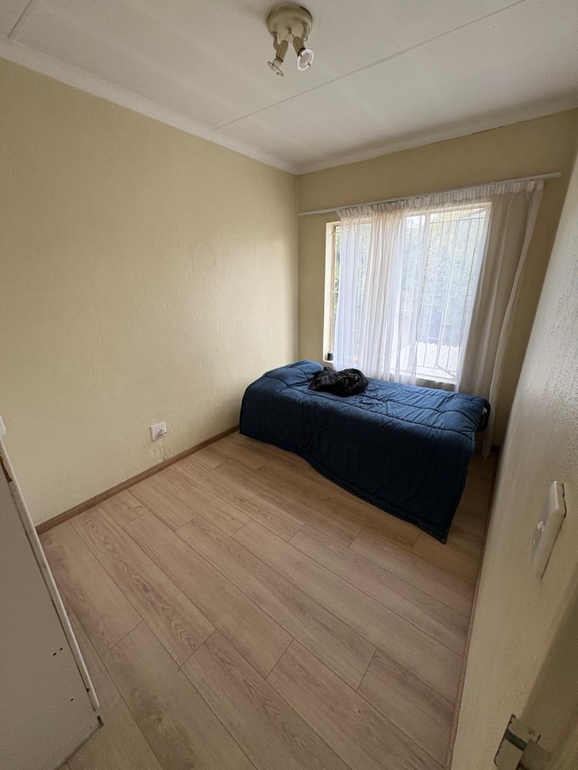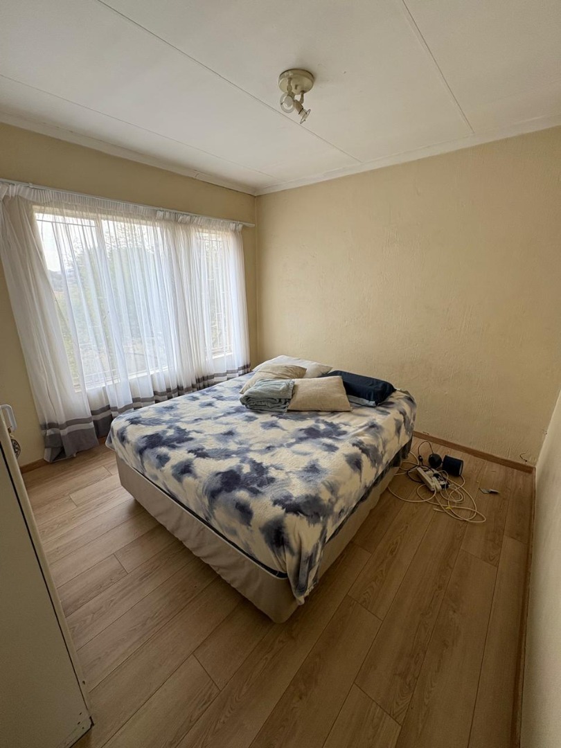 There is a linen cupboard down stairs too. Upstairs you have the other 2 spacious bedrooms and full bathroom. Both bedrooms have new wooden flooring installed. Outside you really have a big area to make your outside braai area with big yard. It is right next to the complex park as well. So you really have a bit of privacy.