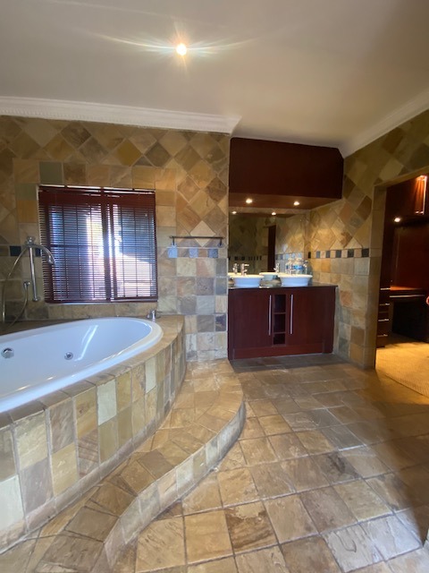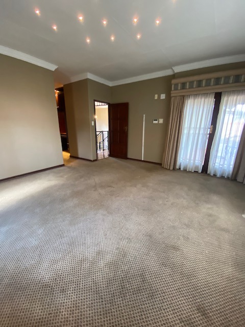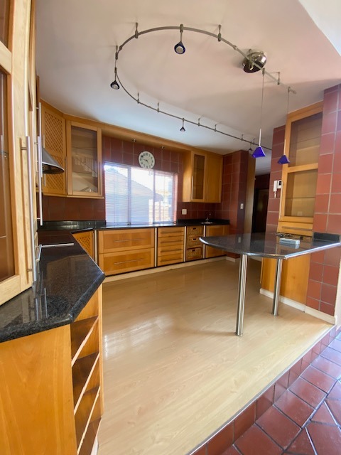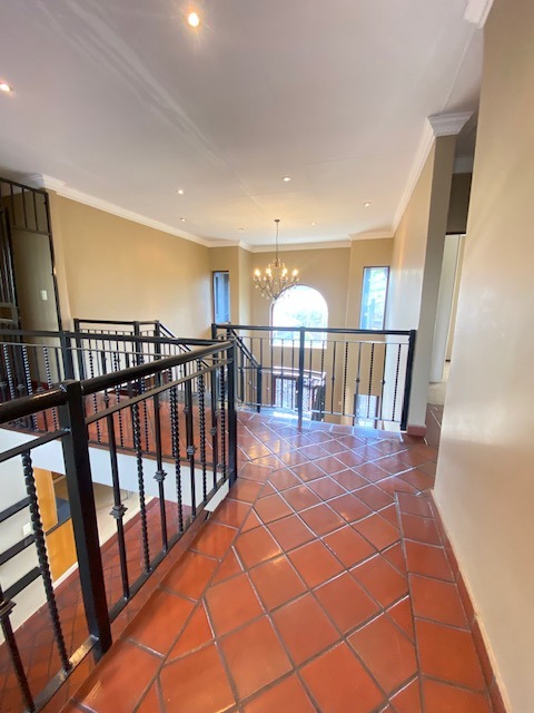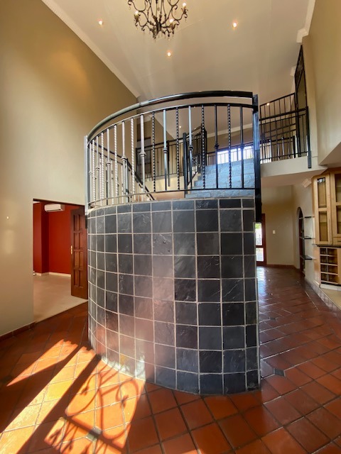 This distinguished Highveld residence presents an imposing modern facade with prominent architectural columns and a terracotta tiled roof. A substantial paved driveway leads to a triple garage, offering extensive off-street parking. A grand double-volume entrance hall, featuring high ceilings and an ornate curved staircase with wrought iron railings, sets a sophisticated tone upon entry. The interior layout includes two lounges and a dedicated dining room, providing versatile living spaces. The well-appointed kitchen boasts ample wooden cabinetry, dark granite countertops, and an integrated breakfast bar. Comfort is assured with air conditioning and a fireplace for cooler evenings. The private quarters comprise three bedrooms and two bathrooms, including a luxurious en-suite. Outdoors, the property features a swimming pool, a patio, and a meticulously maintained garden on its 820 sqm erf, ideal for relaxation. Security is paramount, with an alarm system, CCTV, and an access gate providing peace of mind. This home in Centurion offers a desirable lifestyle. Key Features: * 3 Bedrooms, 2 Bathrooms (1 En-suite) * Triple Garage * 2 Lounges, 1 Dining Room * Swimming Pool, Patio, Garden * Air Conditioning, Fireplace * Alarm System, CCTV, Access Gate * Grand Entrance Hall * Erf Size: 820 sqm, Floor Size: 320 sqm