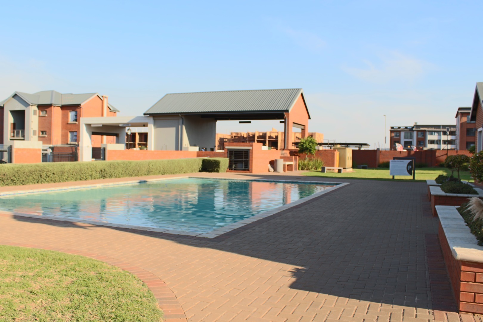 Nestled in the desirable Irene suburb of Centurion, this modern apartment offers a prime location within a well-regarded estate in South Africa. This contemporary residential complex presents a welcoming facade with its modern architectural design and meticulously maintained grounds. Residents benefit from a host of on-site amenities, including a sparkling communal swimming pool, a well-equipped gym, and a clubhouse, fostering a vibrant community lifestyle. The estate ensures peace of mind with 24-hour security, access gates, and a security post, providing a secure living environment.